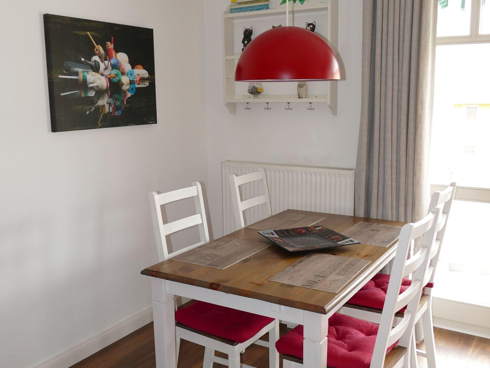 Die Wohnung liegt im 1. OG des Hauses Am Steinberg 12 und ist für max. 4 Personen geeignet. Die Wohnung besteht aus 2 abgeschlossenen Schlafräumen mit Doppelbetten und je einem großen Kleiderschrank. Der Wohnraum hat eine gemütlicher Sofaecke, einen Essbereich und ist mit TV, Soundbar und BluRay-Player ausgestattet. Es steht für Sie ein kostenfreies WLAN zur Verfügung.