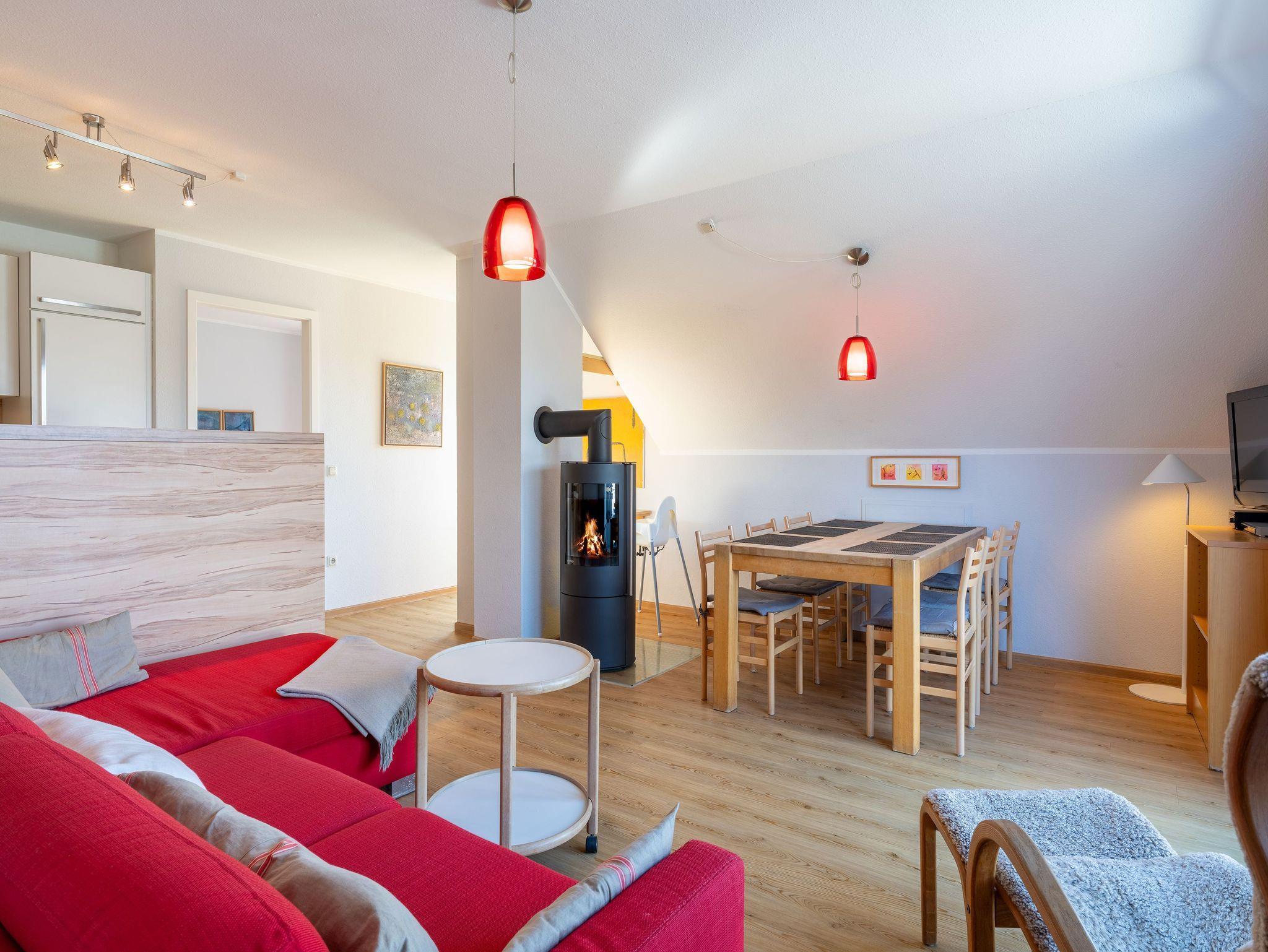 Die Ferienwohnung Storchennest bietet Ihnen die Freiheit alle mitzunehmen. Auf 100 Quadratmetern lebt es sich selbst mit 8 Personen in 3 Schlafzimmern sowie dem großzügigem Wohn- und Essbereich völlig entspannt. Und nach einem erlebnisreichen Tag trifft sich die Familie abends am Kamin zu Spielen oder erzählt Ihre mitreißenden Erlebnisse.