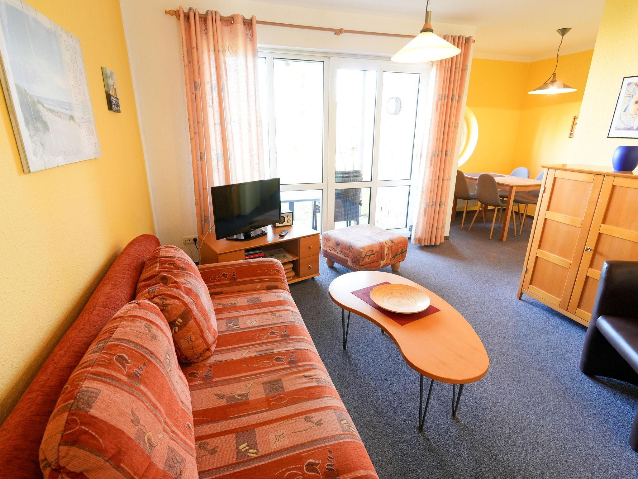 Dieses Nichtraucherappartement mit Ostseeblick. innerhalb der gleichnamigen Ferienanlage 'Seeblick', befindet sich im Erdgeschoss eines Gästehauses und verfügt über Dusche/WC, Wohnraum mit TV, Radio, offener Küche (Toaster, Wasserkocher, Kaffeemaschine, Kühlschrank, usw.) und Zugang zur möbelierten Terrasse mit Blick auf den Sebbrückenvorplatz und die Seebrücke, sowie über ein Schlafzimmer mit Doppelbett. Sie ist zentralbeheizt und für 2-3 Personen geeignet (Doppelbett im Schlaf- und Schlafcouch im Wohnraum). Bettwäsche/Handtücher im Set und die Endreinigung sind Bestandteil der Buchung.