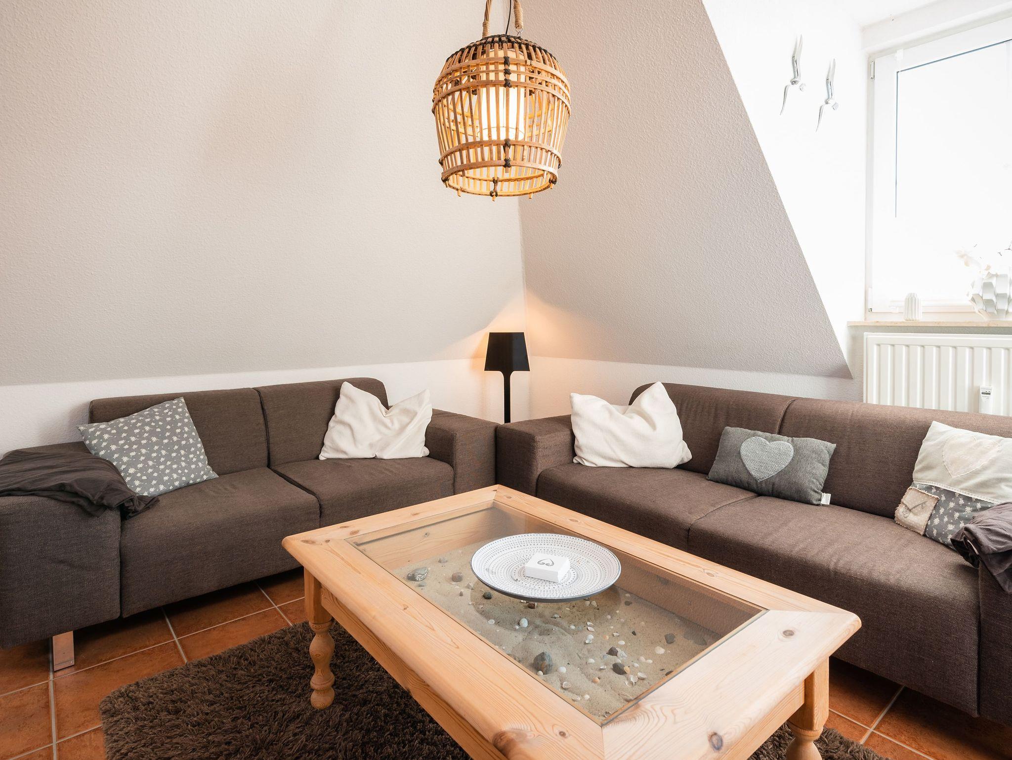 Die Ferienwohnung „Sonnendeck“ im südlichen Bereich des Seebades Koserow bietet auf 84 m² einen idealen Rückzugsort für bis zu vier Personen. Nur 10 Gehminuten trennen die Gäste vom feinsandigen Strand, während das lebendige Zentrum mit Gastronomie und Shoppingmöglichkeiten in etwa 7 Gehminuten erreichbar ist. Die Wohnung verteilt sich über zwei Ebenen im 1. Obergeschoss und punktet mit zwei einladenden Schlafzimmern ? eines mit Doppelbett und eines mit zwei Einzelbetten unter dem Dach.