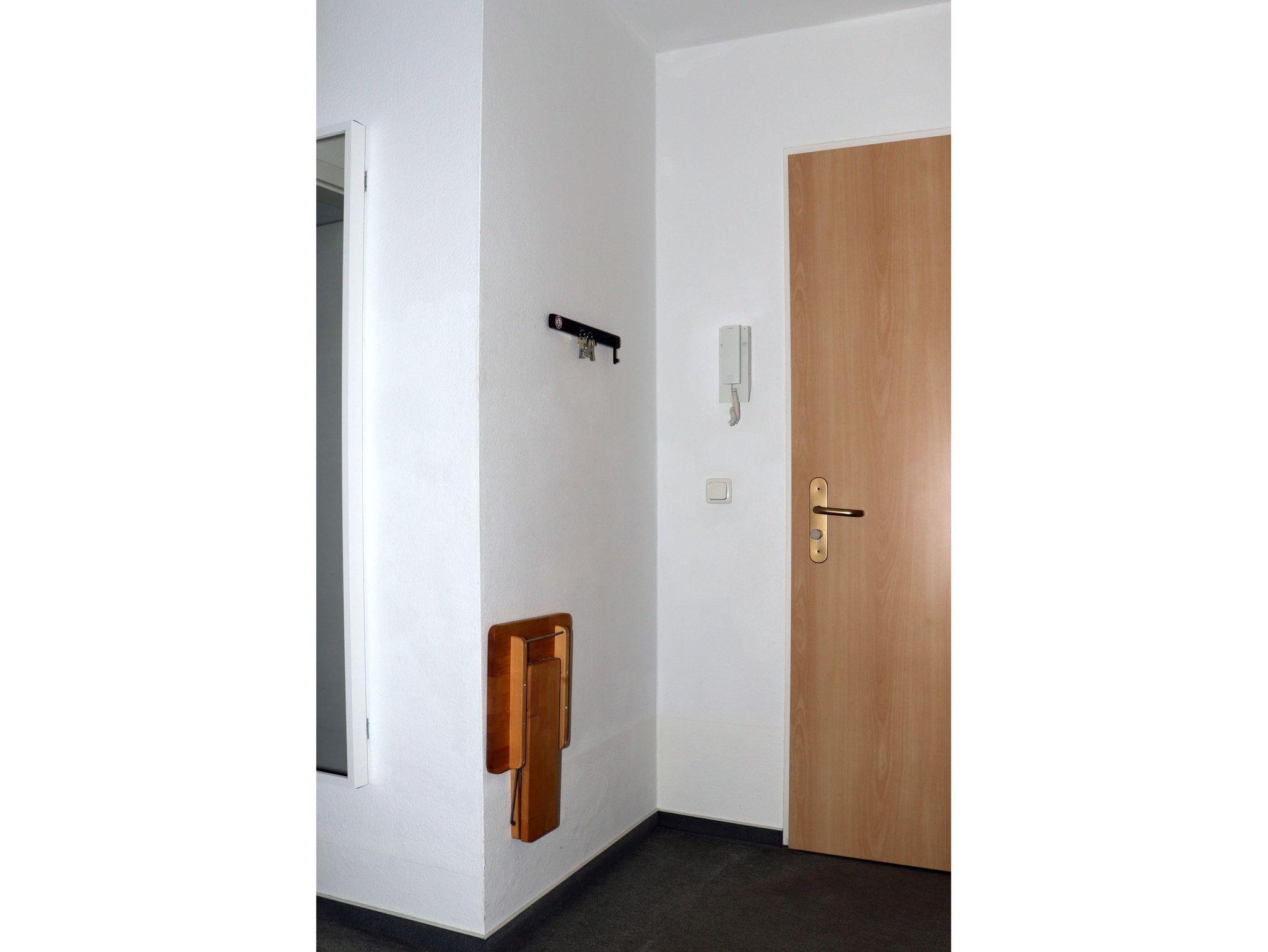 Vom Flur, der mit einer Garderobe ausgestattet ist, haben Sie Zugang zum Wohnzimmer, Schlafzimmer und Badezimmer.