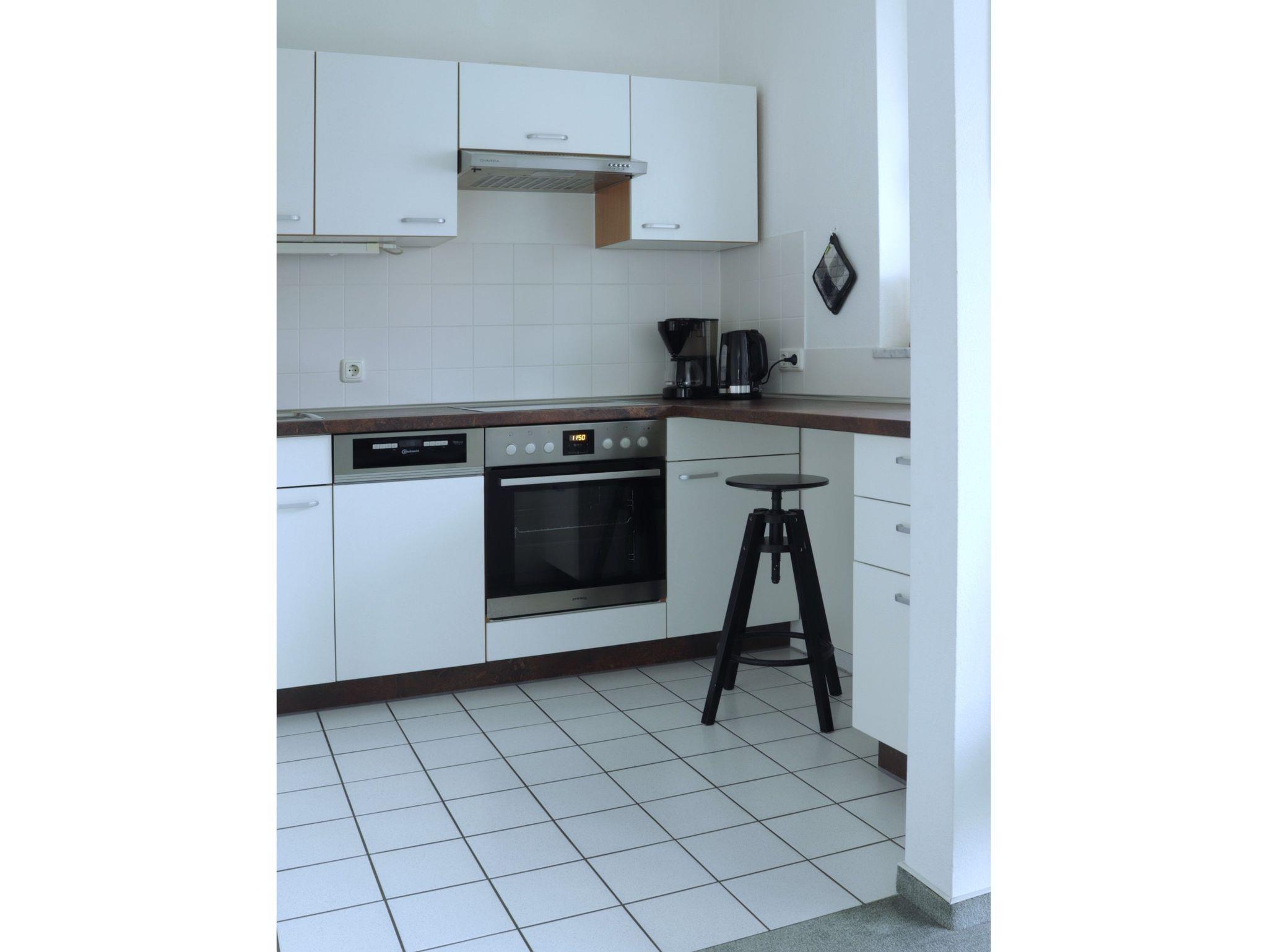 Die offene Einbauküche verfügt über ein 4-Platten-Cerankochfeld mit Backofen, Kühlschrank mit Gefriermöglichkeit, Spülmaschine, Mikrowelle, Wasserkocher, Toaster und Kaffeemaschine. Geschirrspülmittel und Spülmaschinentabs werden Ihnen bereitgestellt.