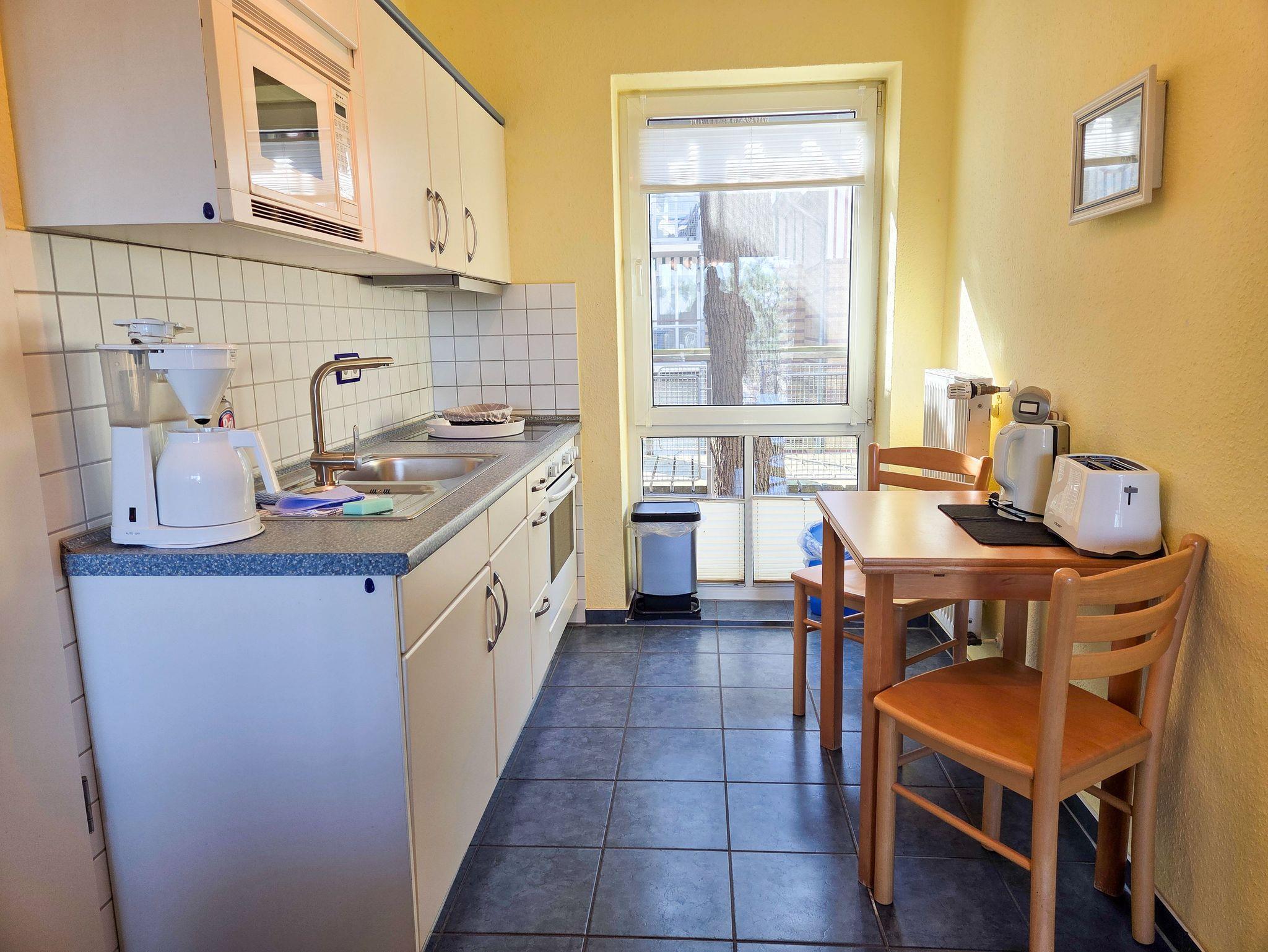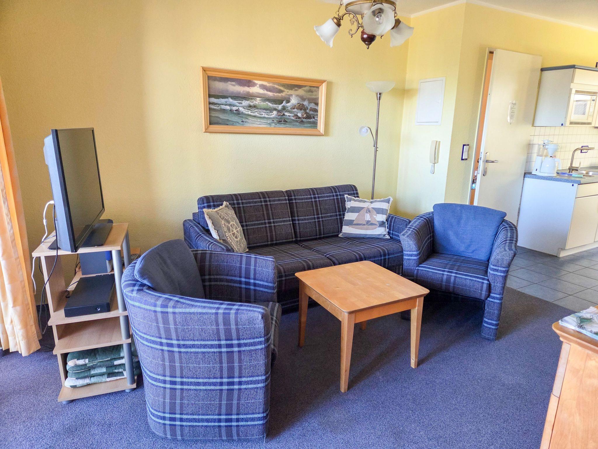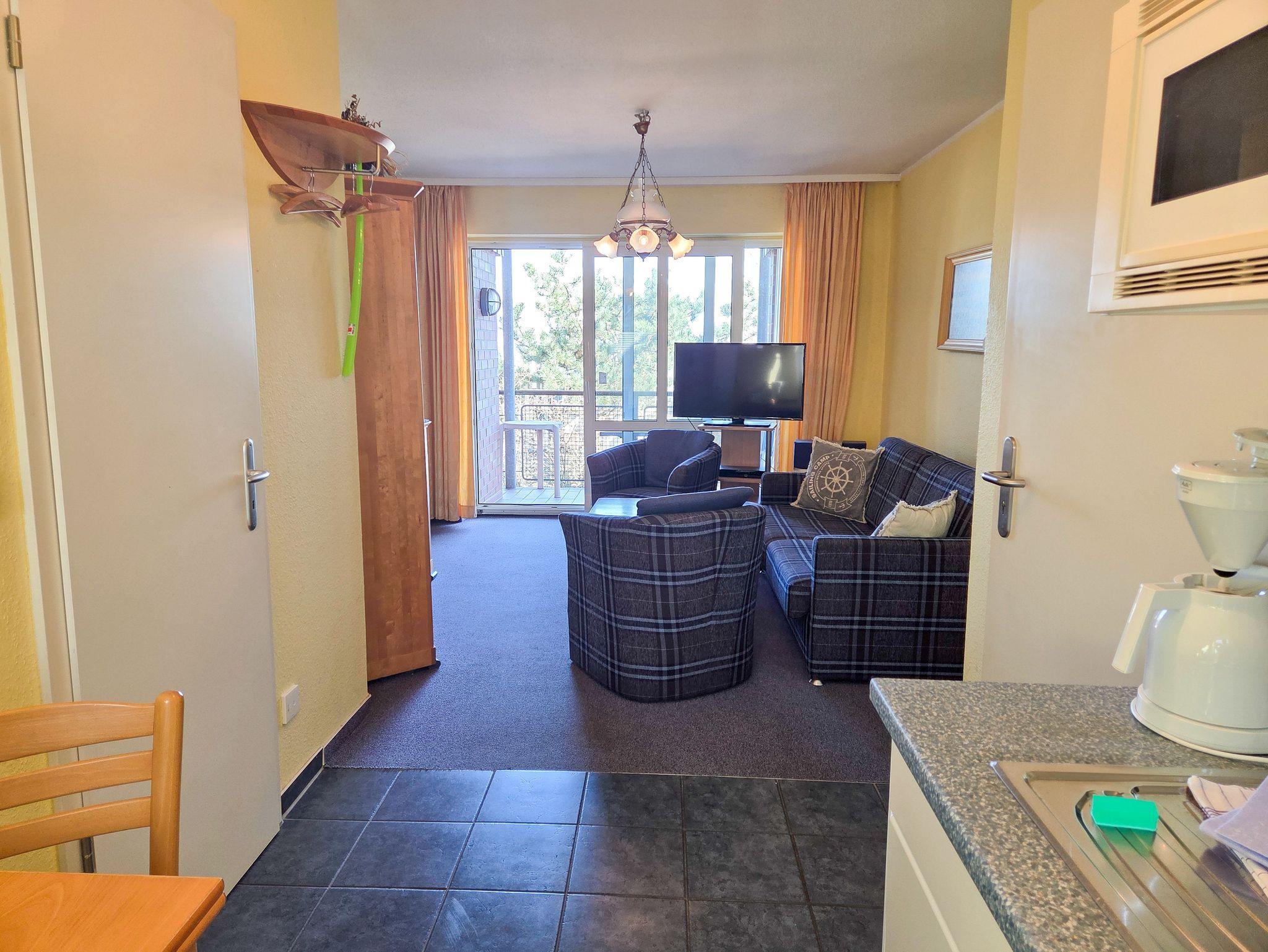 Dieses Appartement bietet einen Balkon mit Bestuhlung , 1 Schlafzimmer mit Doppelbett, ein Wohnzimmer mit Essecke und eine gut ausgestattete Küche mit einem Kühlschrank, Toaster, usw. Auf der gemütlichen Couch mit Flachbild-TV lässt sich dann der ereignisreiche Tag ausklingen.