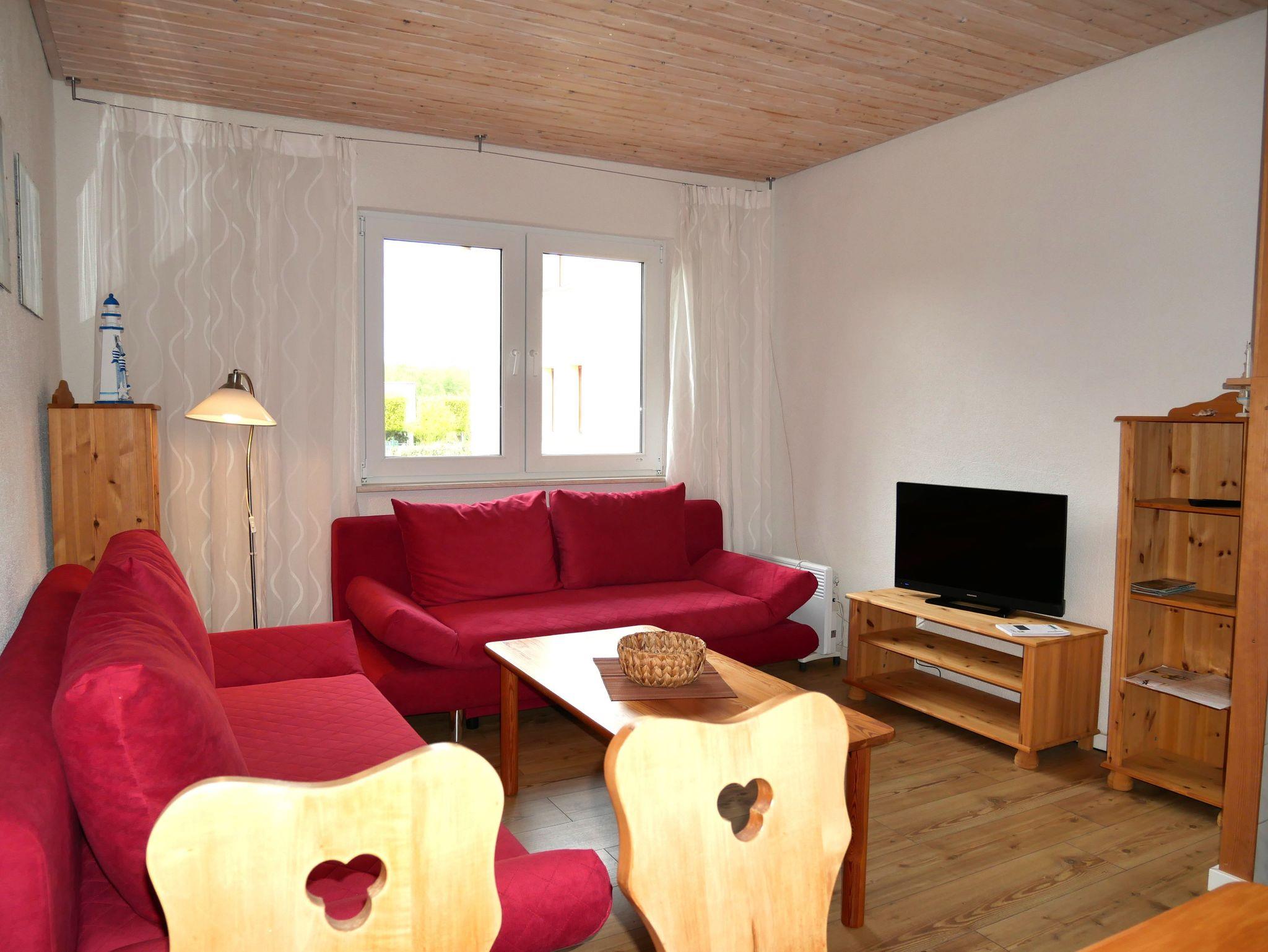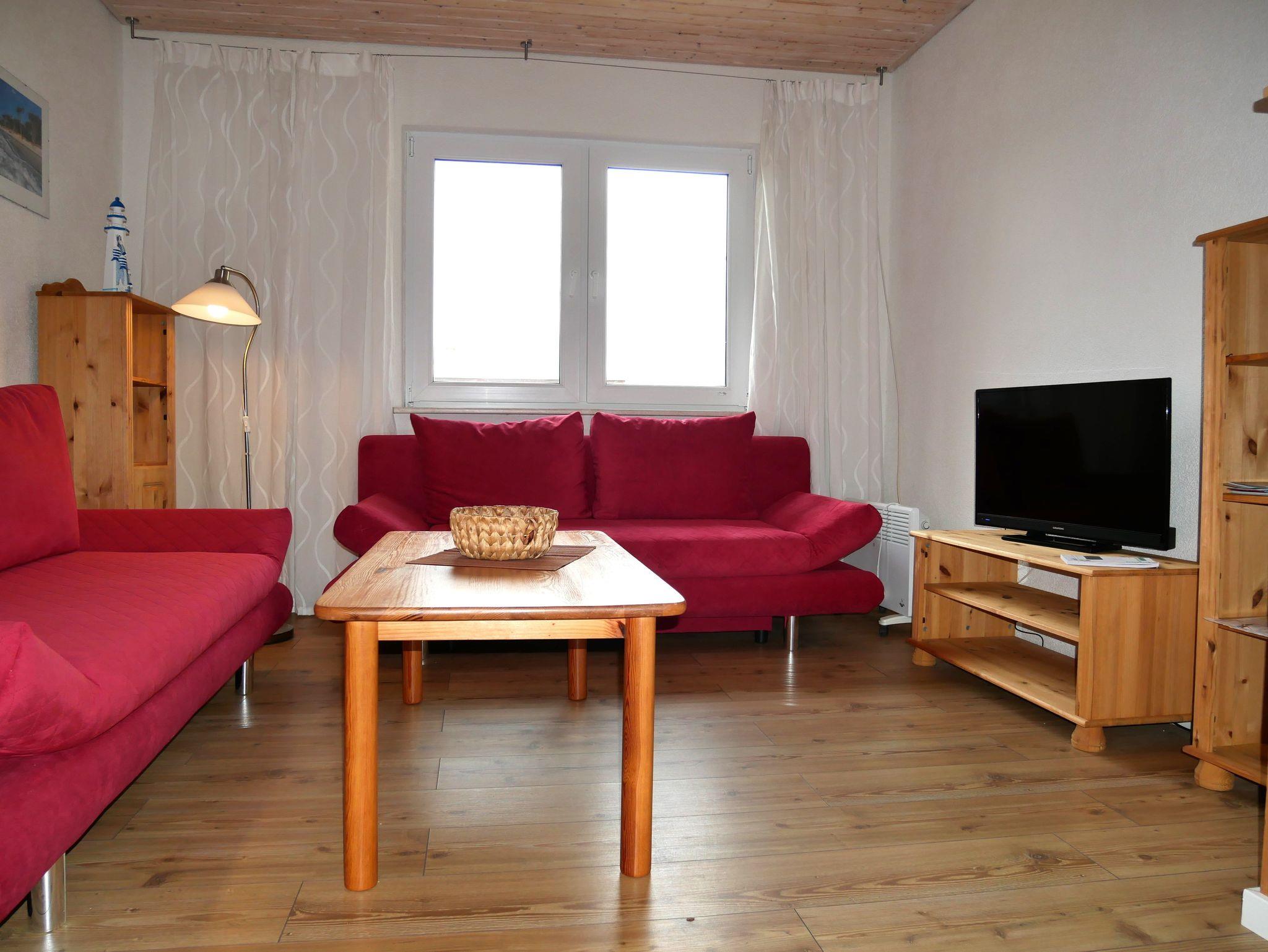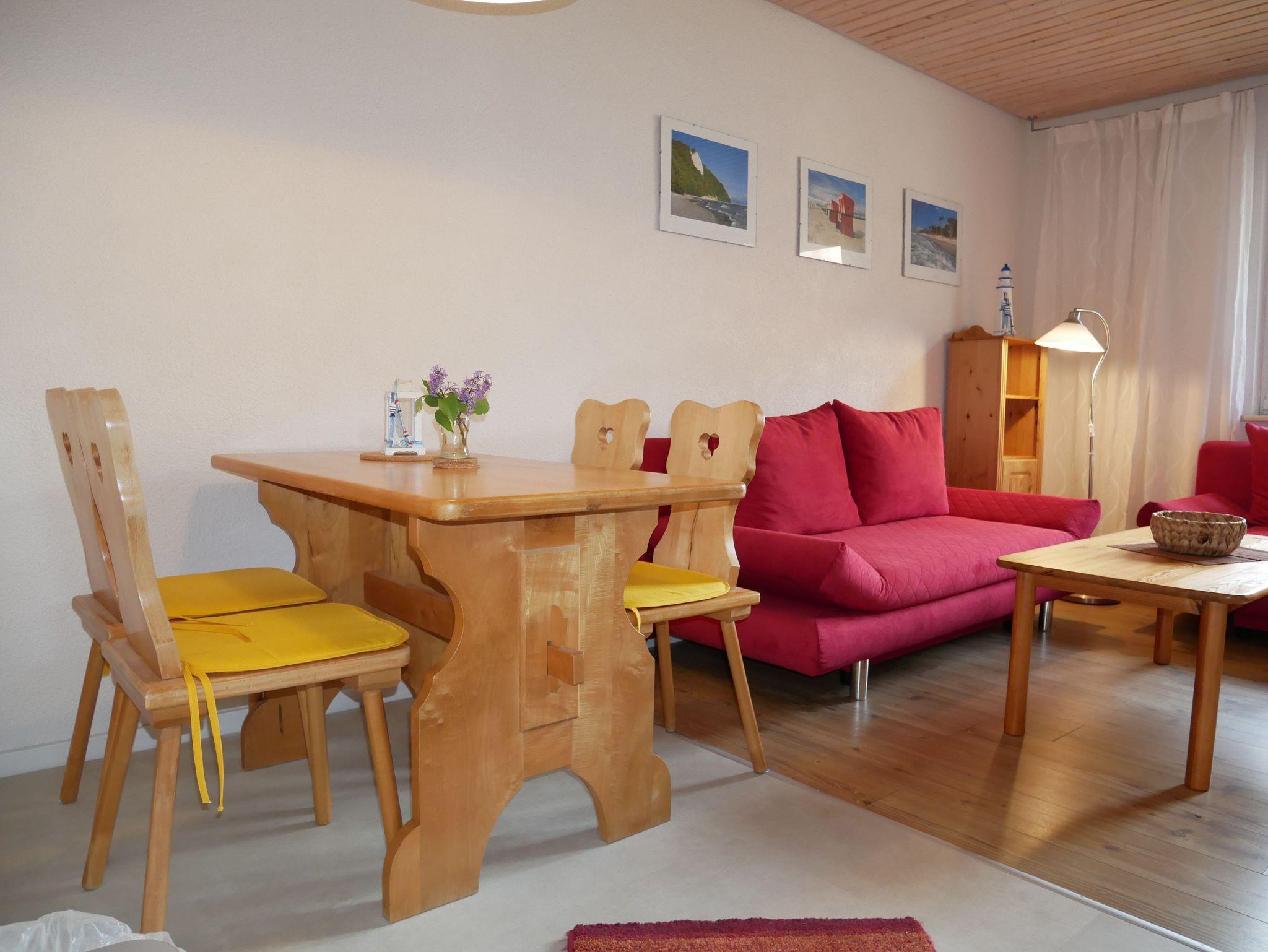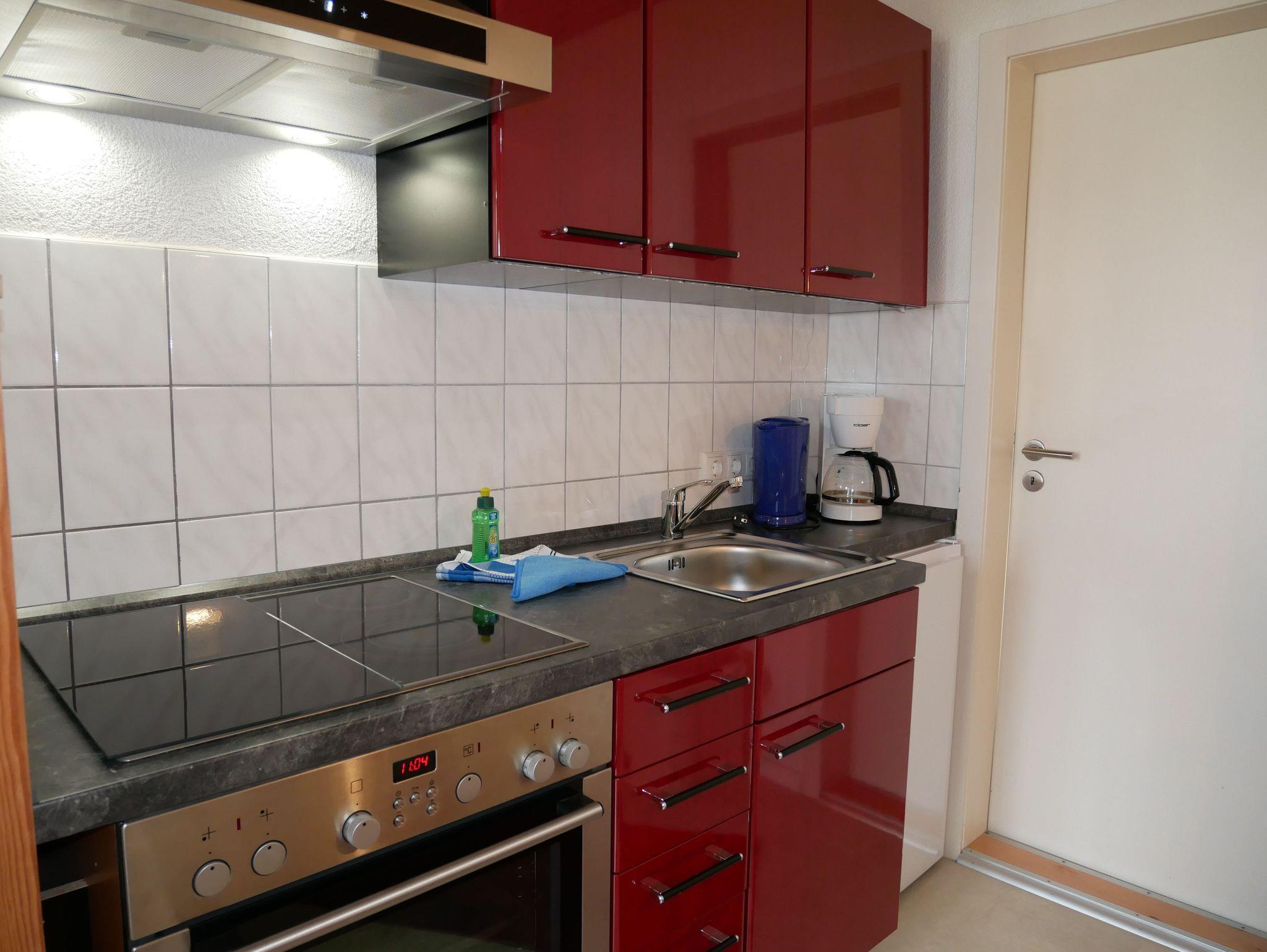 Der offene Wohnbereich mit integrierter Küchenzeile lädt zum Verweilen ein. Hier finden Sie eine bequeme Schlafcouch, auf der Sie nach einem erlebnisreichen Tag entspannen können, während Sie Ihren Lieblingsfilm auf dem Flat-TV schauen. Die Küchenzeile ist vollständig ausgestattet mit einem Cerankochfeld, Backofen, Kühlschrank mit Gefrierfach, Toaster, Wasserkocher, Kaffeemaschine und einem Esstisch ? ideal für gemeinsame Mahlzeiten.