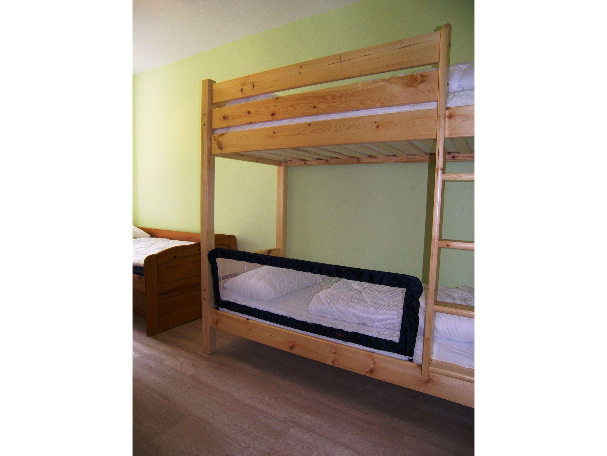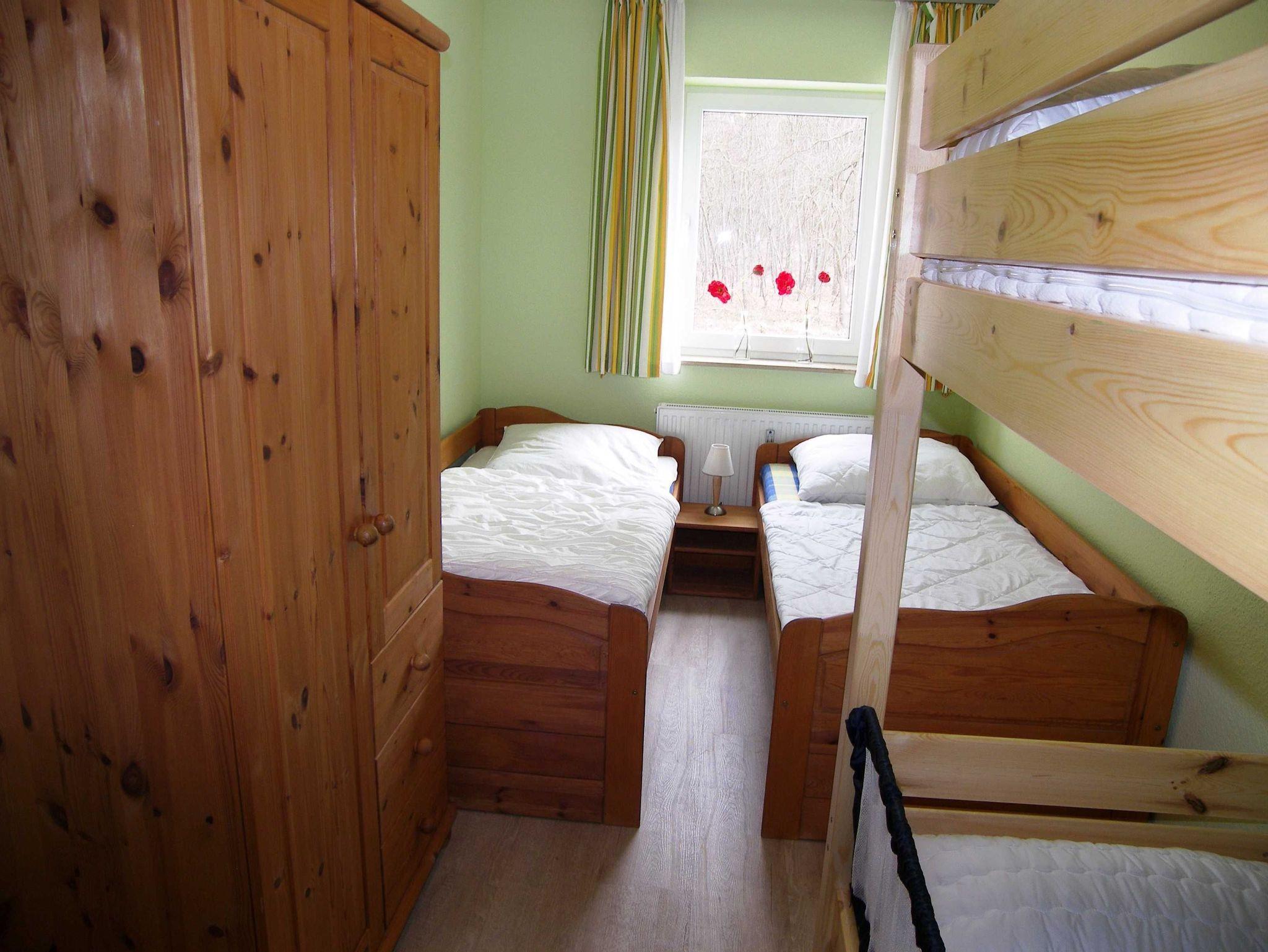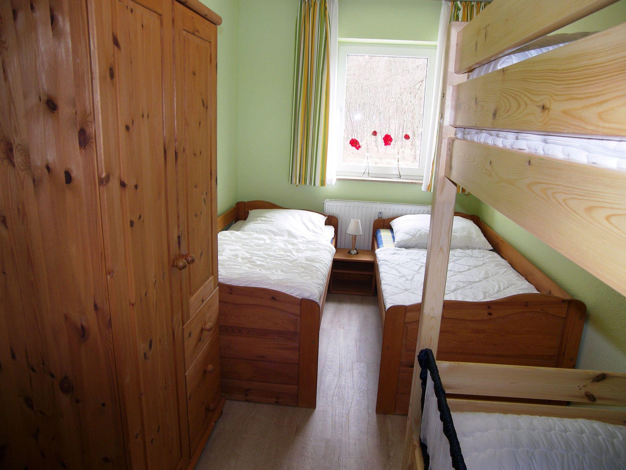Kinderzimmer mit zwei Einzelbetten und einem Etagenbett (Doppelstockbett)
