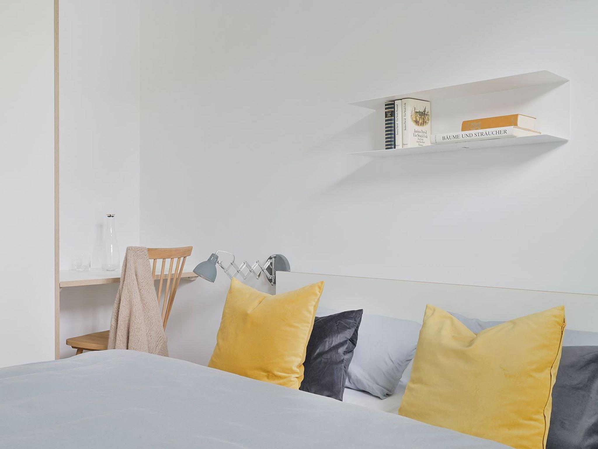 Mit einer Fläche von 45 m² bietet das großzügige 2-Zimmerapartment Aufenthaltsmöglichkeiten für 1-2 Personen. Eine offene, vollausgestattete Küche schafft hohe Transparenz zum lichtdurchfluteten Wohnraum und lädt zu gemeinsamer Wohlfühlzeit ein. Die Einrichtung der Wohnung fokussiert sich auf ein modernes, gleichzeitig gemütliches Interieur.