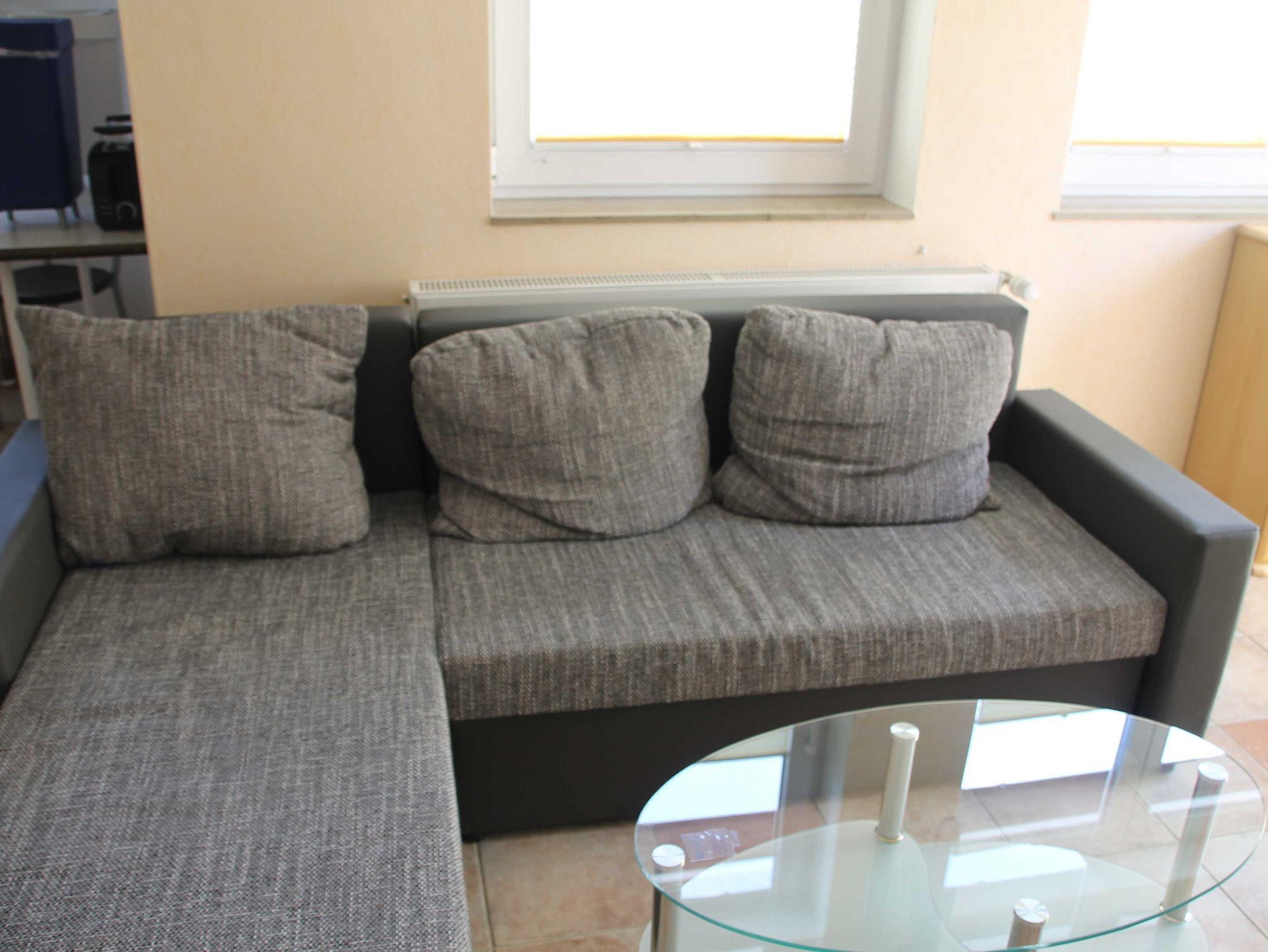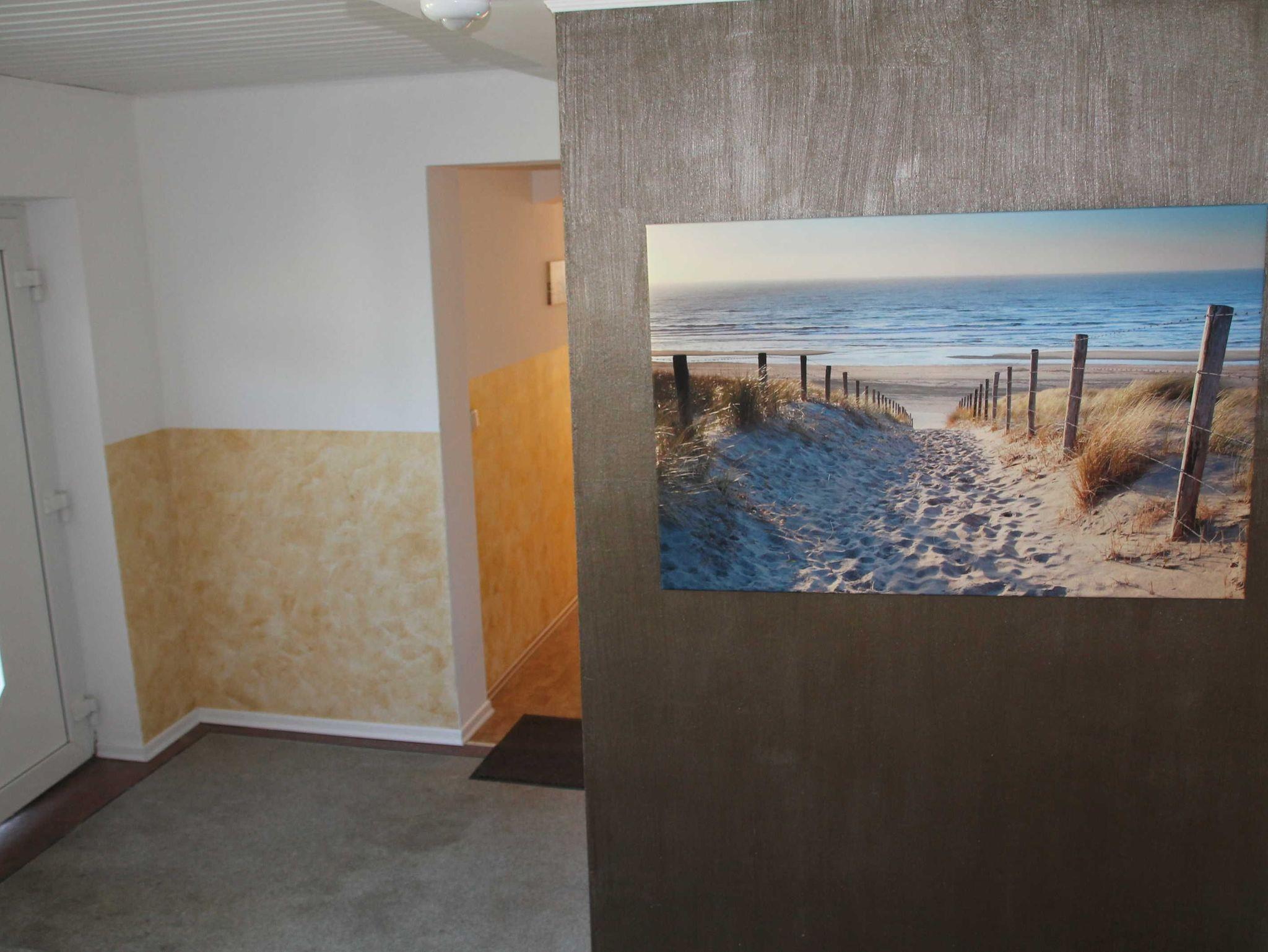 Im Obergeschoss bietet das ?Mignon petit? eine moderne ca. 80 qm große Ferienwohnung mit wunderschöner 20 qm großer Dachterrasse für 4 bis 5 Personen. Die Wohnung besteht aus einem Flur, Badezimmer mit Dusche, WC und Waschmaschine, 2 Schlafräumen (1x Doppelbett und 1x 2 Einzelliegen) und einem gemütlichen Wohnzimmer mit Kabel-TV und Radio mit integrierter Küchenzeile (Kühlschrank, Spüle, Ceranherd, Backofen, Mikrowelle, Kaffeemaschine, Toaster, Wasserkocher etc.). Auf Wunsch kann noch ein zweites Bad mit Dusche und WC zusätzlich gemietet werden.