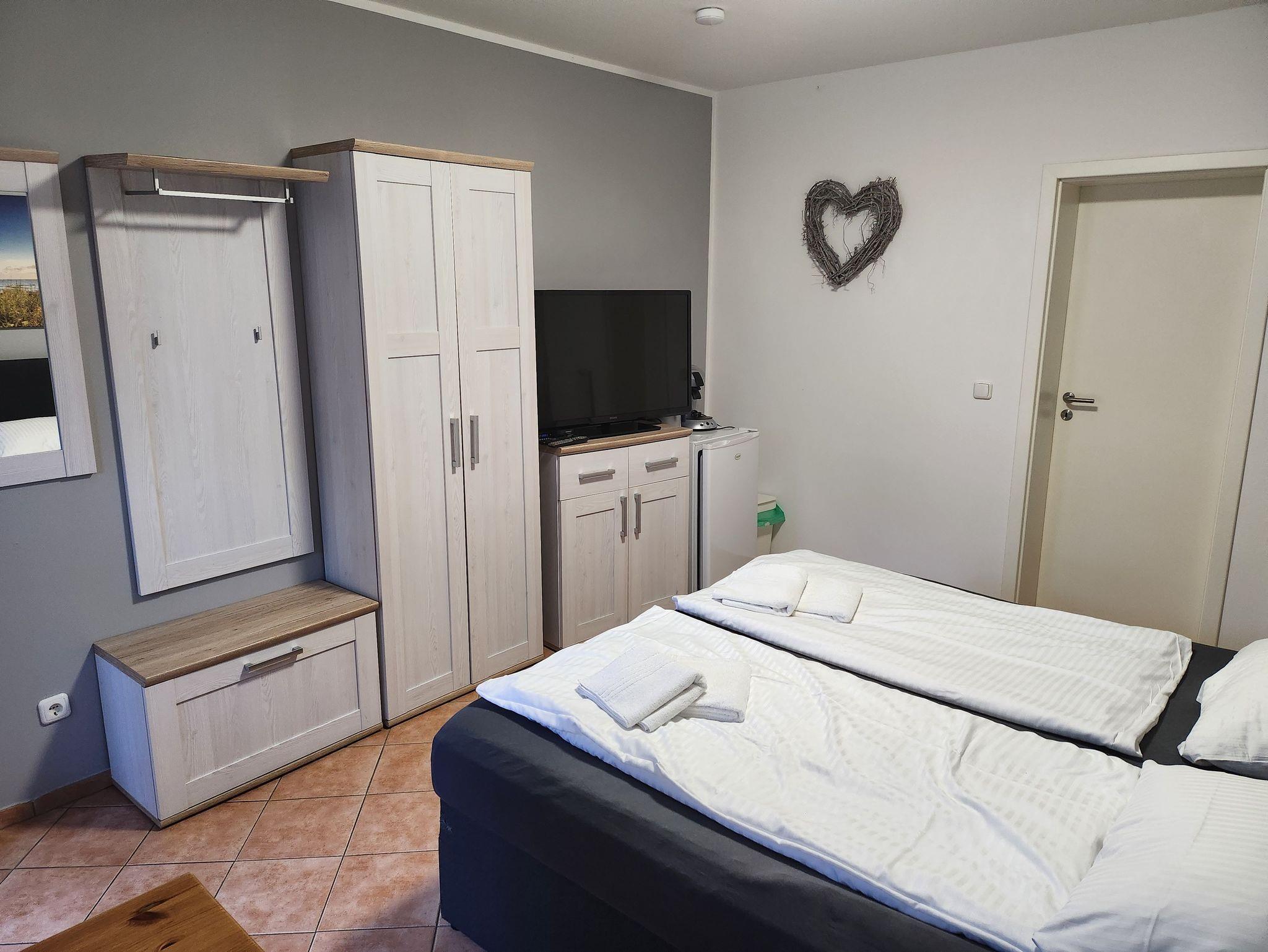 Wie bieten Ihnen in unserer Pension Doppelzimmer mit Bad/Dusche, Doppelbett, TV, Heizung, Kühlschrank, Kaffeemaschine, Toaster, Wasserkocher.