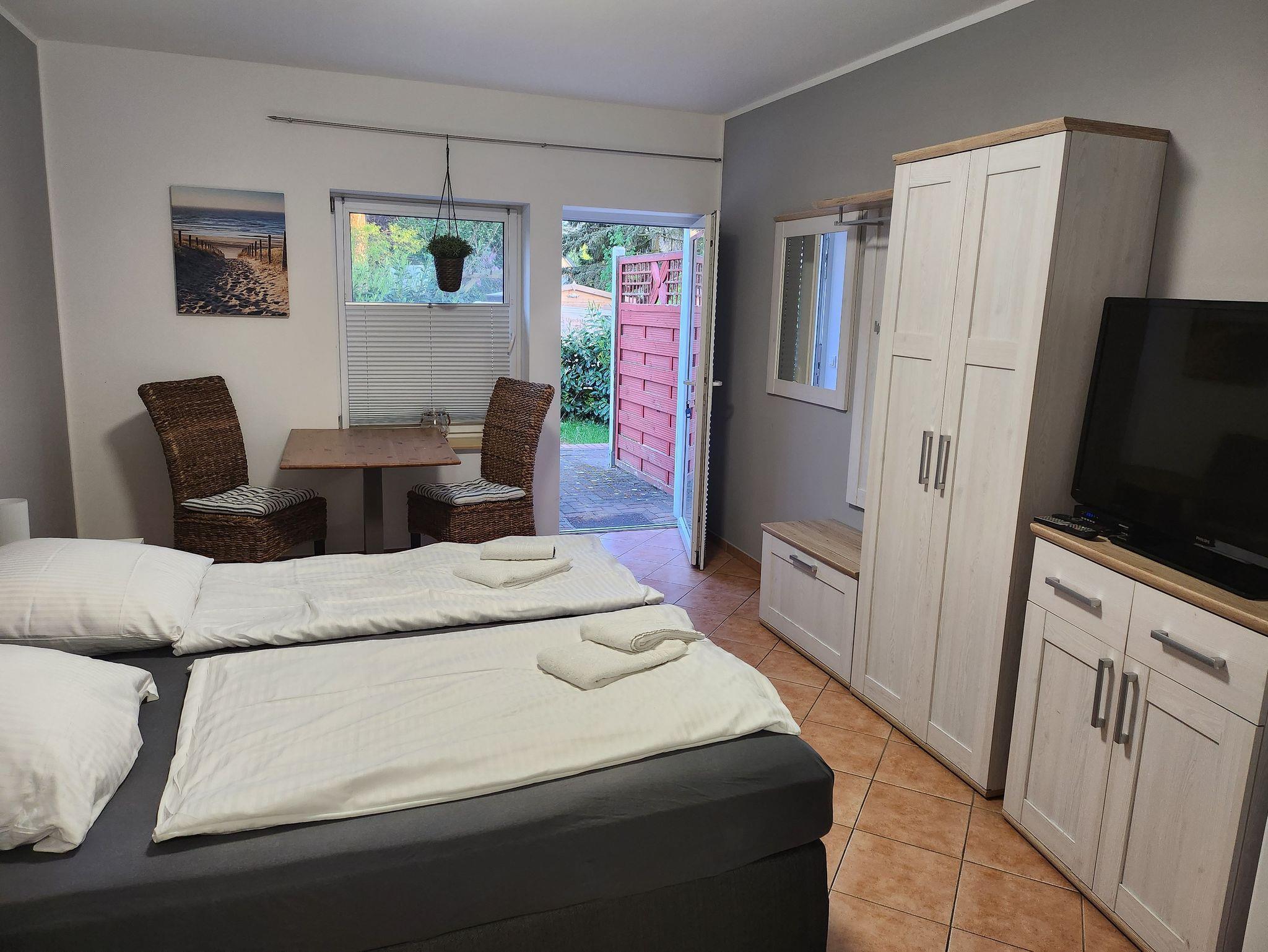 Gemütliche Pension Seeräubär in Koserow, nahe Ostsee, mit separatem Eingang und Terrasse für entspannte Urlaubstage.