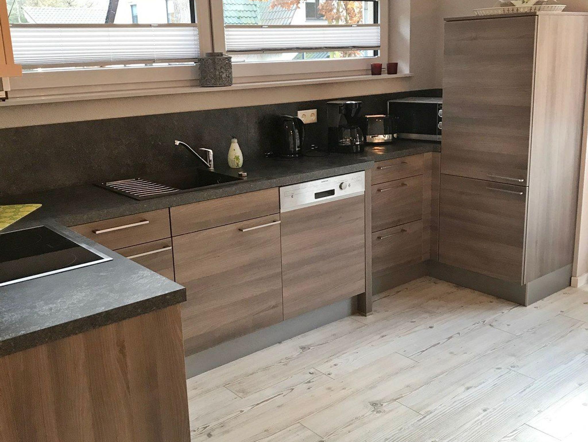 - Küchenbereich mit Küchenzeile (Backofen, Mikrowelle, 4 Zonen - Induktionskochfeld, Kühlschrank mit