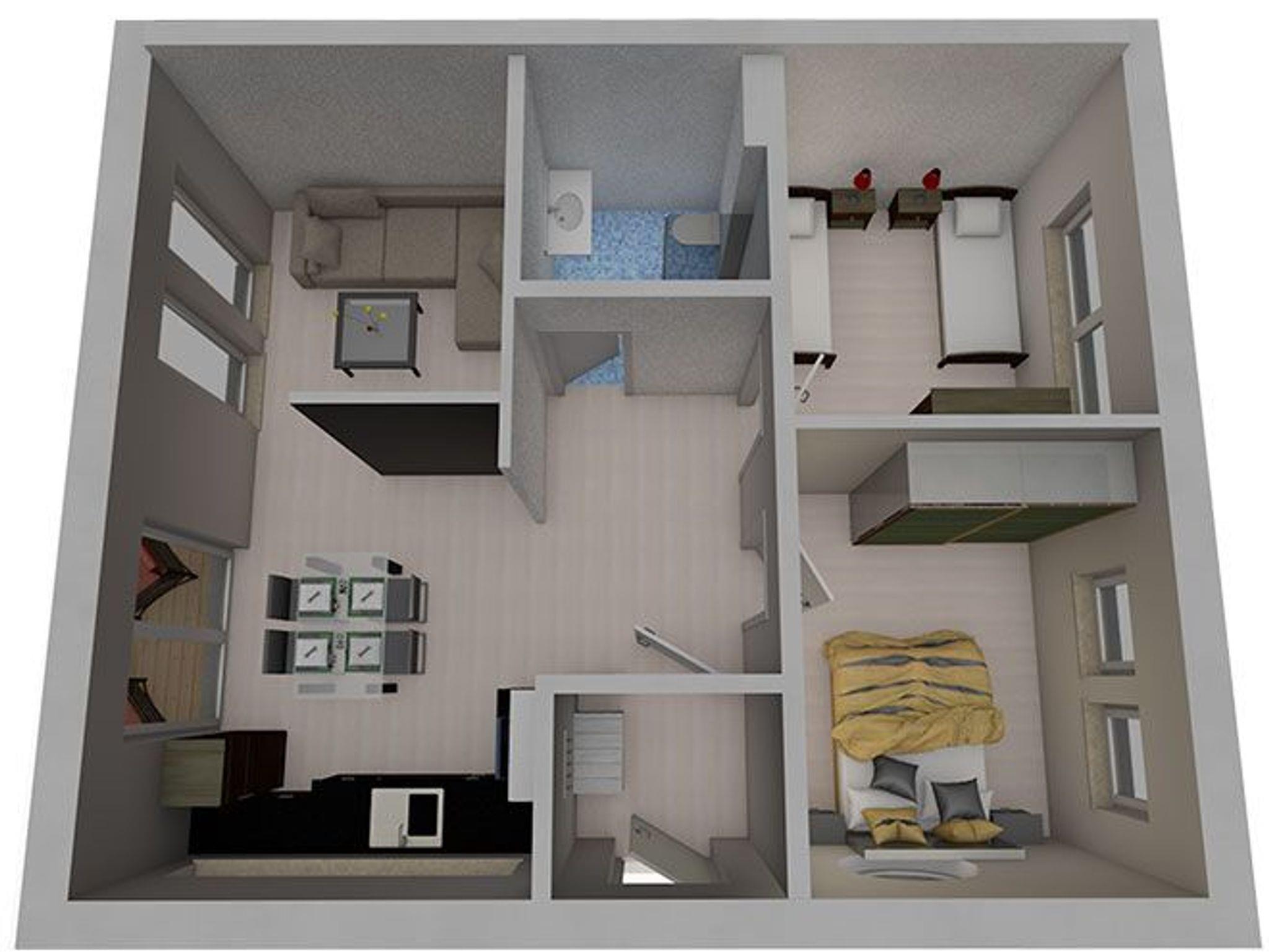 - 1 Schlafzimmer mit 2 Einzelbetten und Kleiderschrank