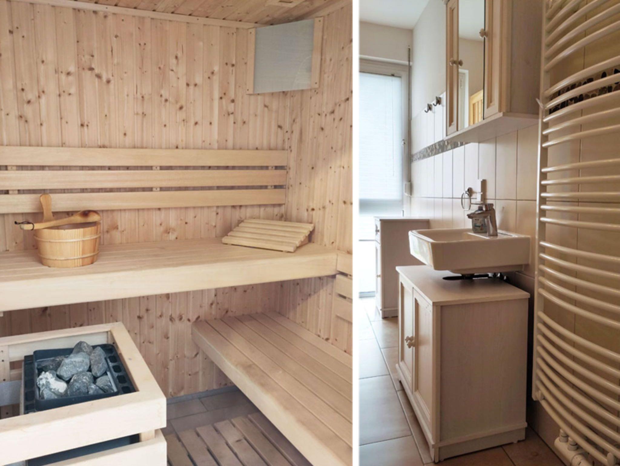 Das 64 m² große moderne Apartment eignet sich perfekt für ihren Urlaub zu viert. Ob kleine Familie oder Wochenende mit Freunden: Hier können Sie sich wie zu Hause fühlen! Zwei separate Schlafzimmer bieten mit ihren gemütlichen Betten die Garantie für einen erholsamen Schlaf. Der Wohnbereich mit offener Küche ist der perfekte Ort für gemeinsame Zeit im Urlaub. Neben einer bequemen Couch und einem großzügigen Esstisch, stehen Ihnen auch ein Kamin für die kühlen Tage und eine großzügige Terrasse im Sommer zur Verfügung. In der Küche ist alles vorhanden, damit Sie sich perfekt selbst verpflegen können: Backofen, Herd, Kühl- Gefrierkombination und Geschirrspüler. Das moderne Bad ist mit einer Dusche, sowie Badewanne und einer Sauna ausgestattet. Diese Nichtraucher-Wohnung hat eine großzügige ruhige Terrasse zur Rückseite des Hauses.