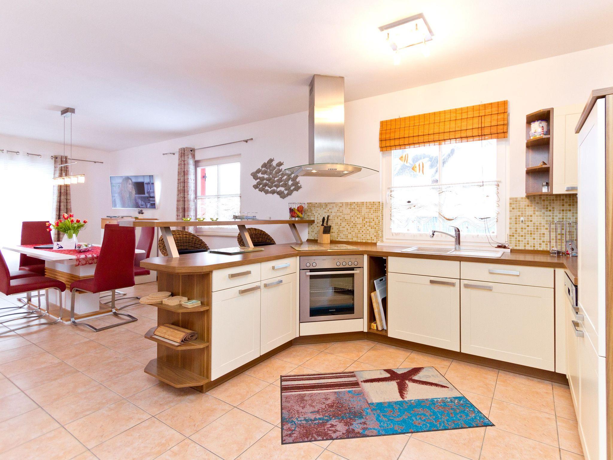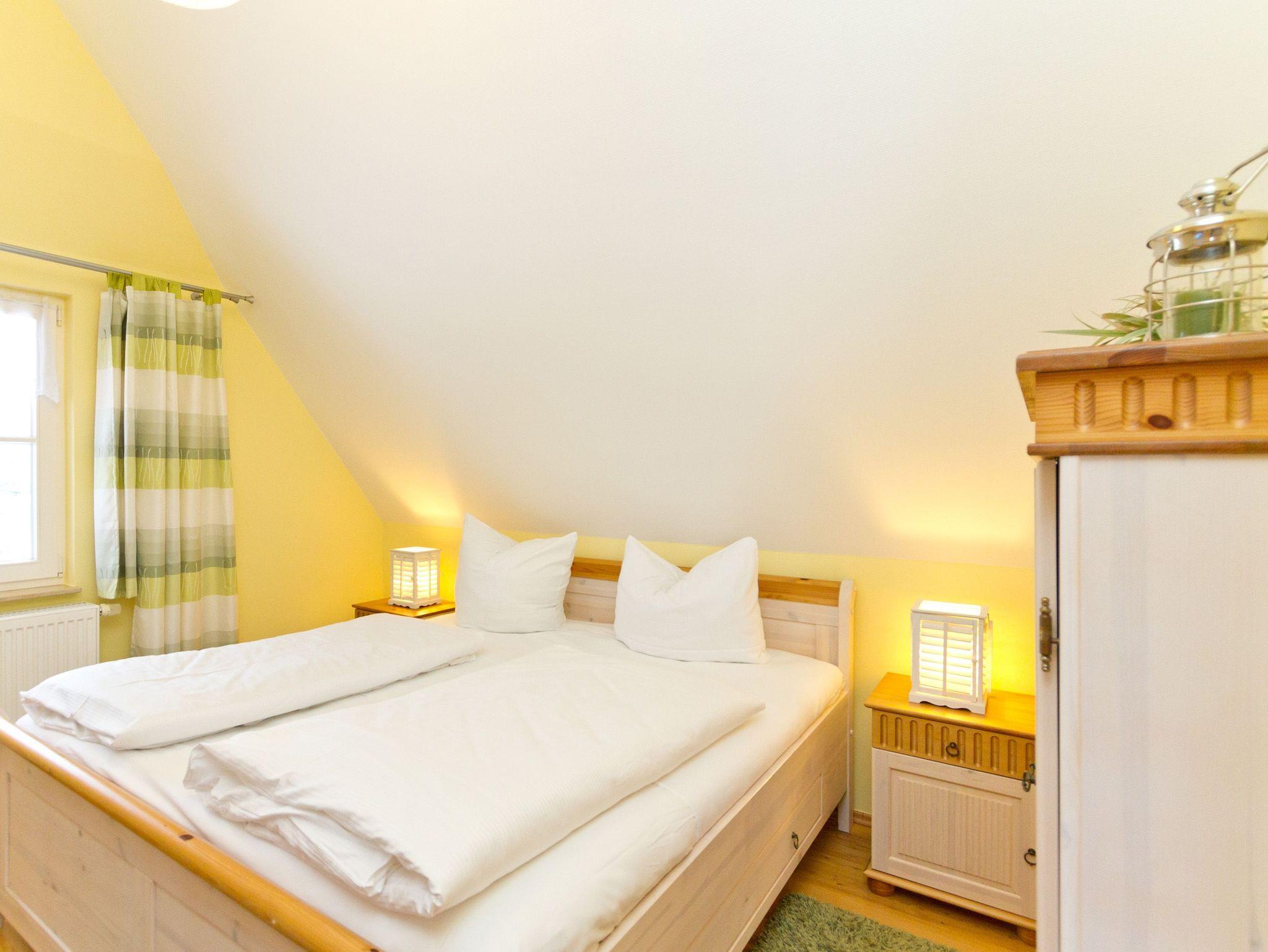 Das Ferienhaus unter Reet bietet auf 2 Etagen (100 qm) 5 Personen (inklusive Kleinkind) genug Platz für einen entspannten Usedomurlaub. Geschmackvoll eingerichtet, finden Sie im Erdgeschoss den Wohnbereich mit Kaminofen, der besonders in den kalten Tagen kuschlige Abende verspricht. Die angeschlossene, offene Küche ist komplett ausgestattet. Zum Relaxen empfiehlt sich ein Gang in die Sauna, die im Bad integriert ist. Im Obergeschoss des Hauses finden Sie zwei Schlafzimmer mit Doppelbetten und ein weiteres Bad. Auf der großzügigen Terrasse mit Strandkorb genießt man die Usedomer Sonne. Die Erstausstattung Bettwäsche und Handtücher steht für Sie bereit. Für Kleinkinder können ein Kinderreisebett und ein Hochstuhl separat gebucht werden. Als Aufbettungsmöglichkeit für die 5. Person dient die Schlafcouch im Wohnzimmer.