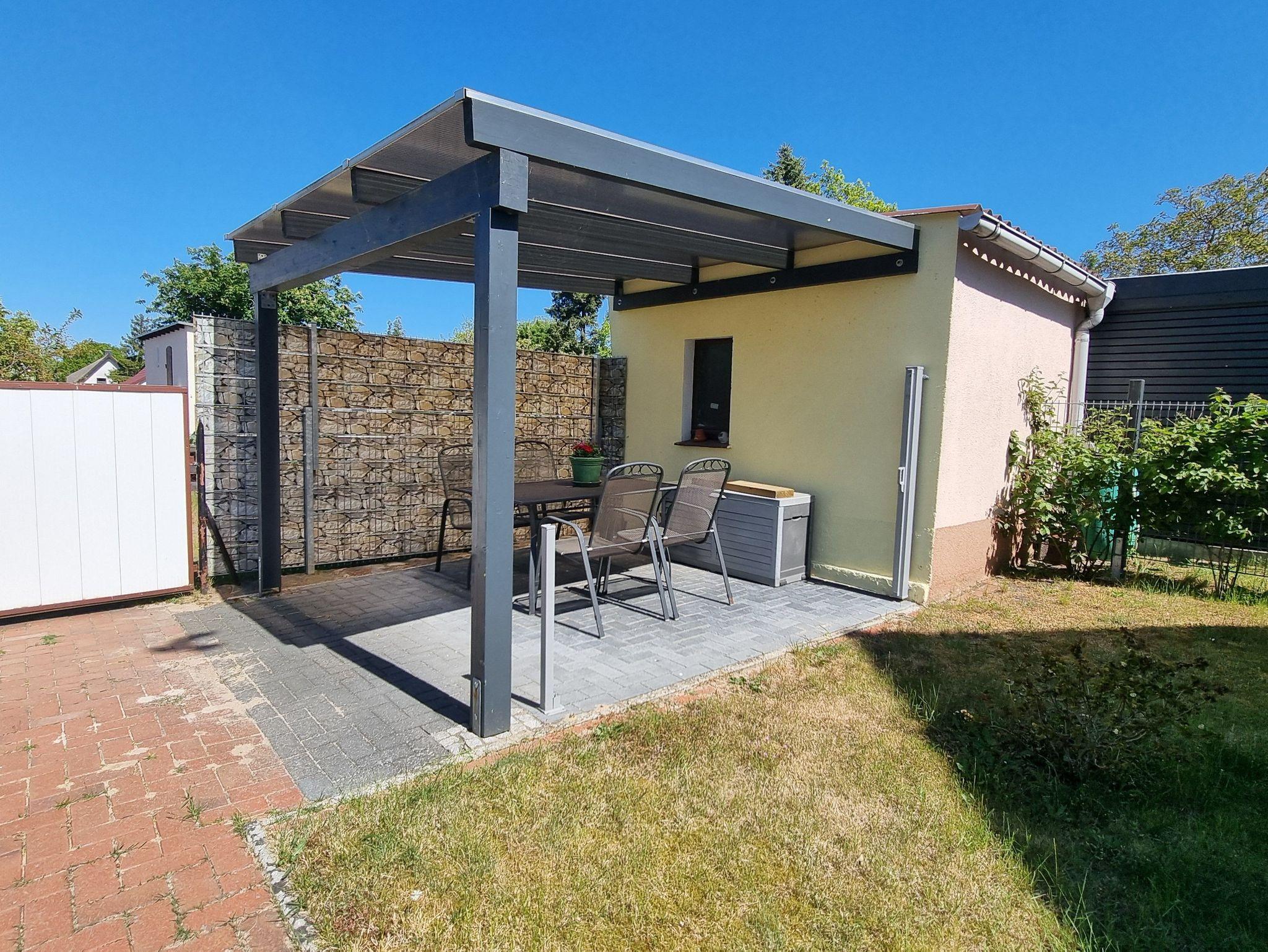 • Terrasse mit Möbeln, Grill und Überdachung