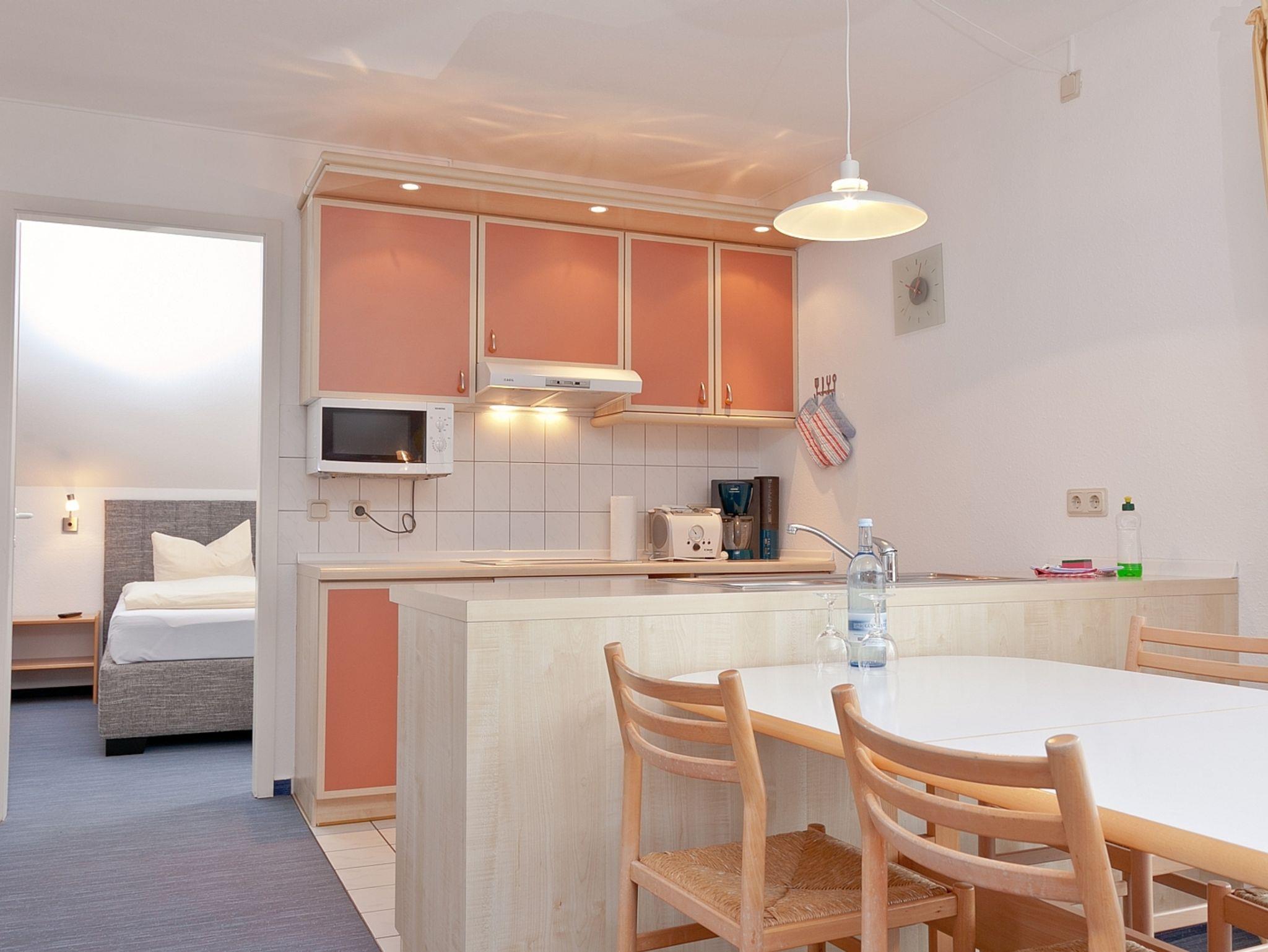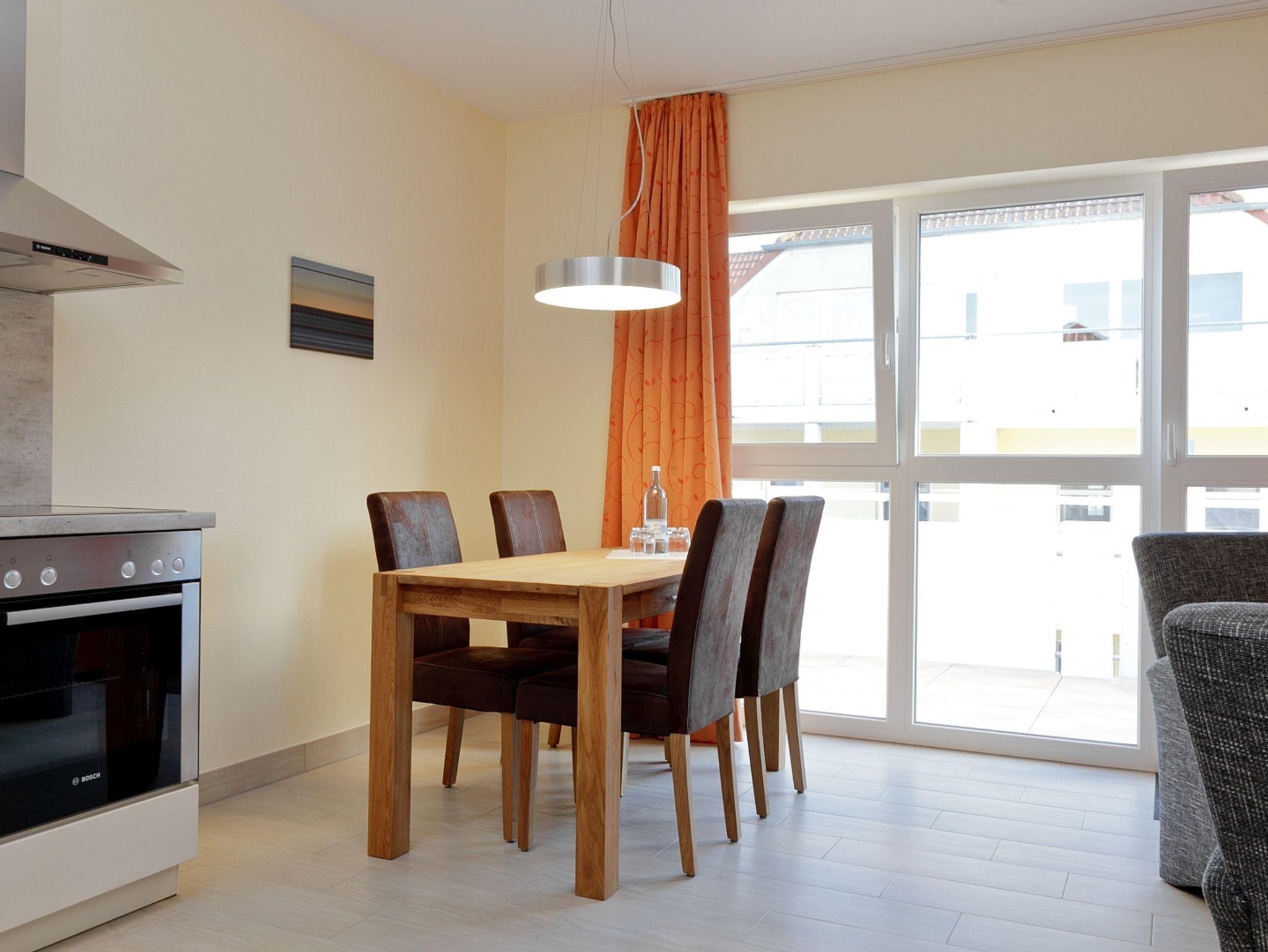 Zu jeder Wohnung gehört ein reservierter Stellplatz. Die Nutzung von Einrichtungen des Vineta Ferienparks wie Schwimmbad, Sauna, Tennisplatz, Grillplatz und Tischtennisplatte ist im Mietpreis enthalten.