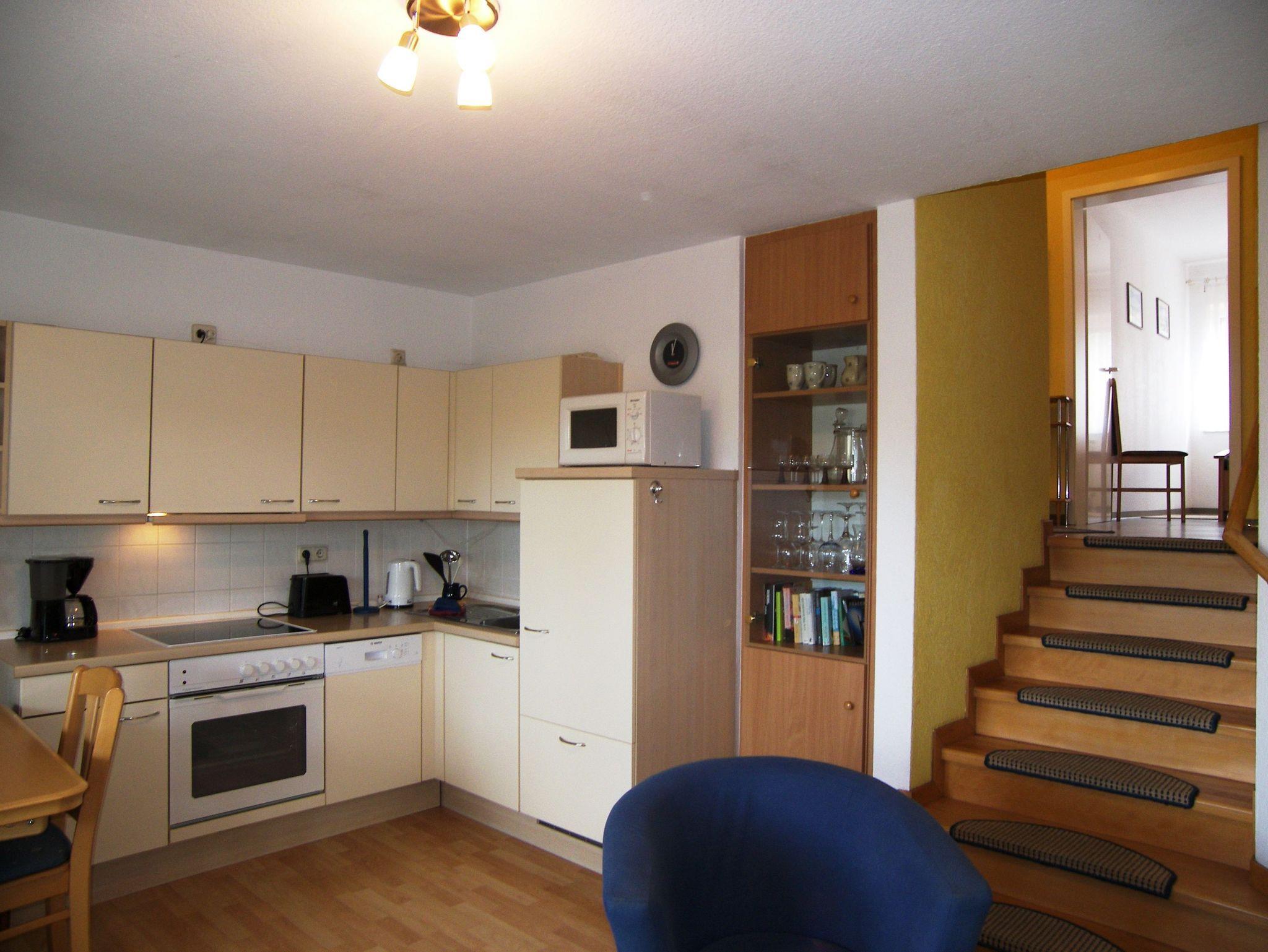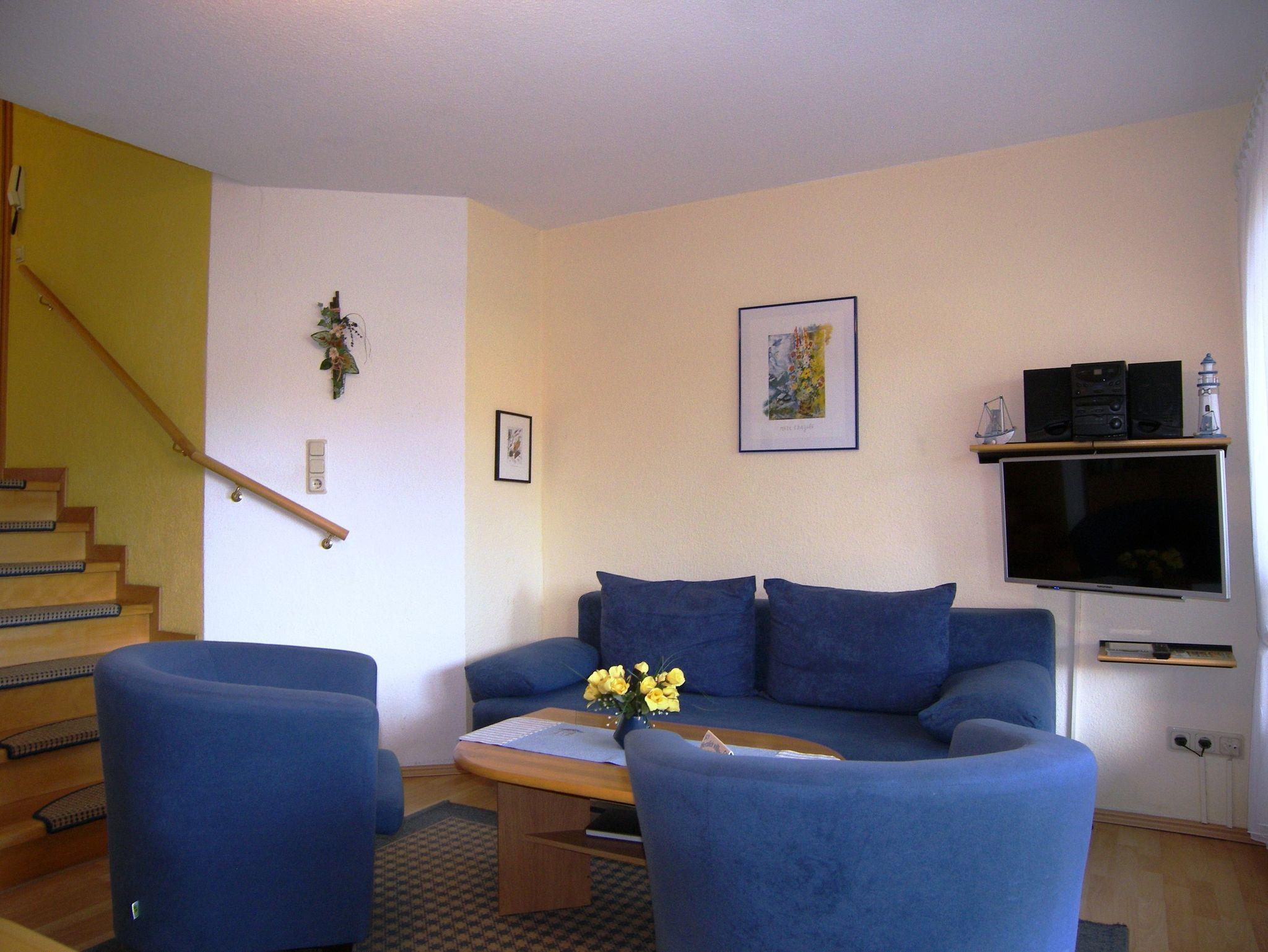 Die gemütliche 52qm große 3-Zimmer Ferienwohnung liegt in einem ruhigen Wohngebiet des Ostseebads Koserow und bietet Platz für 4 Personen. Die gemütlich eingerichtete Nichtraucher-Wohnung verfügt über 2 Wohnebenen die über wenige Stufen miteinander verbundenen sind. In der oberen Etage befinden sich Diele, das Badezimmer mit Dusche und WC, sowie zwei Schlafzimmer mit Doppelbett bzw. zwei variabel einsetzbare Falt-Schlaf-Sessel, die zwei Schlafplätze bieten. In der unteren Ebene befindet sich der großzügige Wohn-Essbereich mit offener Küche welche mit einen Cerankochfeld mit Backofen, Spülmaschine, Mikrowelle, Kühlschrank mit Gefriermöglichkeit, Wasserkocher, Toaster und Kaffeemaschine ausgestattet ist.