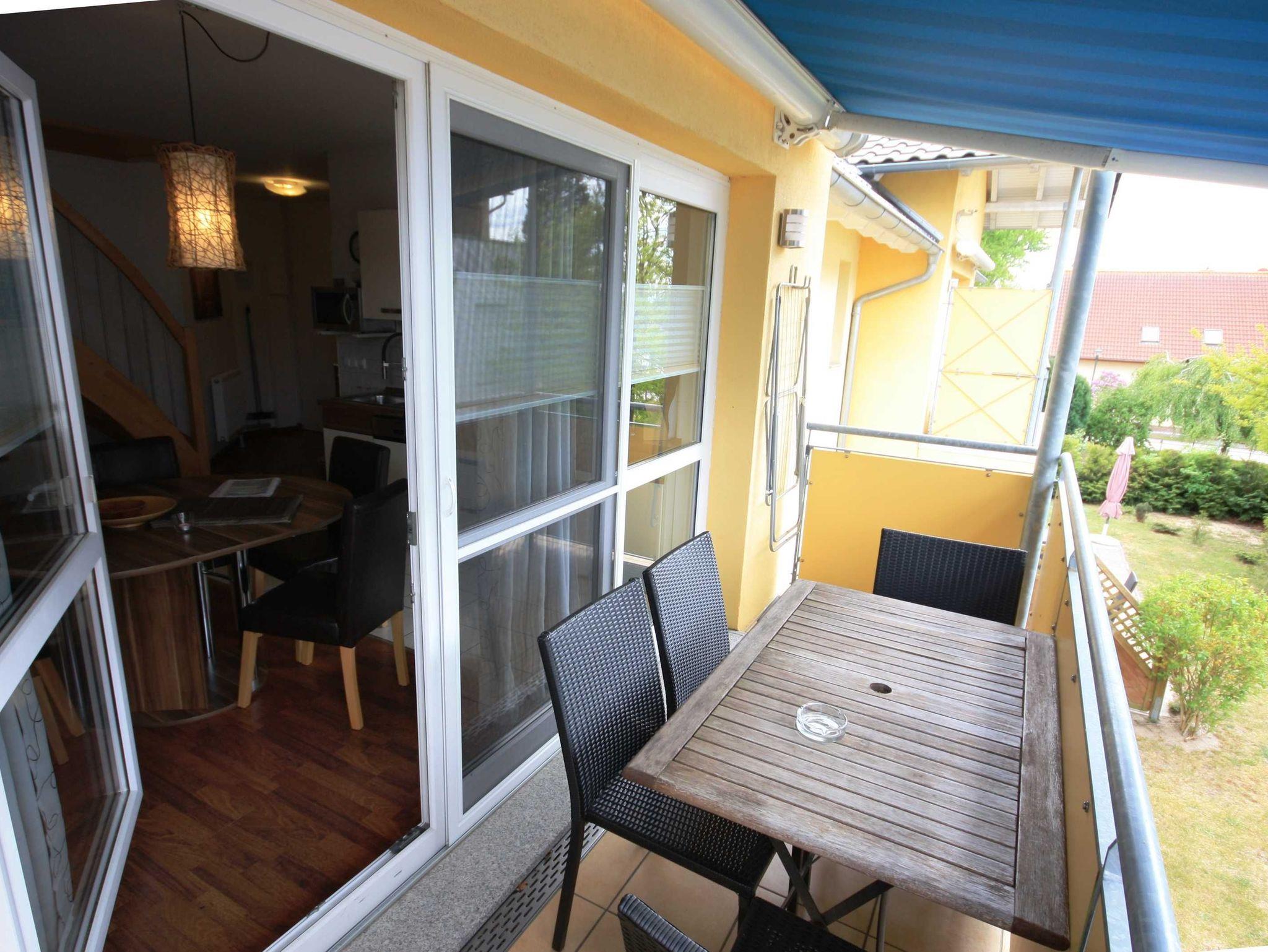 Moderne Ferienwohnung in Koserow mit Balkon, nahe Ostsee und Strand, ideal für Familien und Paare.