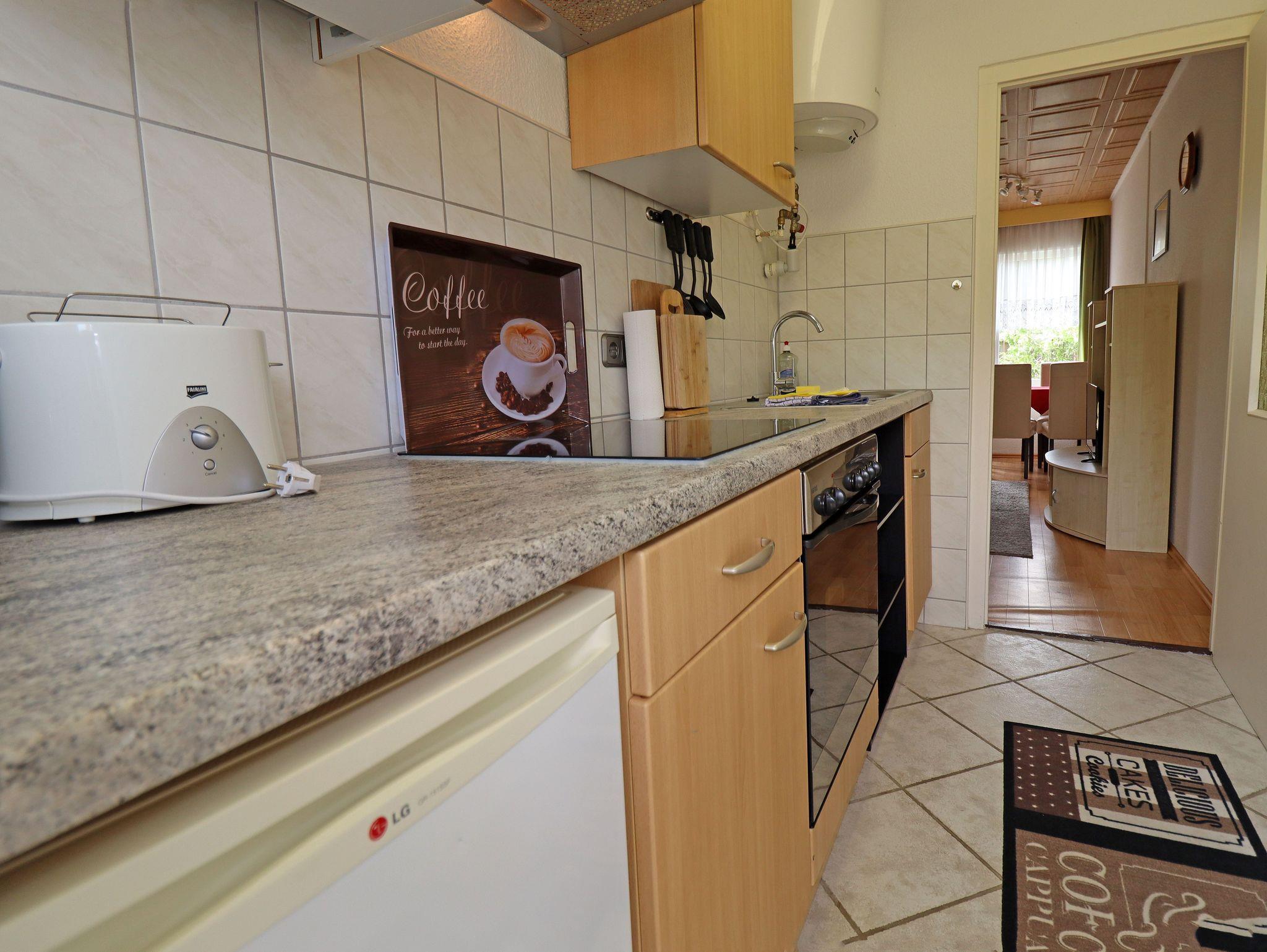 Ferienhaus mit 2 Schlafzimmern, Wohnzimmer mit Essgruppe, TV, Radio, Terasse und Sitzgruppe, Du/WC, Küche verfügt über eine moderne Küche mit Geschirrspüler und Mirkowelle