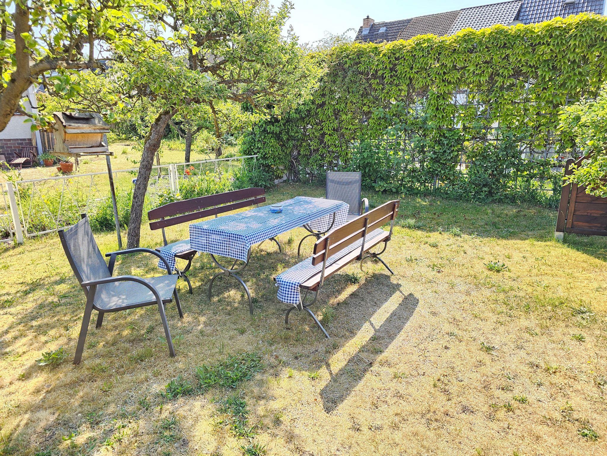 Die Ferienwohnung (für bis zu 4 Personen + 1 Kleinkind im zusätzlichen Reisebett) befindet sich im 1.OG des Eigenheims. Hier können Sie im Flur Ihre Schuhe und alltägliche Garderobe ablegen. Vom Treppenflur aus kommen Sie ins Bad, in die Küche oder ins angrenzende Wohnzimmer. Das Bad ist mit Dusche und WC ausgestattet. Die nebenliegende große Küche bietet Ihnen einen Herd mit Ceranfeld und Dunstabzug, einen großen Kühlschrank mit Gefrierfächern, einen Geschirrspüler, eine Mikrowelle, Kaffeemaschine, Toaster und mehrere Abstellmöglichkeiten und Schränke mit Geschirr/Kochgeschirr sowie Haushaltsutensilien. Zur Unterhaltung haben Sie hier ein Radio. Zum Entspannen ist das gemütliche Wohnzimmer, in welches Sie wieder über den Treppenflur gelangen. Hier können Sie ungestört TV-Sendungen sehen oder einfach relaxen und ein spannendes Buch lesen. Hier im Wohnzimmer erfolgt die Aufbettung für 2 Personen auf der ausziehbaren Schlafcouch. Im angrenzenden Schlafzimmer mit Doppelbett finden Sie genügend Platz für Ihre Garderobe. Die Nachmittags- und Abendsonne genießen Sie auf dem Balkon, ausgestattet (Mai-Oktober) mit Tisch, Stühlen und Sonnenschirm.