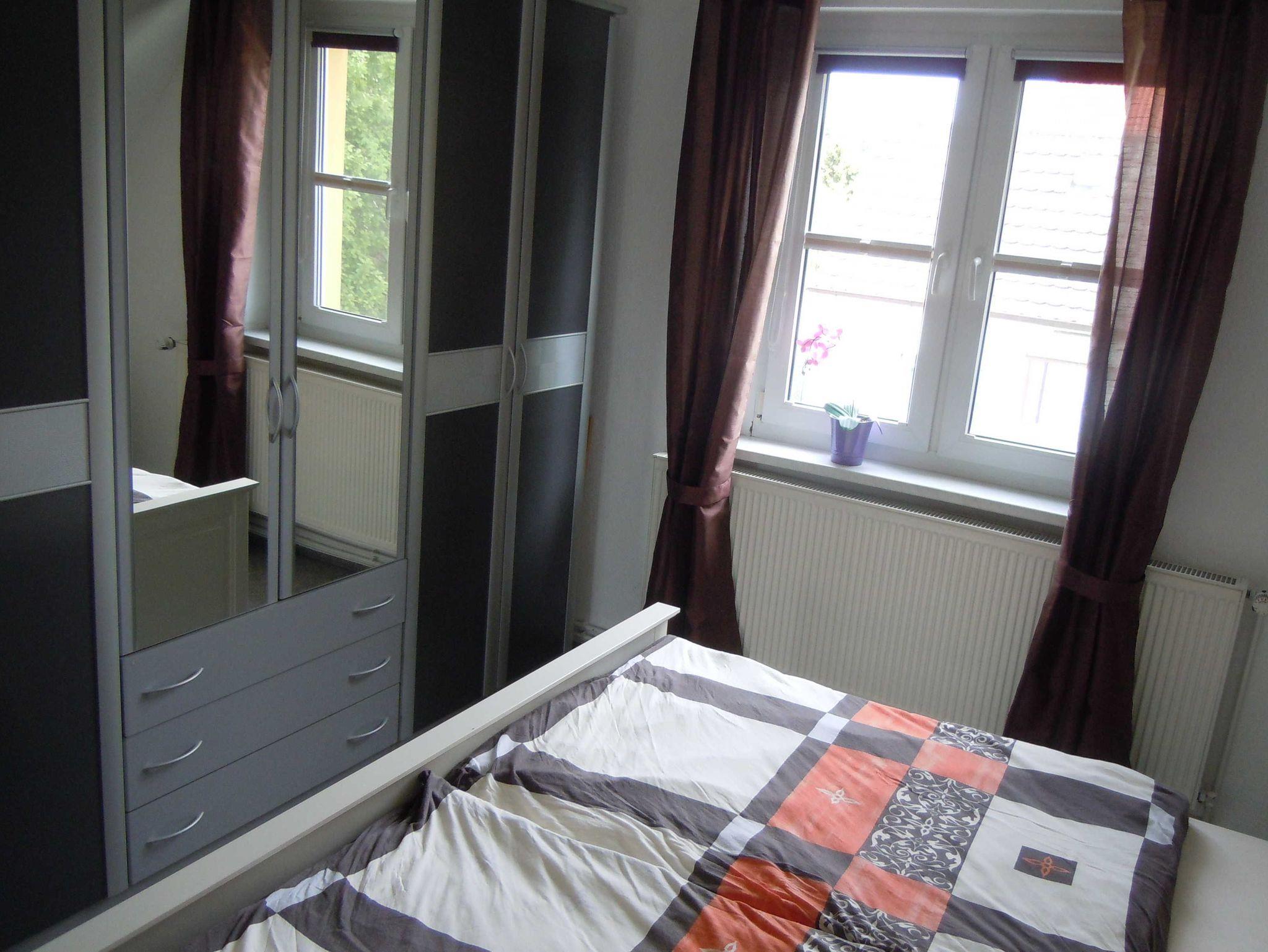 • 1 Schlafzimmer mit Doppelbett ca. 1,80m x 2,00m (Komfort-Matratzenhöhe) und großem Kleiderschrank