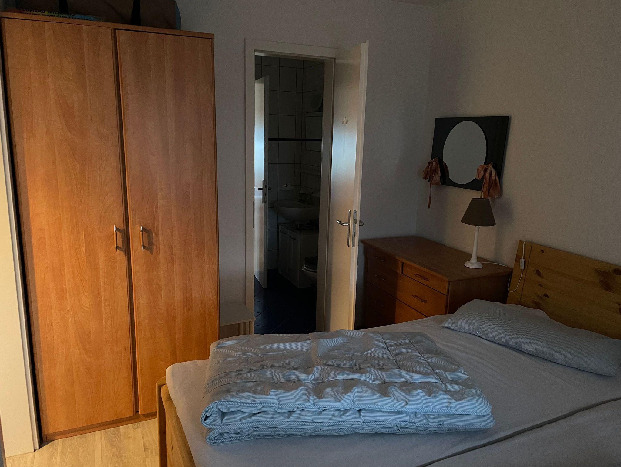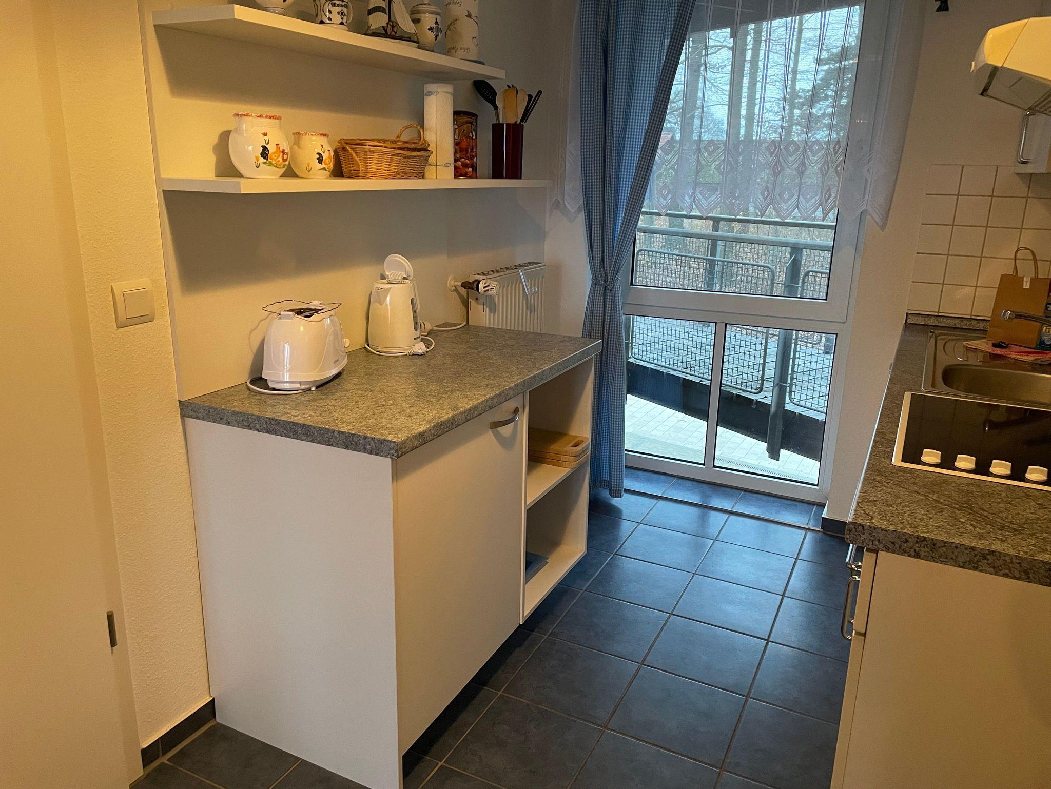 Dieses Nichtraucherappartement, innerhalb der kleinen Ferienanlage 'Seeblick', befindet sich im 1.Obergeschoss eines Gästehauses (Baujahr 1999) und verfügt über Dusche/WC, Wohnraum mit Flachbild-TV, Radio, offene Küche (, Kaffeemaschine, Kühlschrank, usw.) und Zugang zum möblierten Balkon mit Blick zur Ostsee, sowie über ein Schlafzimmer mit Doppelbett. Sie ist zentralbeheizt und für 2-3 Personen geeignet (Doppelbett im Schlaf- und Schlafcouch im Wohnraum). Bettwäsche/Handtücher im Set sind Bestandteil der Buchung.