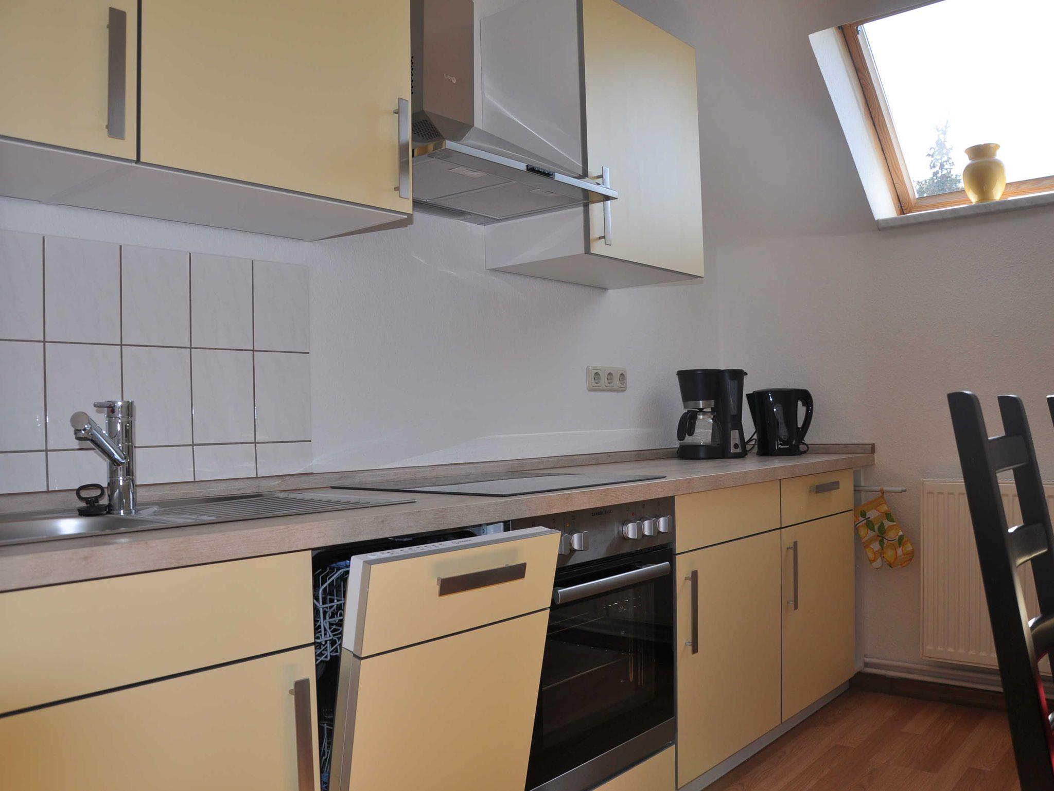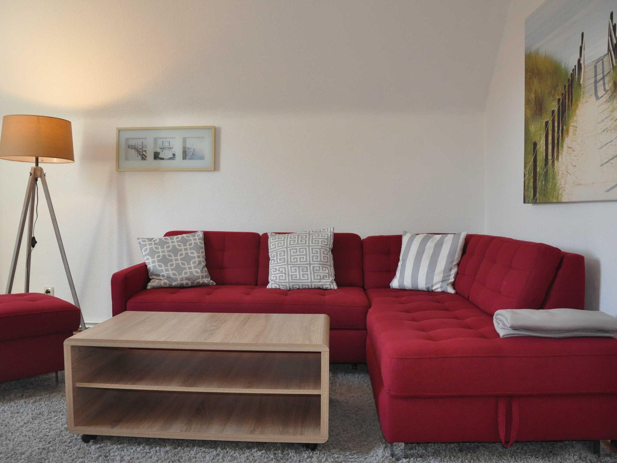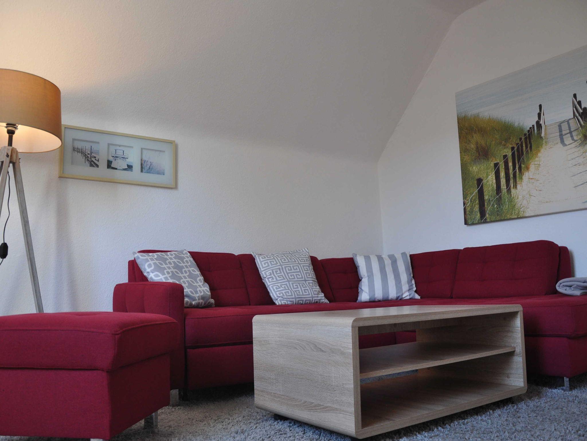 Unsere Ferienwohnung vom Typ Klüver ist im 1. OG im Apartmenthaus gelegen. Sie bietet Ihnen einen kombinierten Wohn-/ Schlafraum mit Schlafcouch, 2 Schlafzimmer und eine für bis zu 4 Personen umfangreich ausgestattete Einbauküche mit Elektroherd, Geschirrspüler, Kühlschrank, Toaster, Wasserkocher, Töpfe und Geschirr, sowie ein Bad mit Dusche und WC. Im Wohnbereich haben wir für Sie einen LED-Fernseher und ein CD-Radio bereitgestellt. Es ist eine Nichtraucherwohnung.