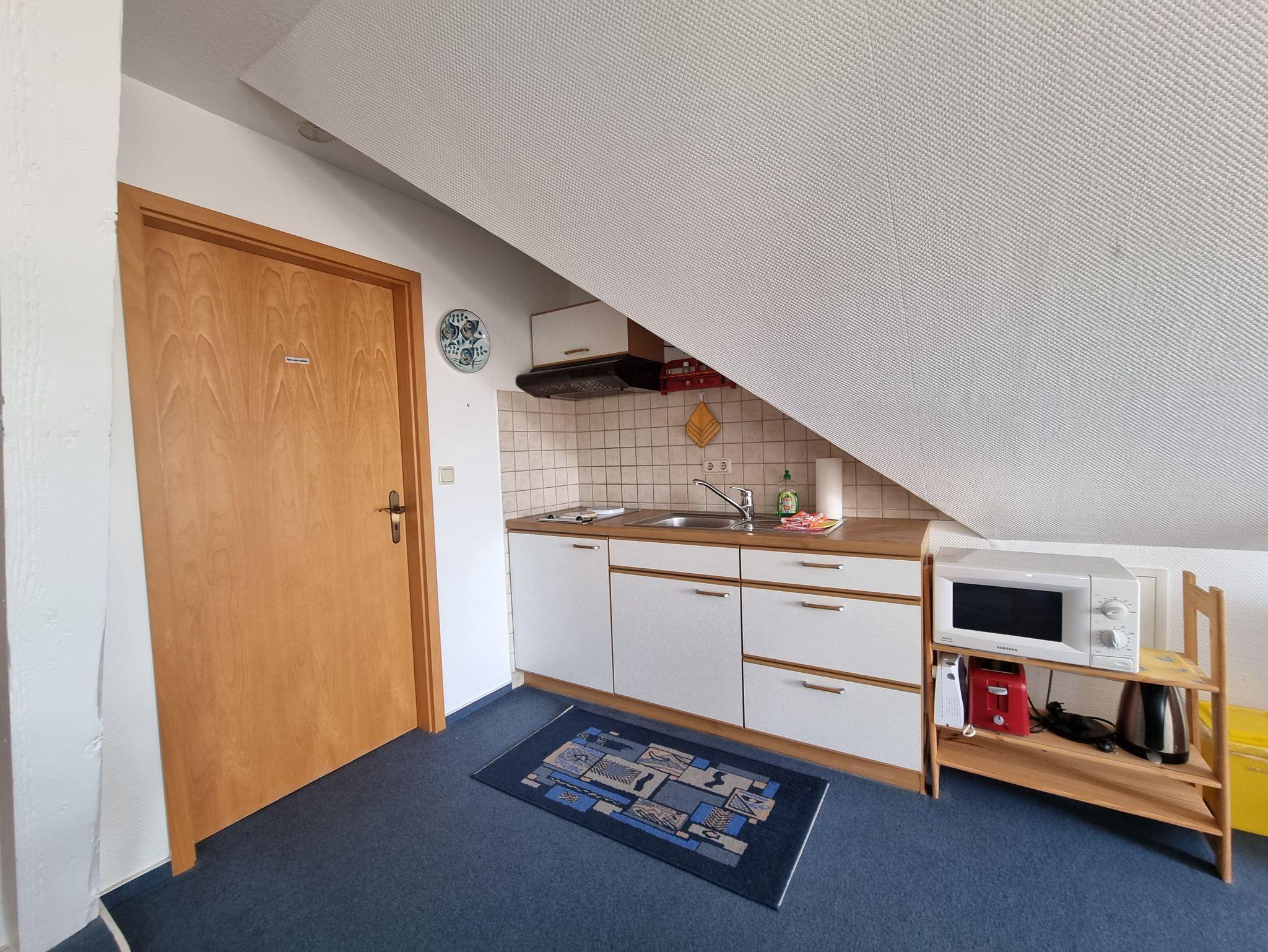Die Wohnungen sind optimal für Single, Paare oder Reisepartner geeignet. Die Studio-Apartments liegen im Obergeschoß des Ferienhauses. Sie bestehen aus einem großen kombinierten Wohn-/Schlafzimmer, kompl. ausgestatteter Küche und Tageslichtbad.