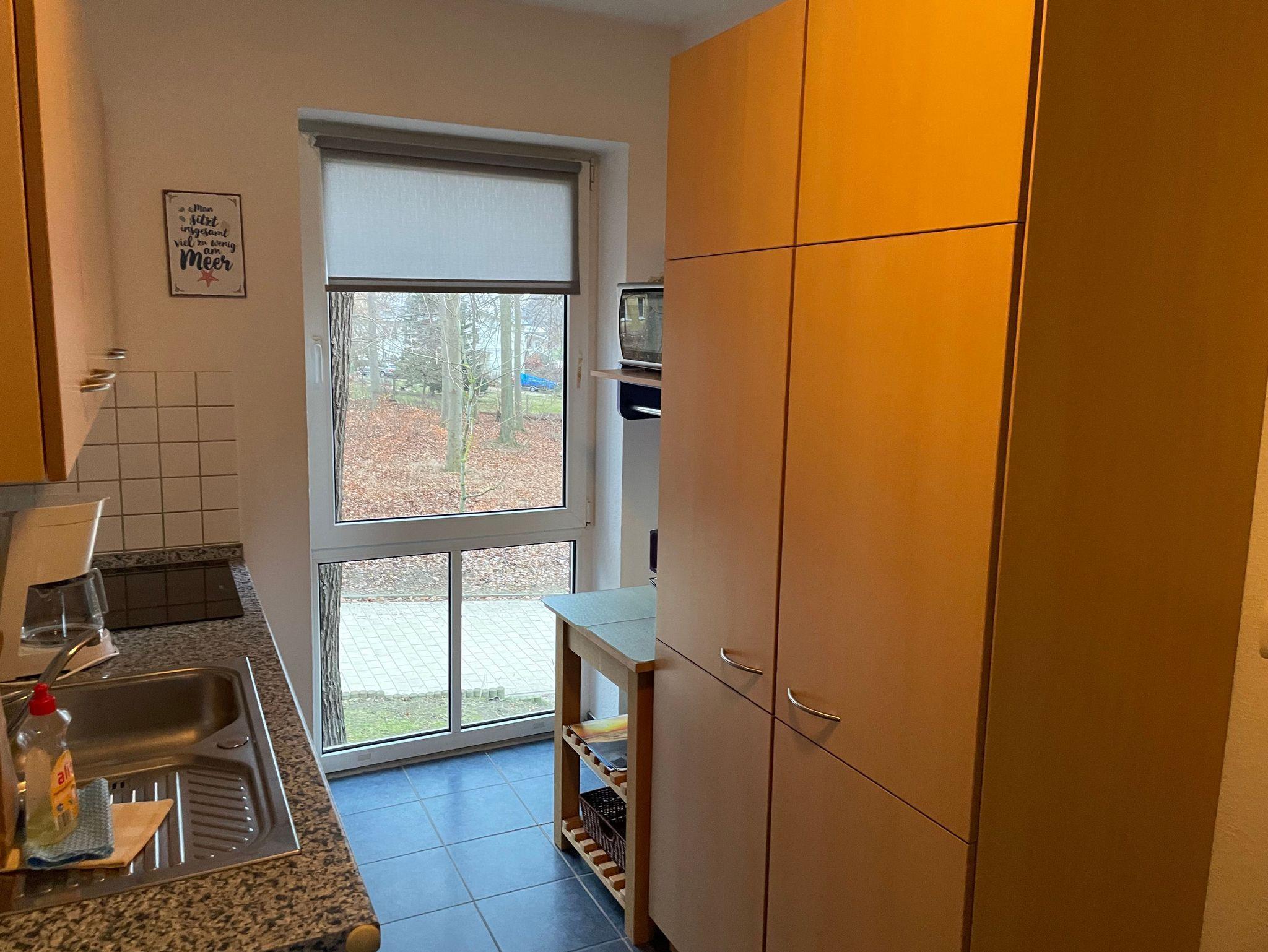 Dieses Nichtraucherappartement mit direktem Osteseeblick, innerhalb der gleichnamigen Ferienanlage 'Seeblick', befindet sich im 1.Obergeschoss eines Gästehauses (Baujahr 1999) und verfügt über Dusche/WC, Wohnraum mit TV, Radio, offener Küche ( Kaffeemaschine, Kühlschrank, usw.) und Zugang zum möblierten Balkon mit Blick zur Ostsee, sowie über ein Schlafzimmer. Sie ist zentralbeheizt und für 2-3 Personen geeignet (Doppelbett im Schlafzimmer und Schlafcouch im Wohnraum). Bettwäsche/Handtücher im Set sind Bestandteil der Buchung.