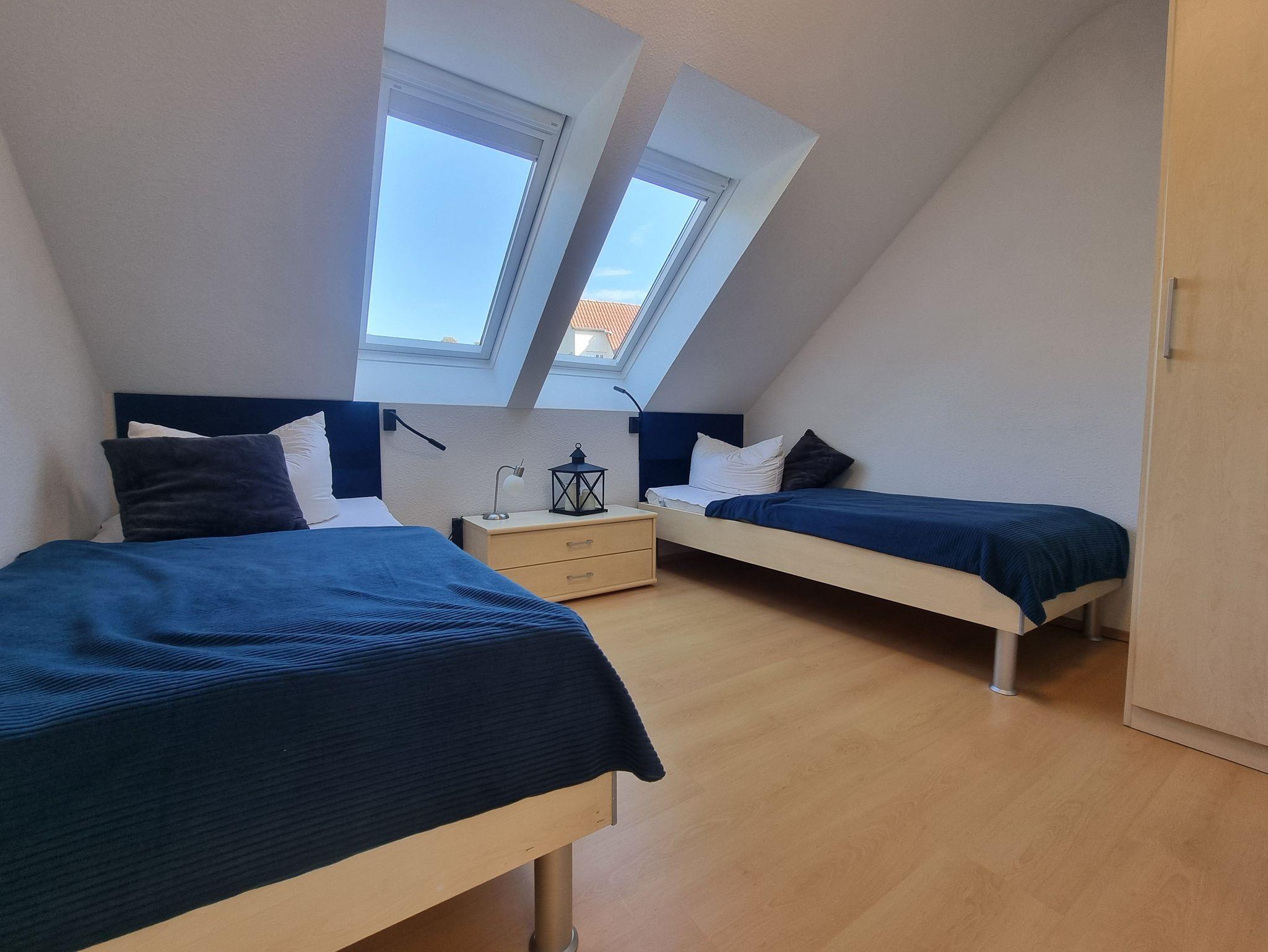 Die Wohnung verfügt über ein Schlafzimmer mit Doppelbett und ein Schlafzimmer mit 2 Einzelbetten. Die Wohnung ist ideal geeignet für Familien und Hundeliebhaber.