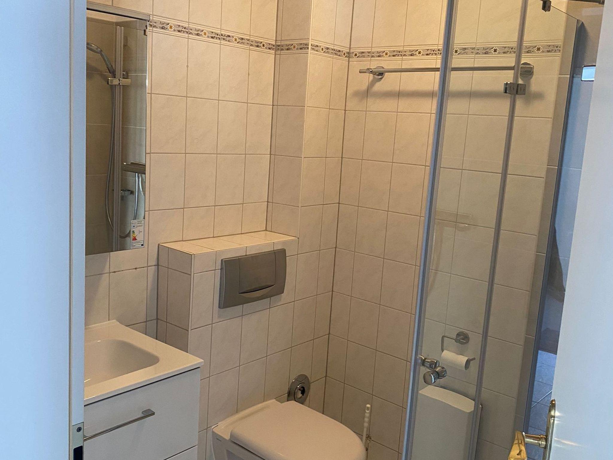 Das Appartement liegt im Erdgeschoss und umfasst einen kombinierten Wohn- und Schlafraum, einen separaten Schlafraum, eine komplett ausgestattete separate Küche und ein Badezimmer mit Dusche, WC und Waschbecken.