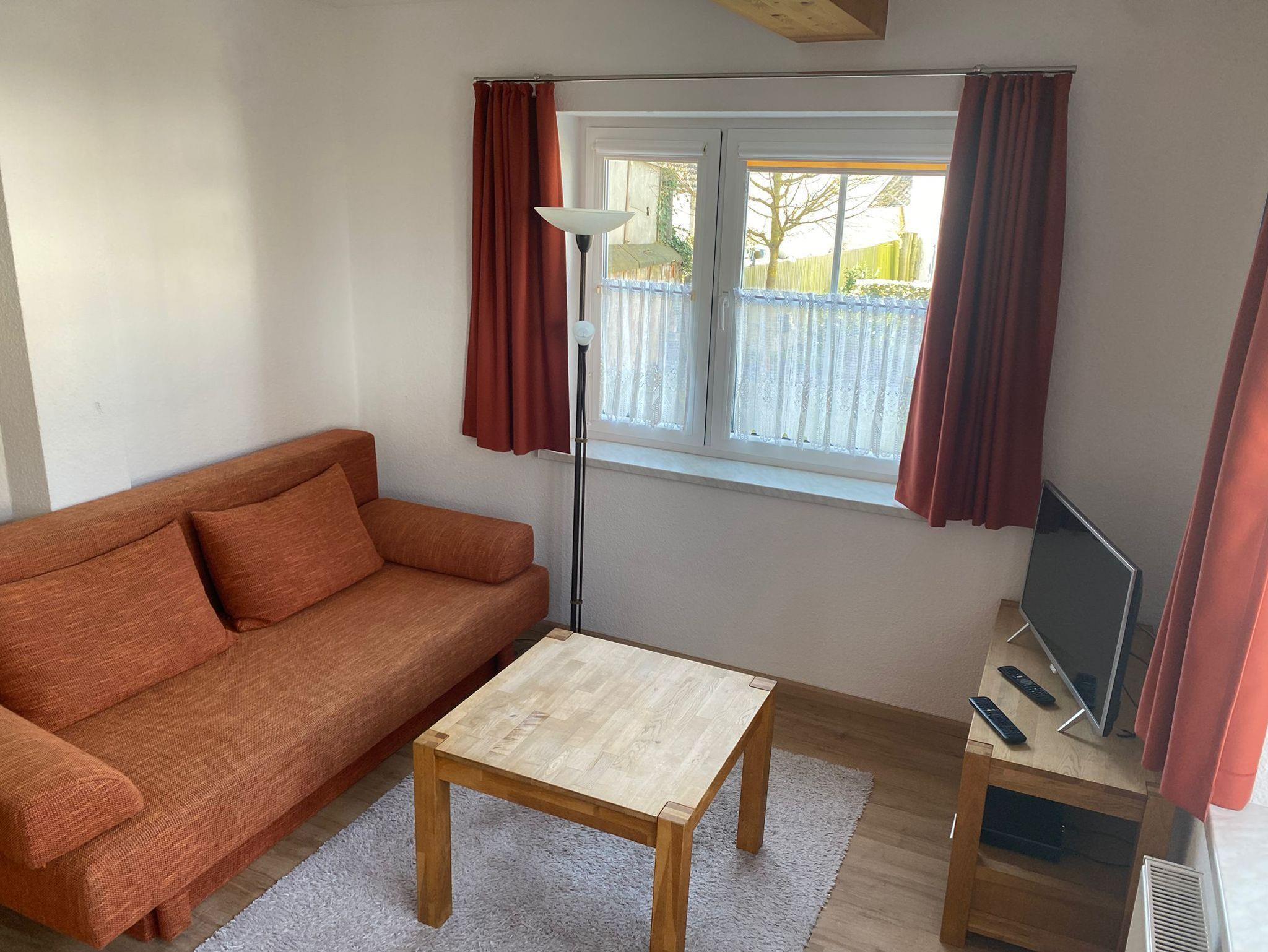 Das Appartement Strandsonne liegt im Erdgeschoss und umfasst einen kombinierten Wohn- und Schlafraum, einen separaten Schlafraum, eine komplett ausgestattete separate Küche und ein Badezimmer mit Dusche, WC und Waschbecken.
