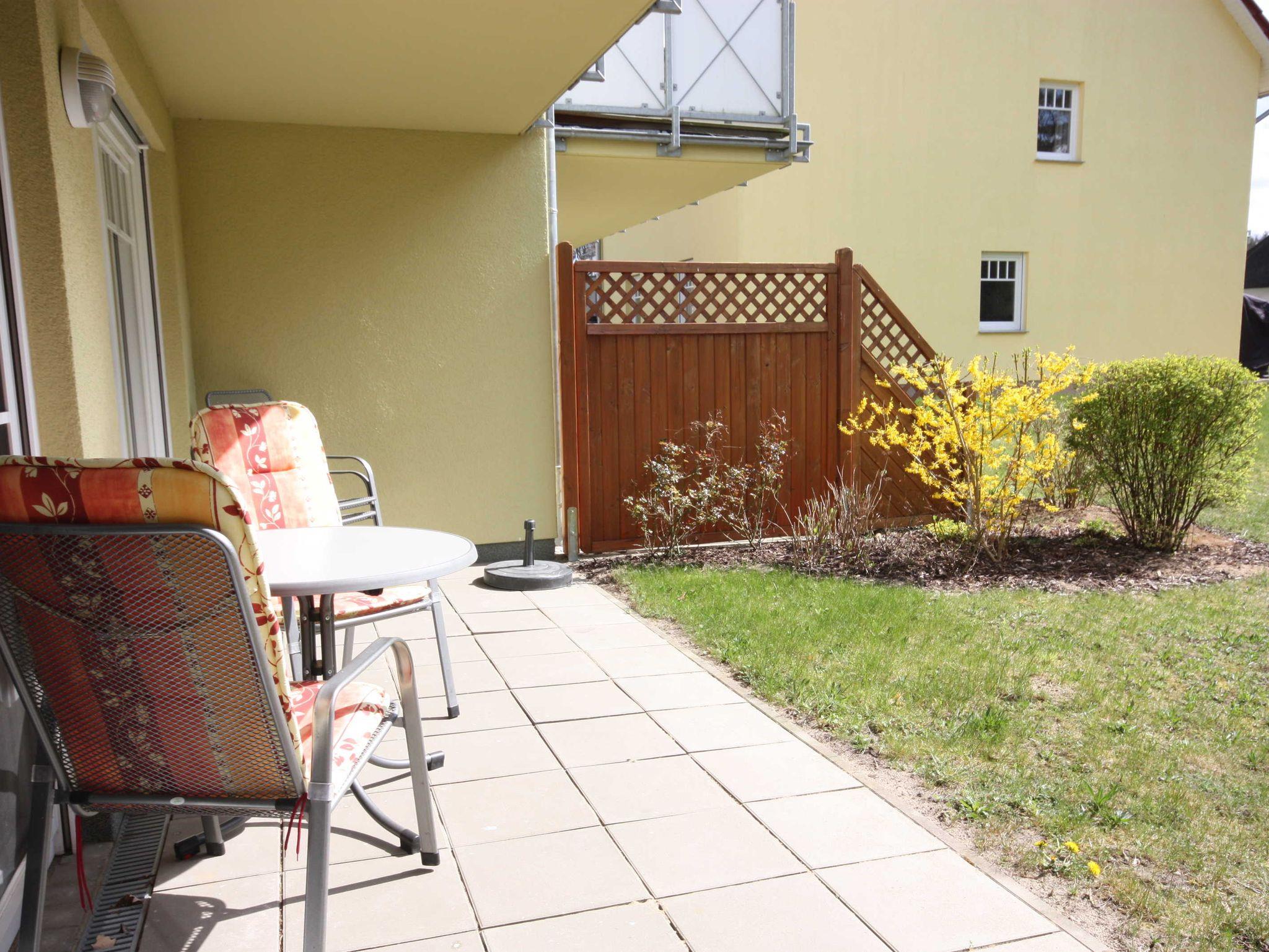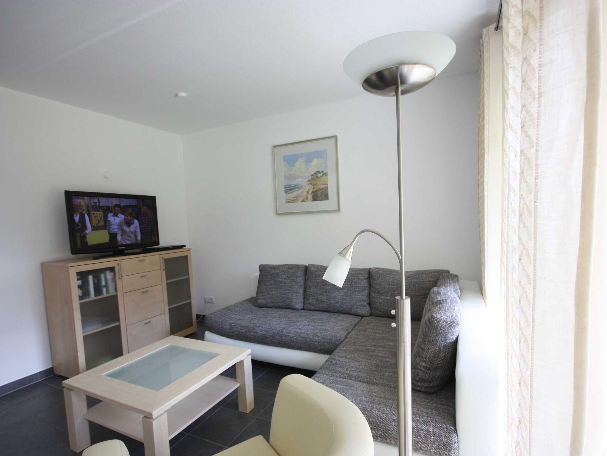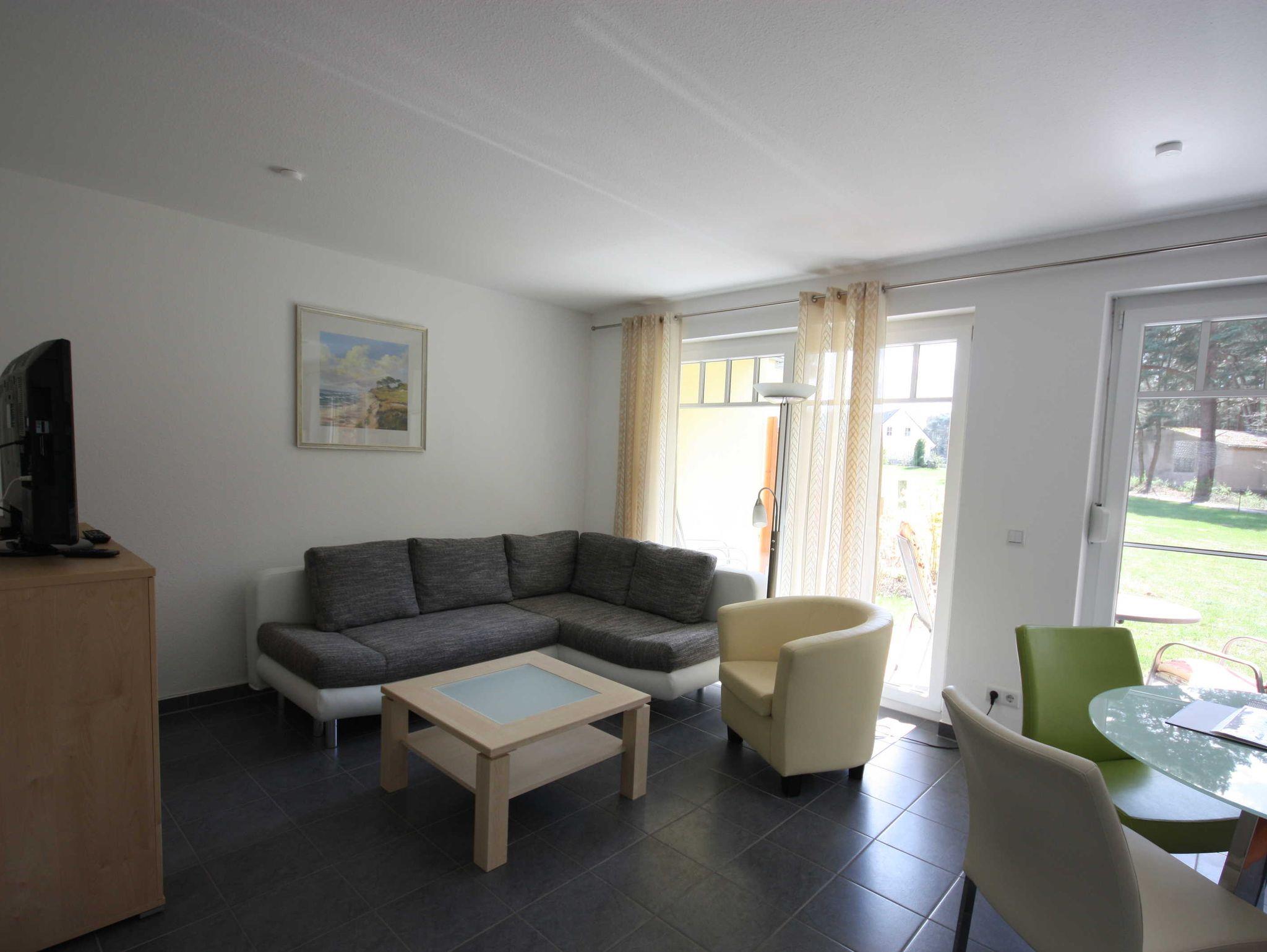 Moderne Ferienwohnung im Ferienpark Streckelsberg mit Südterrasse und Blick auf den Küstenwald, nur 10 Minuten vom Ostseestrand entfernt.