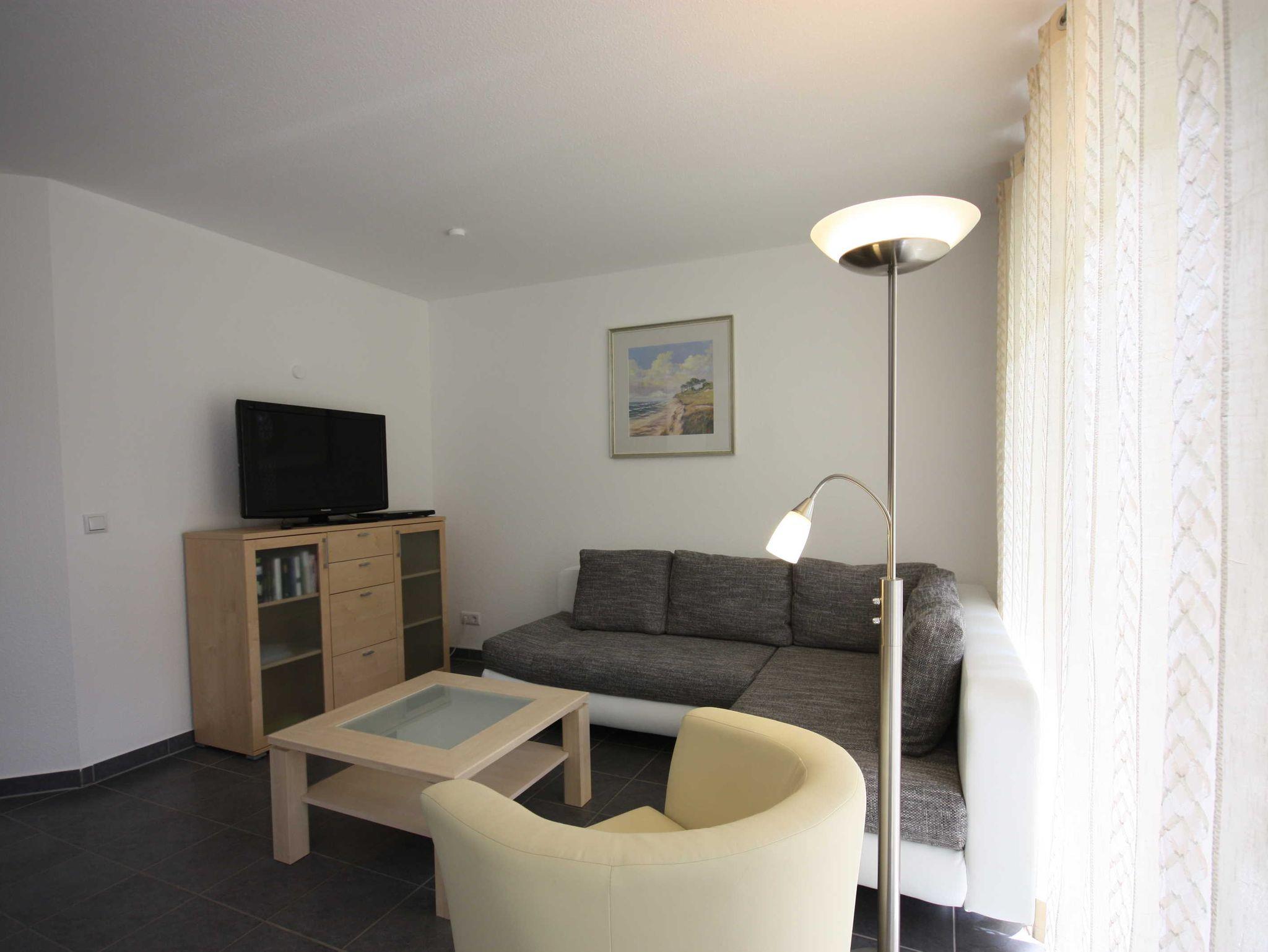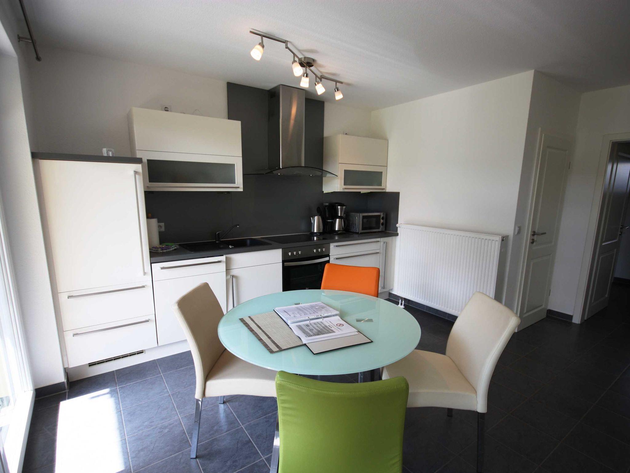 Die Ferienwohnung liegt im Erdgeschoß des Ferienhauses. Sie besteht aus Wohnzimmer, kompl. ausgestatteter Küche, Schlafzimmer und Tageslichtbad. Die Ausstattung der Einbauküche ist neuwertig funktional und qualitativ hochwertig unter anderem mit Toaster, Kaffeemaschine, Backofen, Kochfeld, Geschirrspüler, Gefrierfach. Große Süd-Terrasse mit Blick auf den Küstenwald, große Spielwiese.