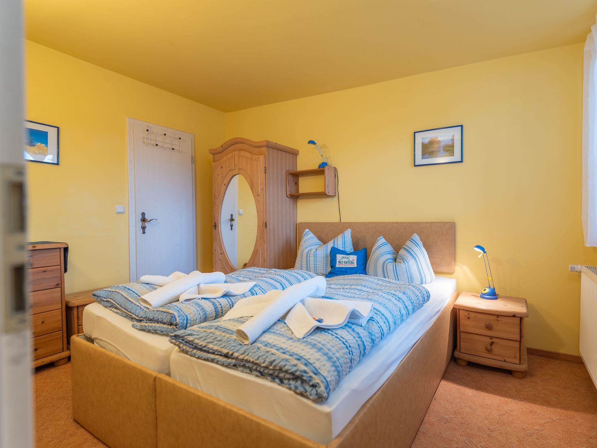 Willkommen in der Ferienwohnung 3 der 4 Kiefern, einer zweckmäßigen und hundefreundlichen Unterkunft auf 32 Quadratmetern im Erdgeschoss. Diese Wohnung bietet ausreichend Platz und Komfort für einen entspannten Aufenthalt.