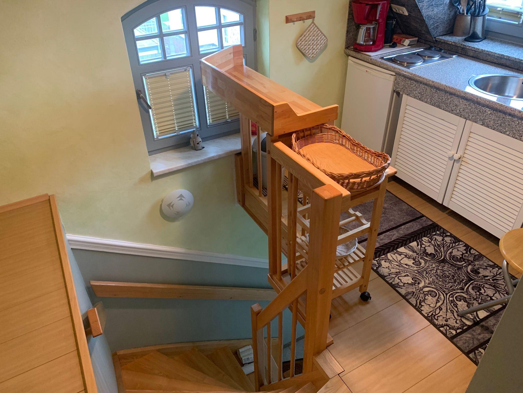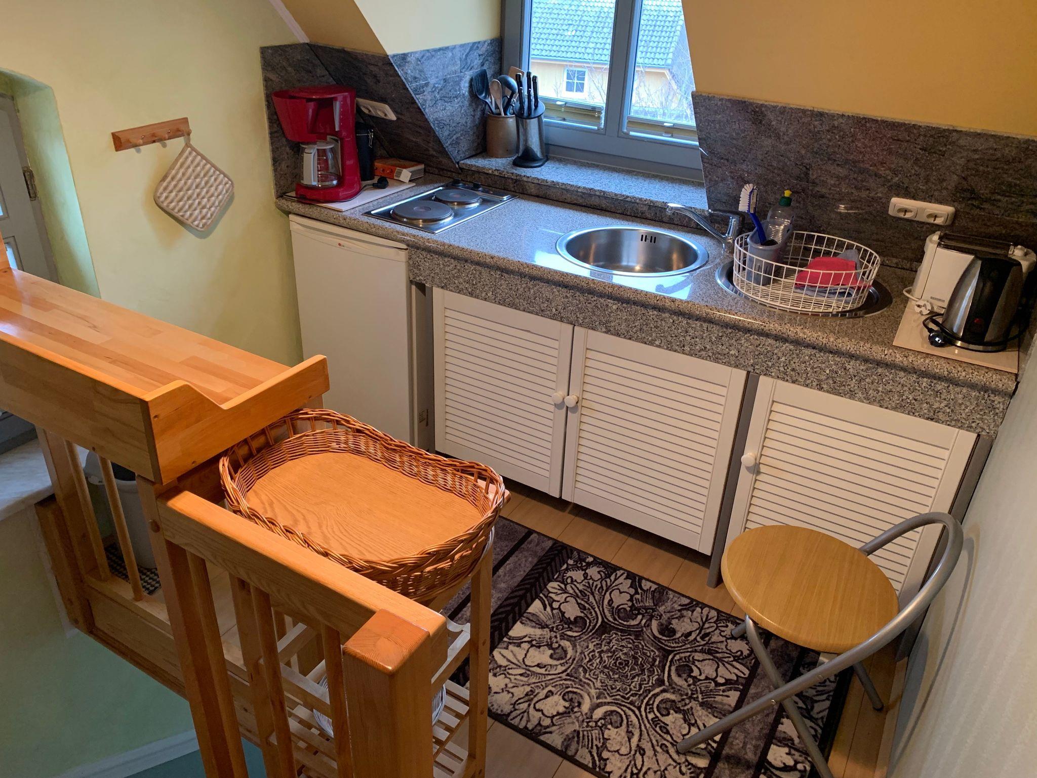 Die mit 45 m2 großzügig geschnittene Ferienwohnung verfügt über einen Wohn- und Essbereich. Außerdem stehen Ihnen ein Schlafzimmer und ein Badezimmer, Dusche und WC zur Verfügung. Die Wohnung ist ist über eine schmale Wendtreppe zu erreichen.