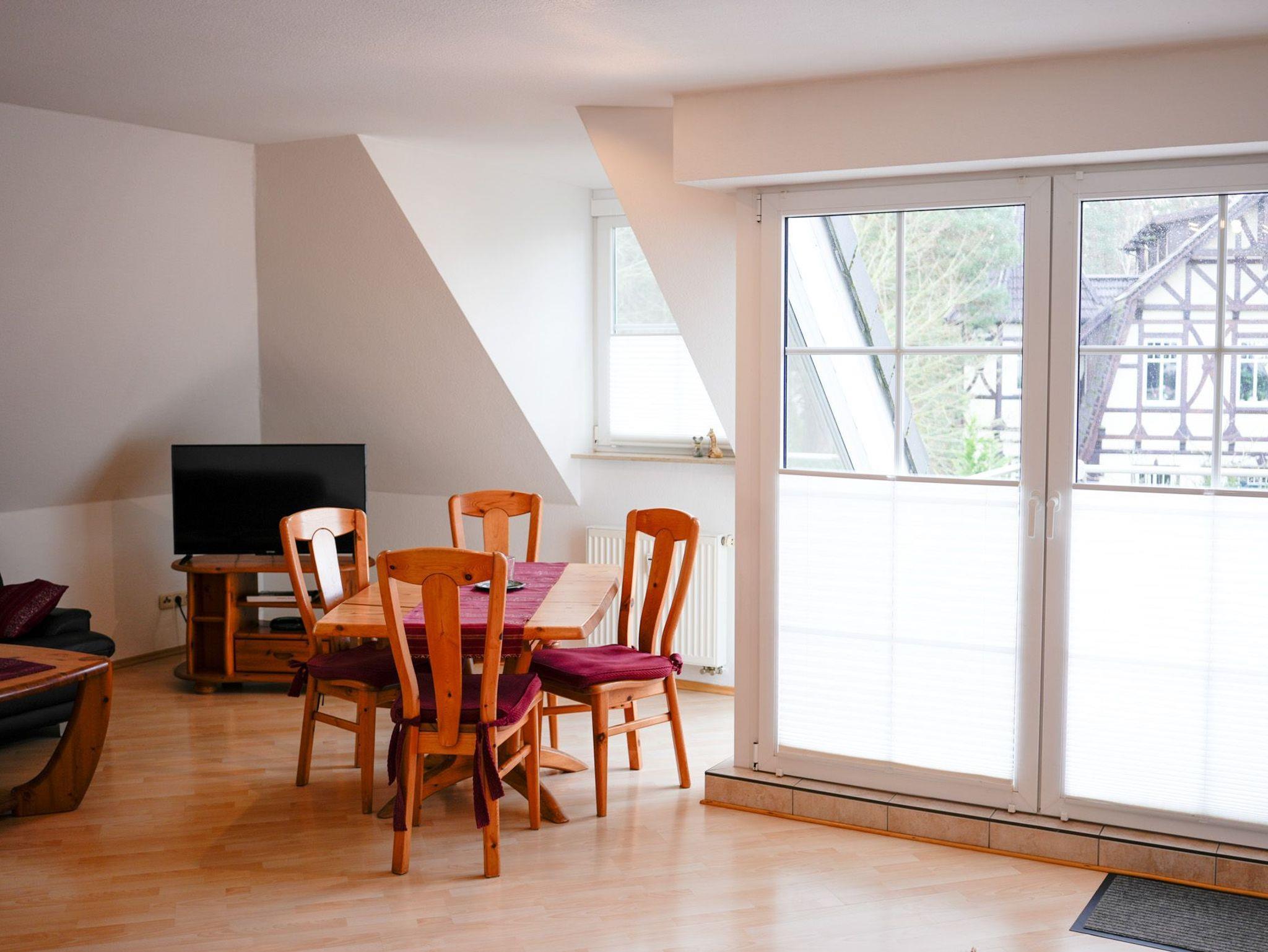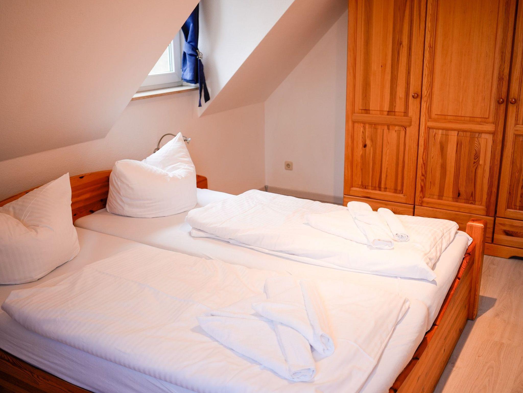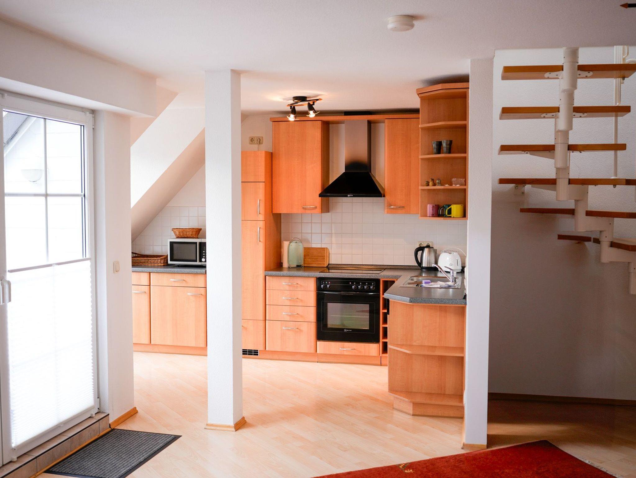 Die Fewo Gabriele ist hell, da sie nach Süden ausgerichtet und mit vielen Fenstern und einem Balkon ausgestattet ist. W-LAN / Internet ist kostenlos nutzbar.. In der unteren Ebene befinden sich eine voll ausgestattete Einbauküche, ein gemütlicher Wohn-/Essbereich, das untere Schlafzimmer mit Doppelbett und das Badezimmer mit Fußbodenheizung und Dusche. Mittels Holztreppe gelangt man in die Galerie. Dort befindet sich das zweite Schlafzimmer mit Doppelbett. Der Balkon ist mit Gartenmöbeln ausgestattet.