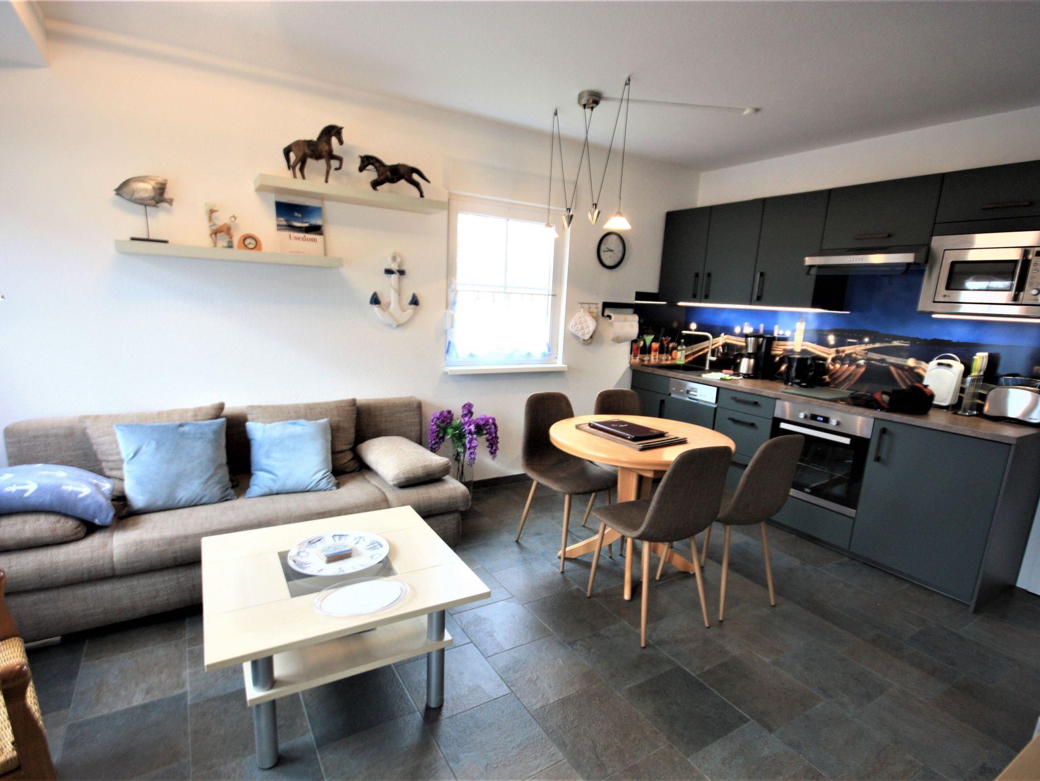 Mediterrane Ferienwohnung mit Kamin und Südwest-Terrasse, 200 m vom Sandstrand in Koserow entfernt.