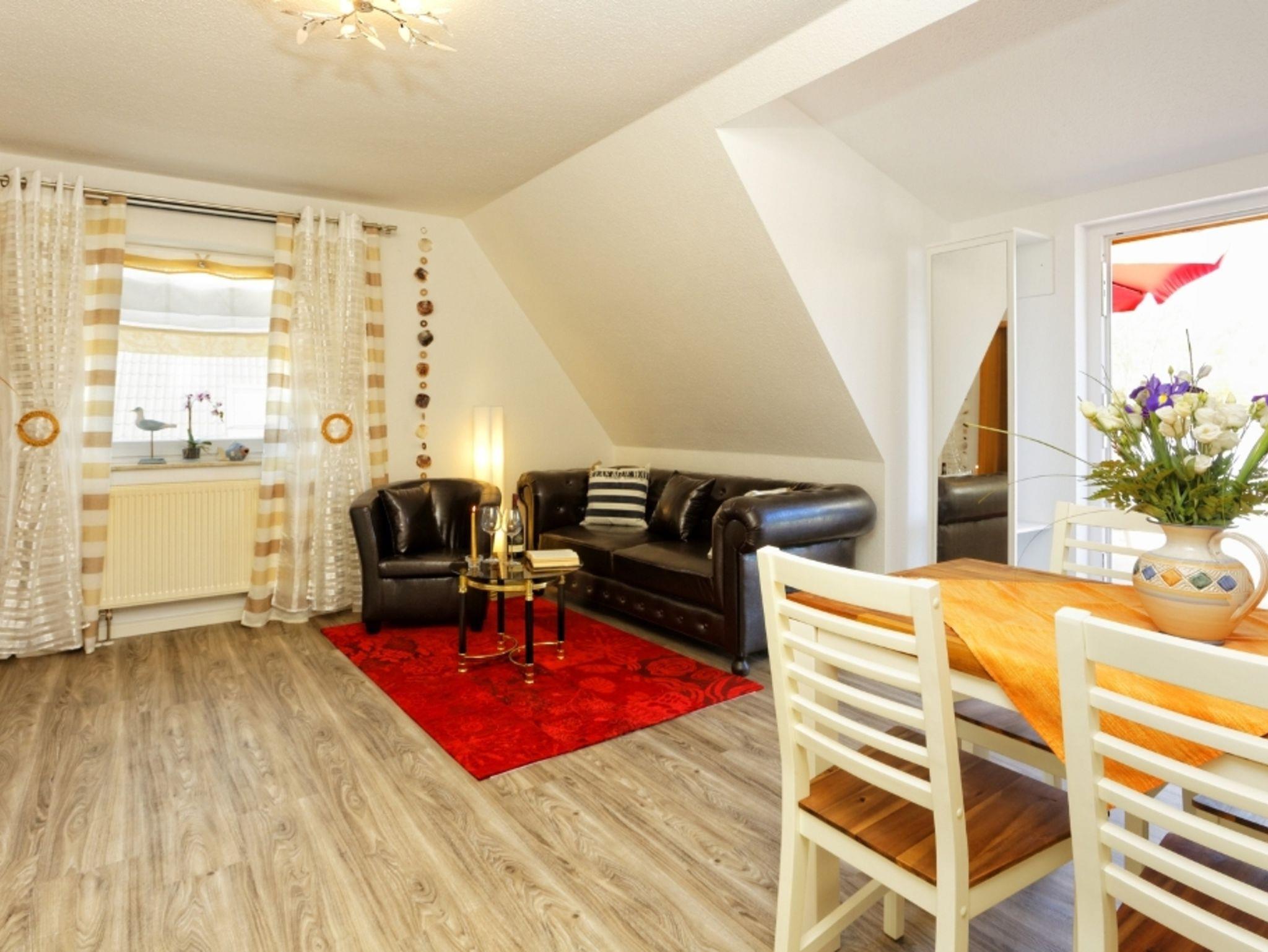 Die freundliche und helle Ferienwohnung befindet sich in einem Doppelhaus in der oberen Etage und verfügt über eine große Terrasse über die auch der Zugang erfolgt.