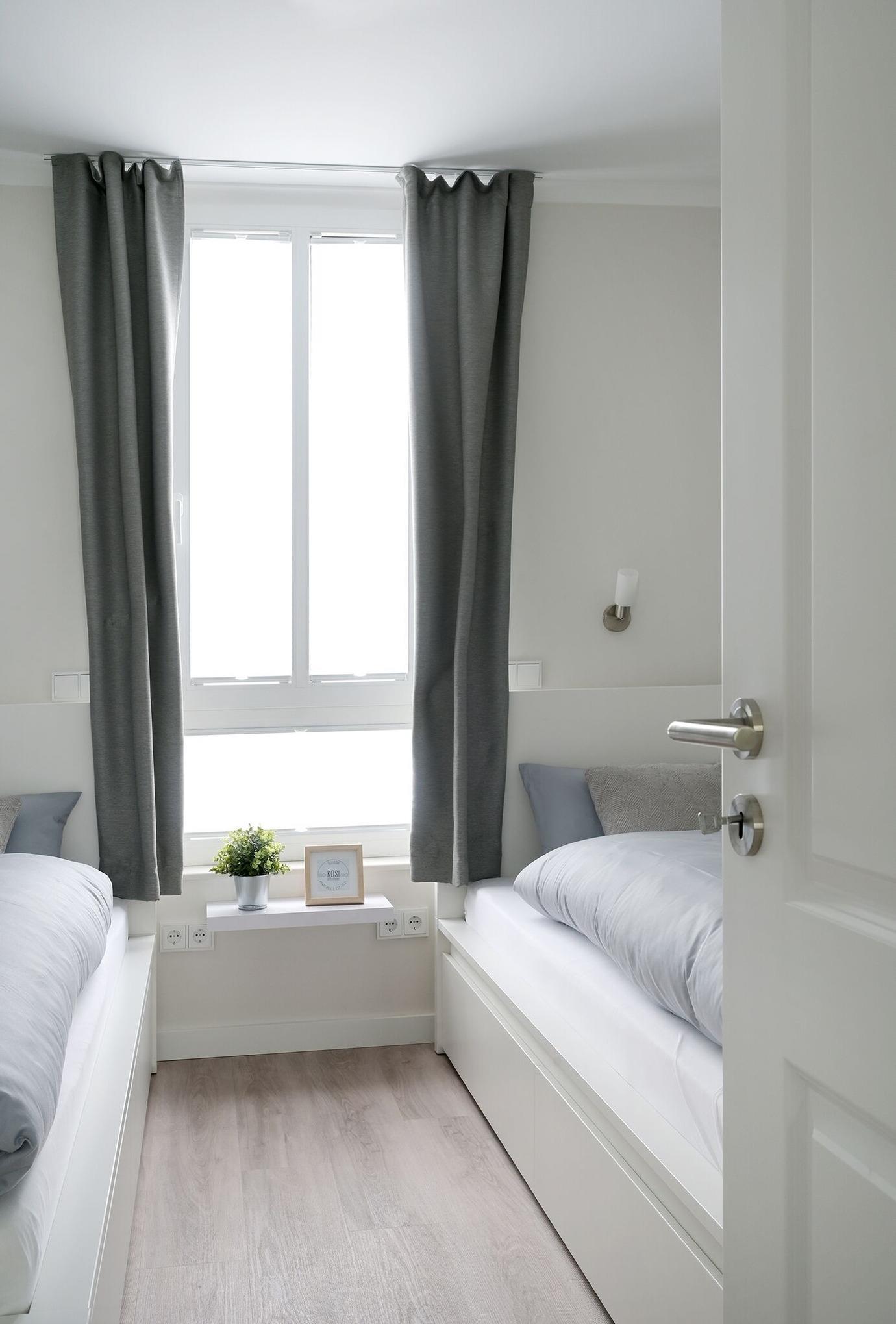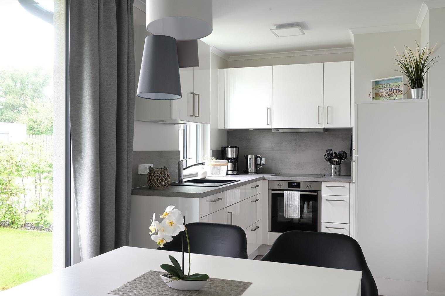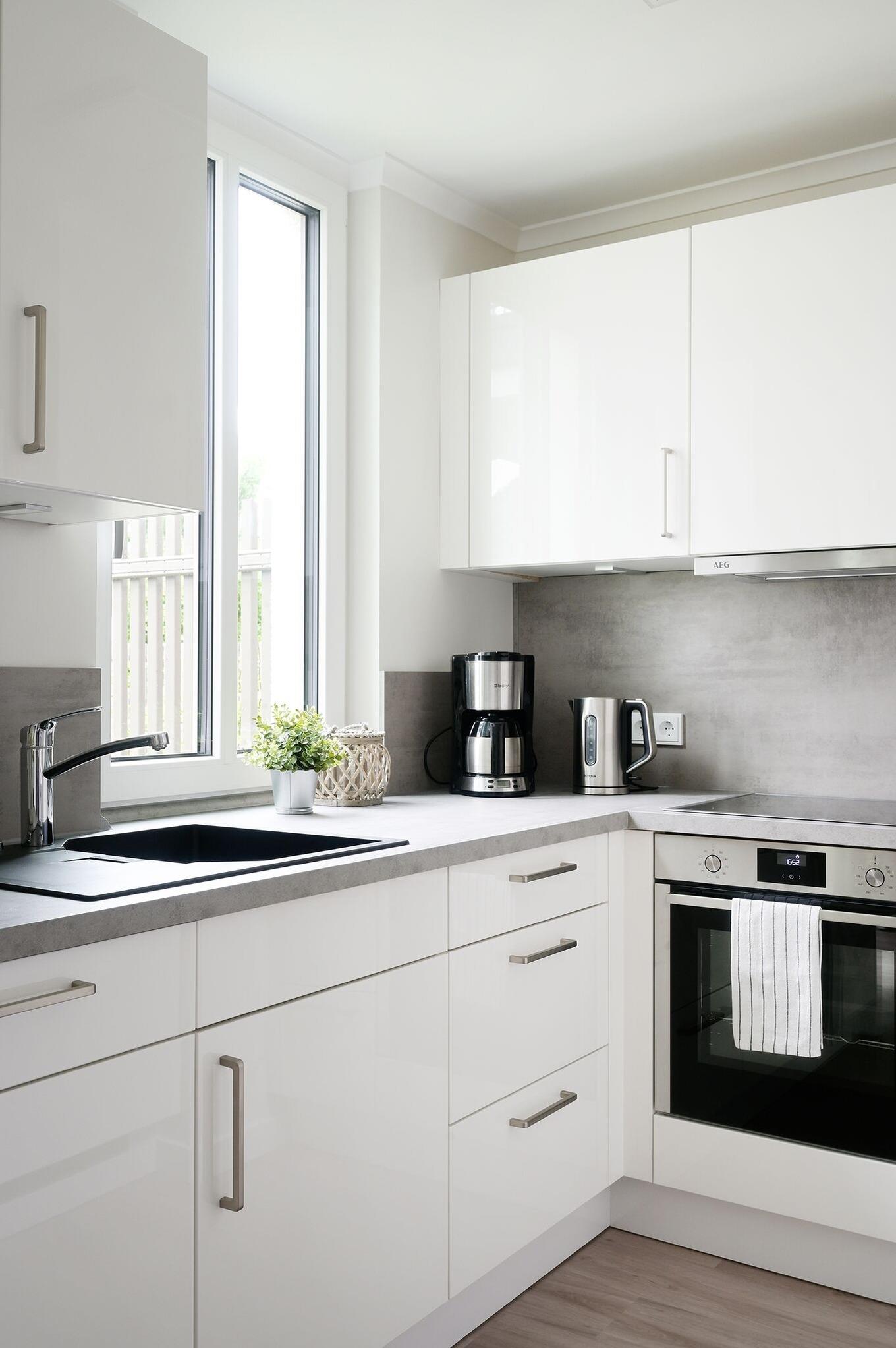 Die 3-Zimmerwohnung des vorderen Apartmenthauses bietet mit einer Fläche von 53 m² Aufenthaltsmöglichkeiten für 2-4 Personen. Eine offene, vollausgestattete Küche schafft hohe Transparenz zum Wohnraum und lädt ein für gemeinsame Zeit. Die Einrichtung der Wohnung fokussiert sich auf ein modernes und gleichzeitig gemütliches Interieur.