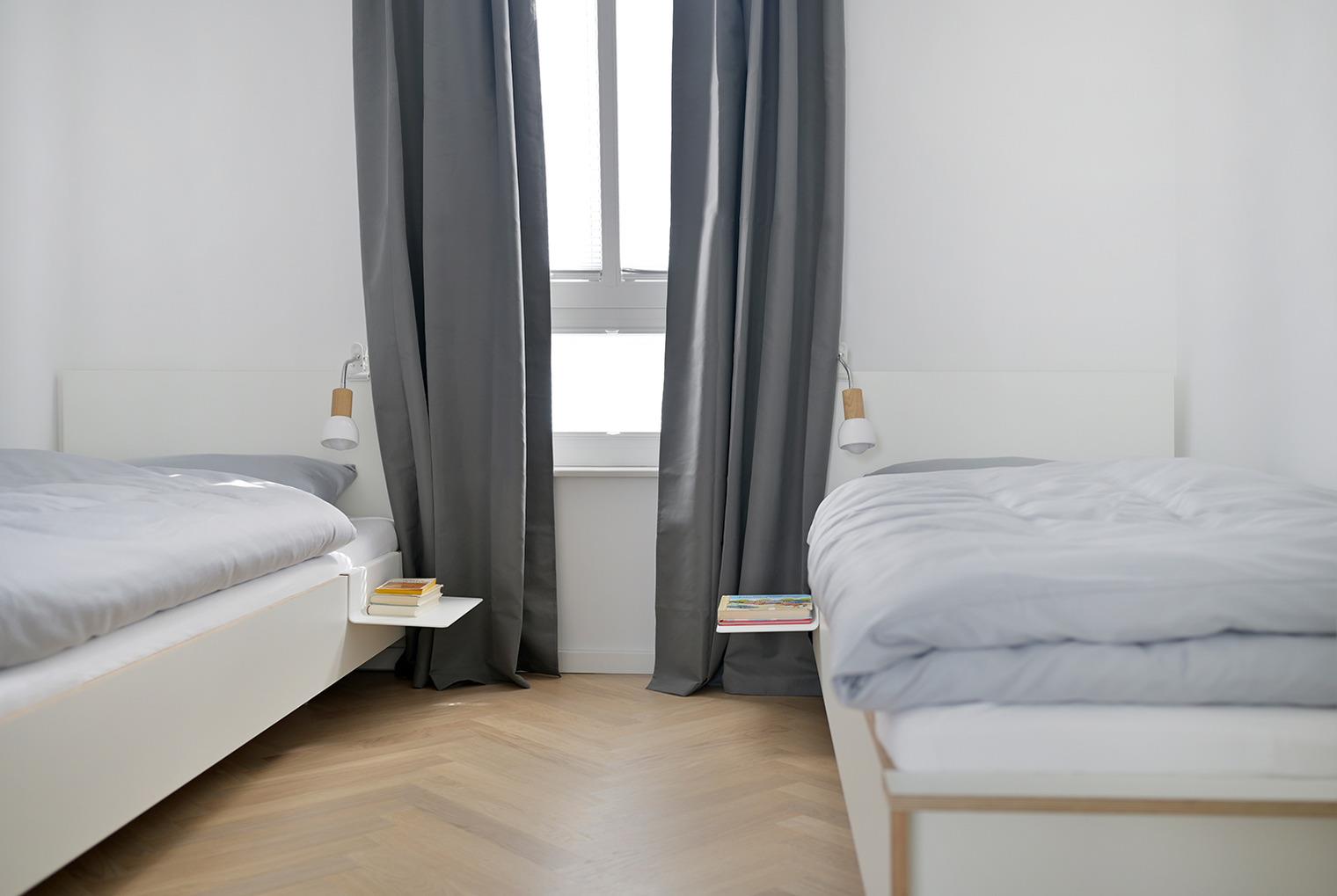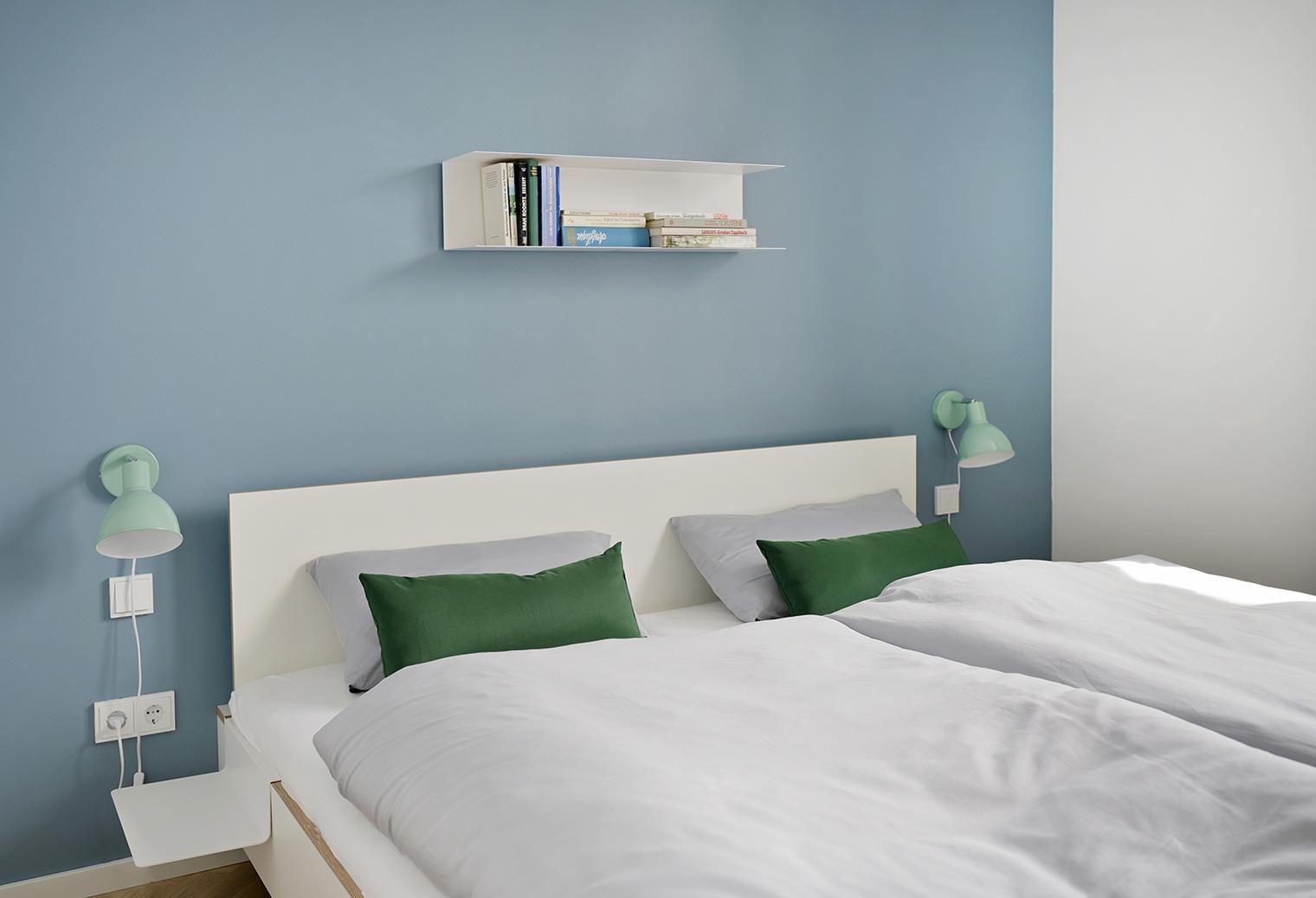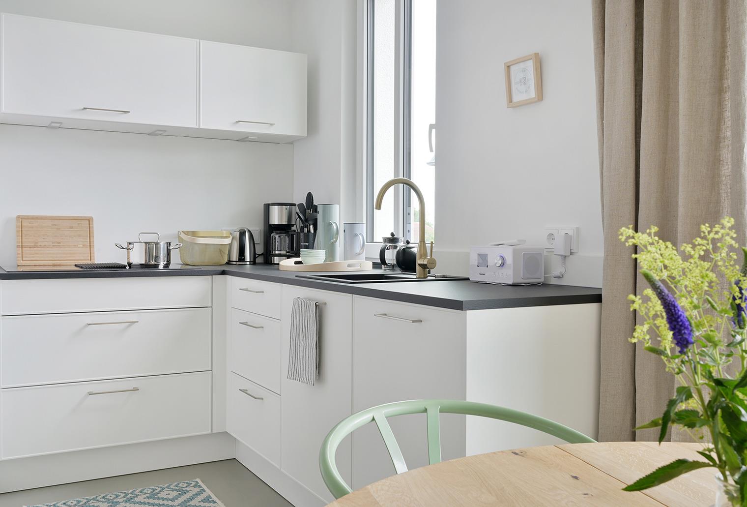 Die lichtdurchflutete[nbsp] 3-Zimmerwohnung des vorderen Apartmenthauses bietet mit einer Fläche von 53 m² Aufenthaltsmöglichkeiten für 2-4 Personen. Eine offene, vollausgestattete Küche schafft hohe Transparenz zum Wohnraum und lädt zu gemeinsamer zeit ein. Die Einrichtung der Wohnung fokussiert sich auf ein modernes und gleichzeitig gemütliches Interieur.