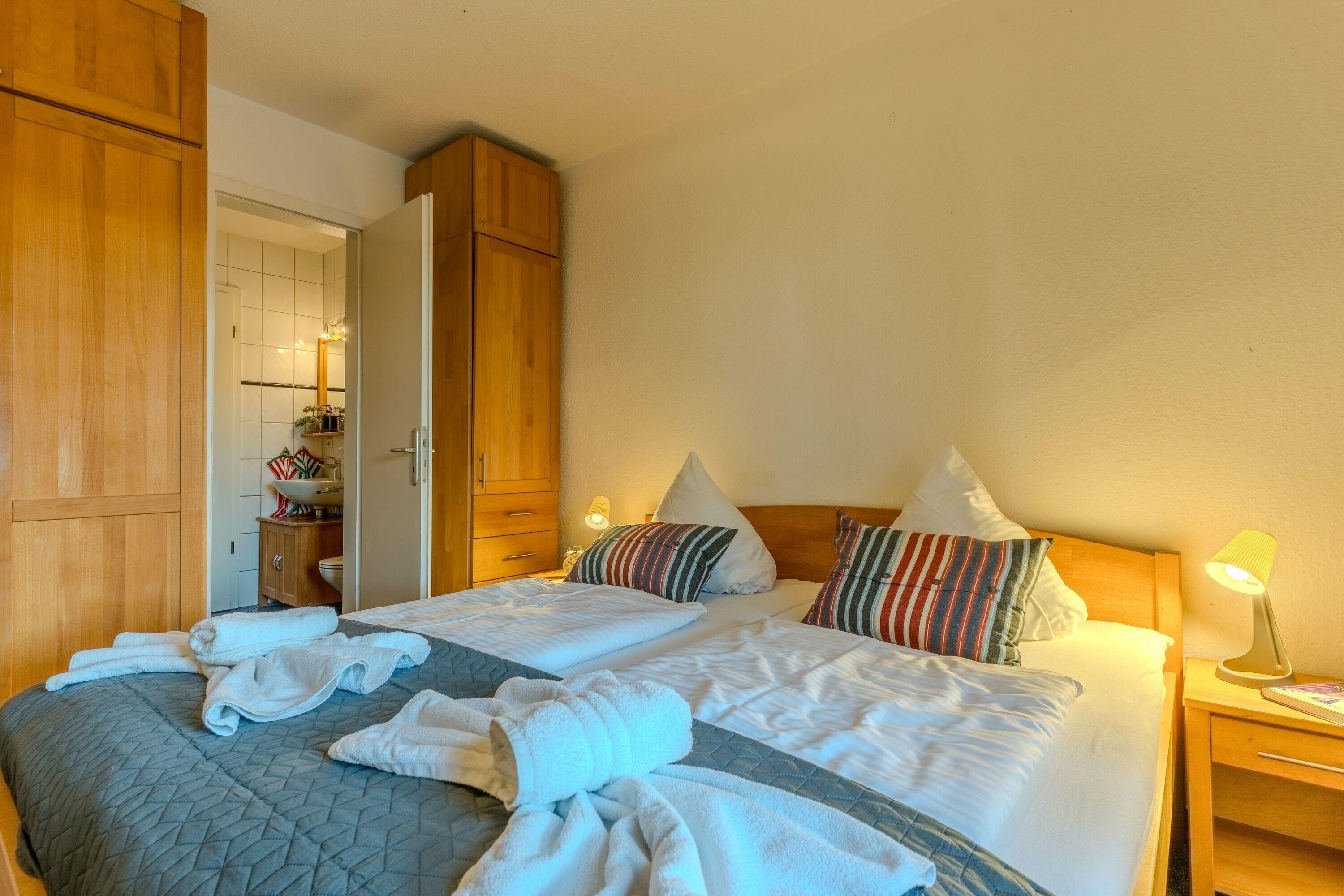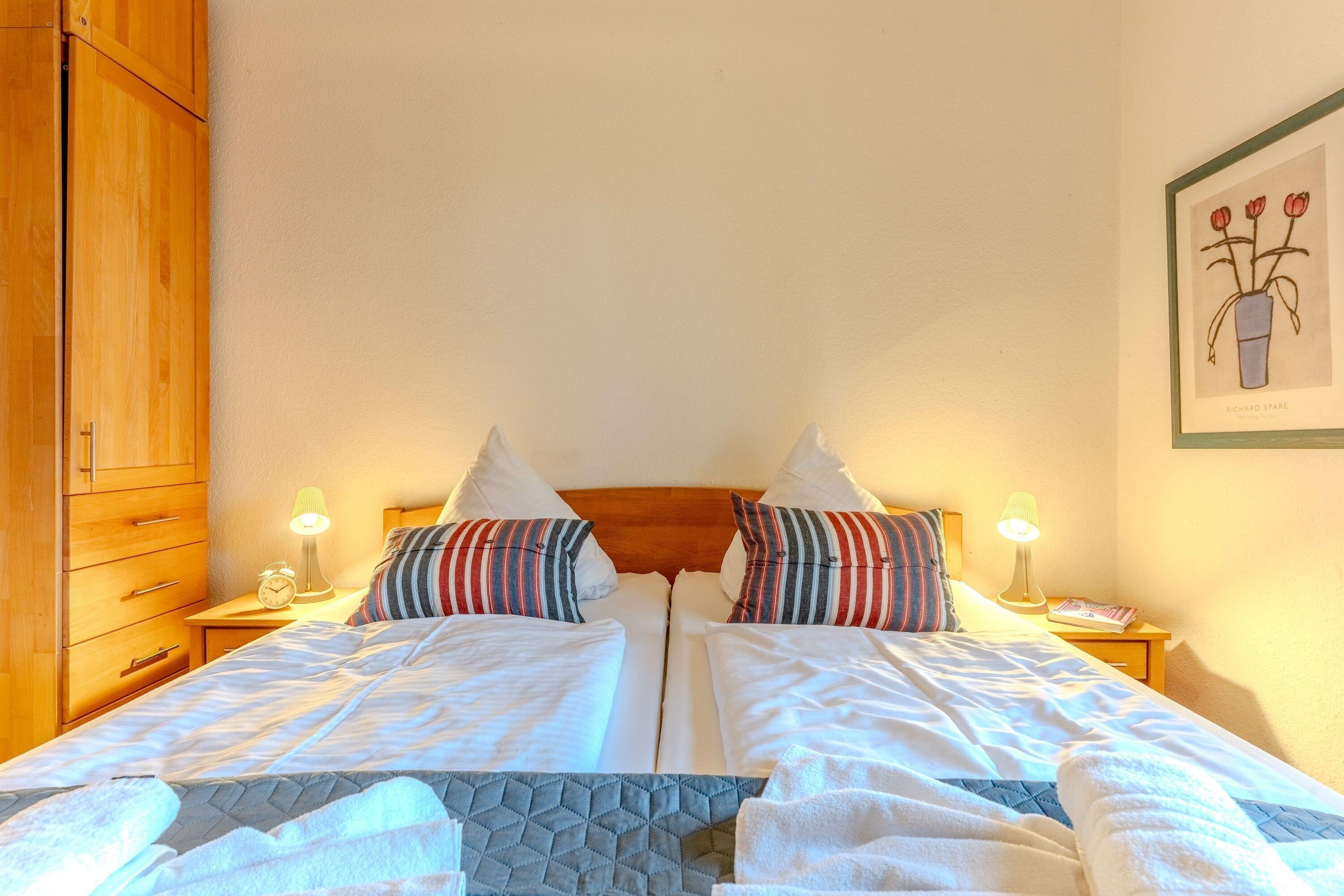 Dieses Appartement befindet sich im Erdgeschoss innerhalb der Ferienanlage 'Seeblick'. Es bietet einen Ausblick auf die Ostsee und die Seebrücke. Das Appartement verfügt über ein Badezimmer mit Dusche und WC, einen Wohnraum mit Fernseher, Radio und offener Küche, die mit einem Toaster, einer Kaffeemaschine und einem Kühlschrank ausgestattet ist. Von der möblierten Terrasse aus hat man ebenfalls einen Blick auf das Meer und die Seebrücke. Des Weiteren gibt es ein Schlafzimmer mit einem Doppelbett. Das Appartement ist zentralbeheizt und bietet Platz für max.3 Personen, da sich im Wohnraum eine Schlafcouch befindet. Die Buchung beinhaltet auch ein Set aus Bettwäsche und Handtüchern.