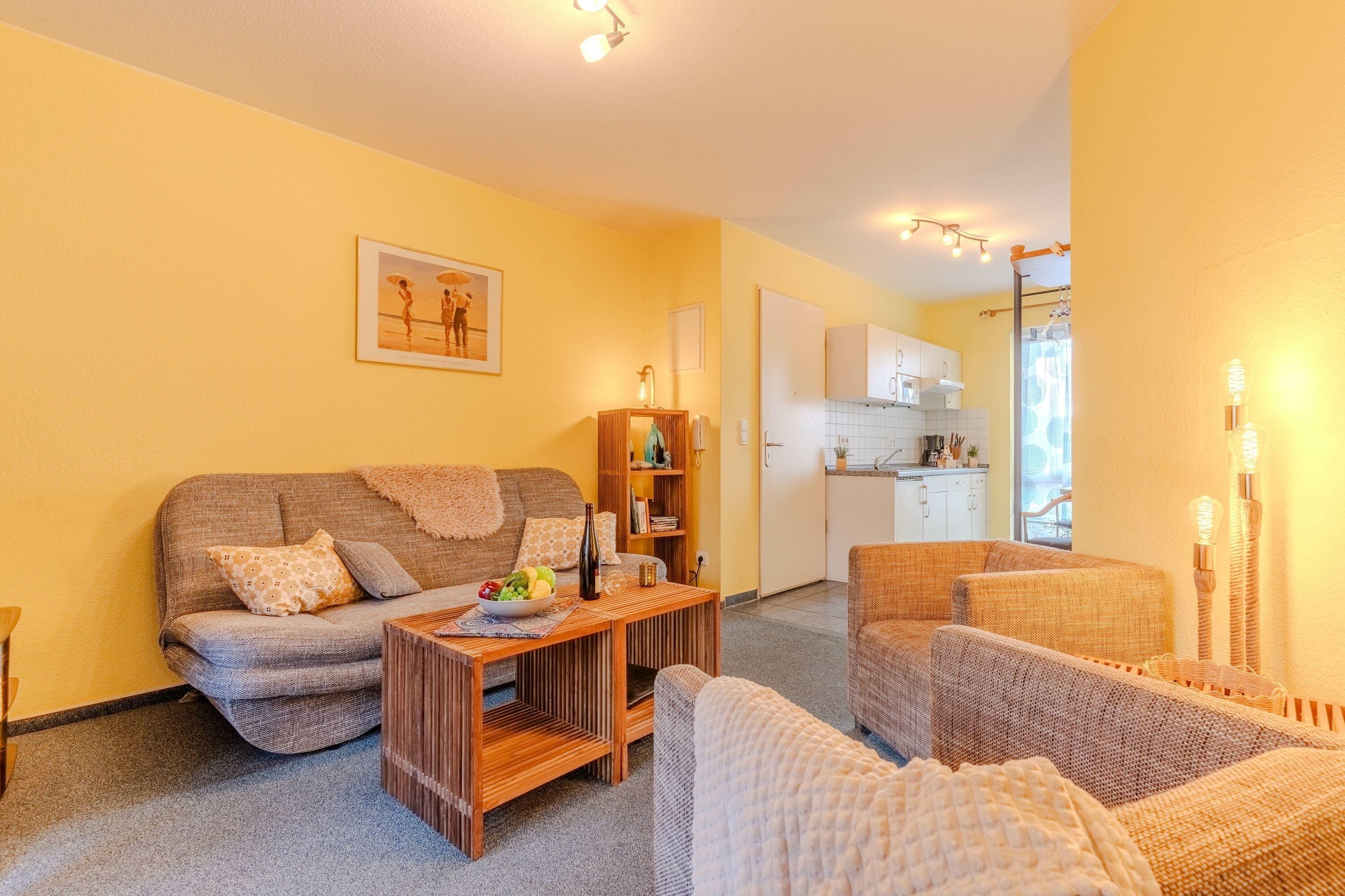 Dieses gemütliche, im Jahr 2026 neu renovierte und teilweise neu möblierte Nichtraucher-Appartement liegt im Erdgeschoss des Gästehauses „Seeblick“, einer kleinen, gepflegten Ferienanlage mit direkter Lage an Strand und Seebrücke. Die Wohnung bietet Platz für 2–3 Personen und verfügt über ein separates Schlafzimmer mit Doppelbett sowie einen Wohnbereich mit Schlafcouch.