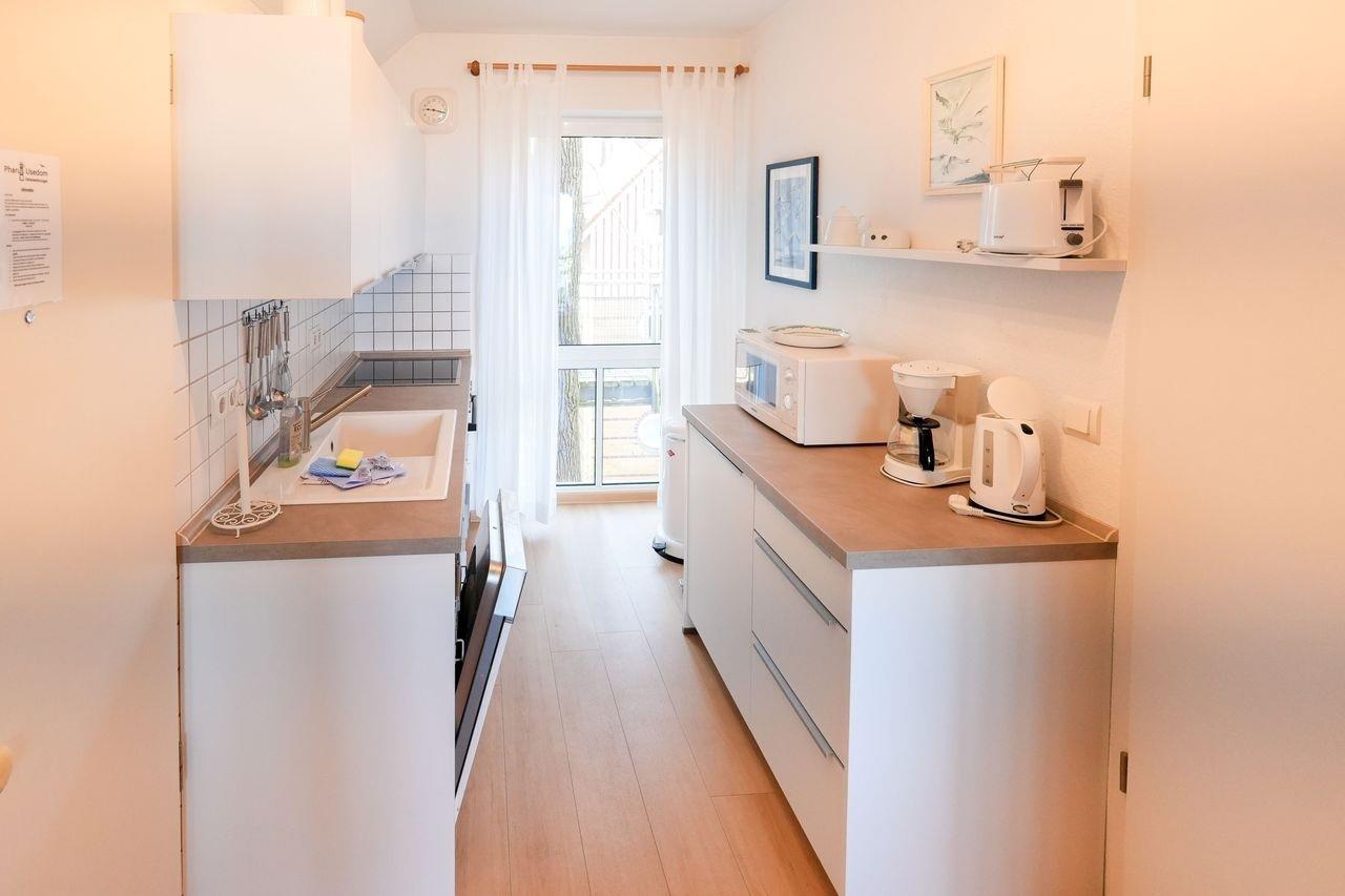 Die Ferienwohnung befindet sich im 2. Obergeschoss eines Gästehauses innerhalb der Ferienanlage "Seeblick". Es ist ein Nichtraucherappartement und bietet einen direkten Blick auf die Ostsee und die Seebrücke. Die Wohnung verfügt über ein Badezimmer mit Dusche und WC, einen Wohnraum mit TV und Radio, sowie eine offene Küche mit sehr guter Ausstattung (Backofen, Spülmaschine, Mikrowelle etc.). Vom Wohnraum aus gelangt man auf den möblierten Balkon mit direktem Blick auf die Ostsee. Die Wohnung hat ein Schlafzimmer und einen Schlafboden, der über eine Treppe erreichbar ist. Sie ist zentralbeheizt und bietet Platz für max.4 Personen. Bettwäsche und Handtücher sind im Buchungspreis enthalten.