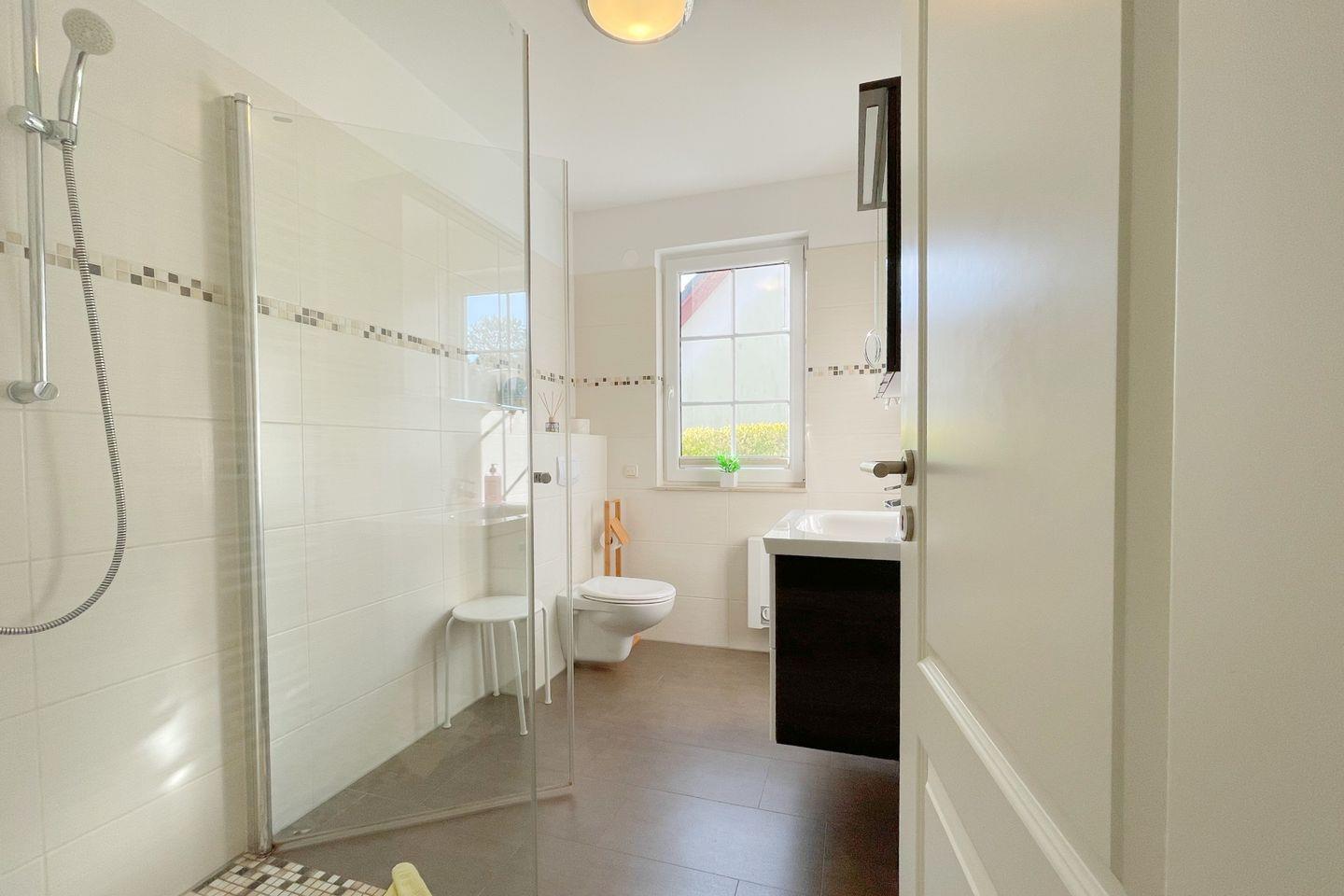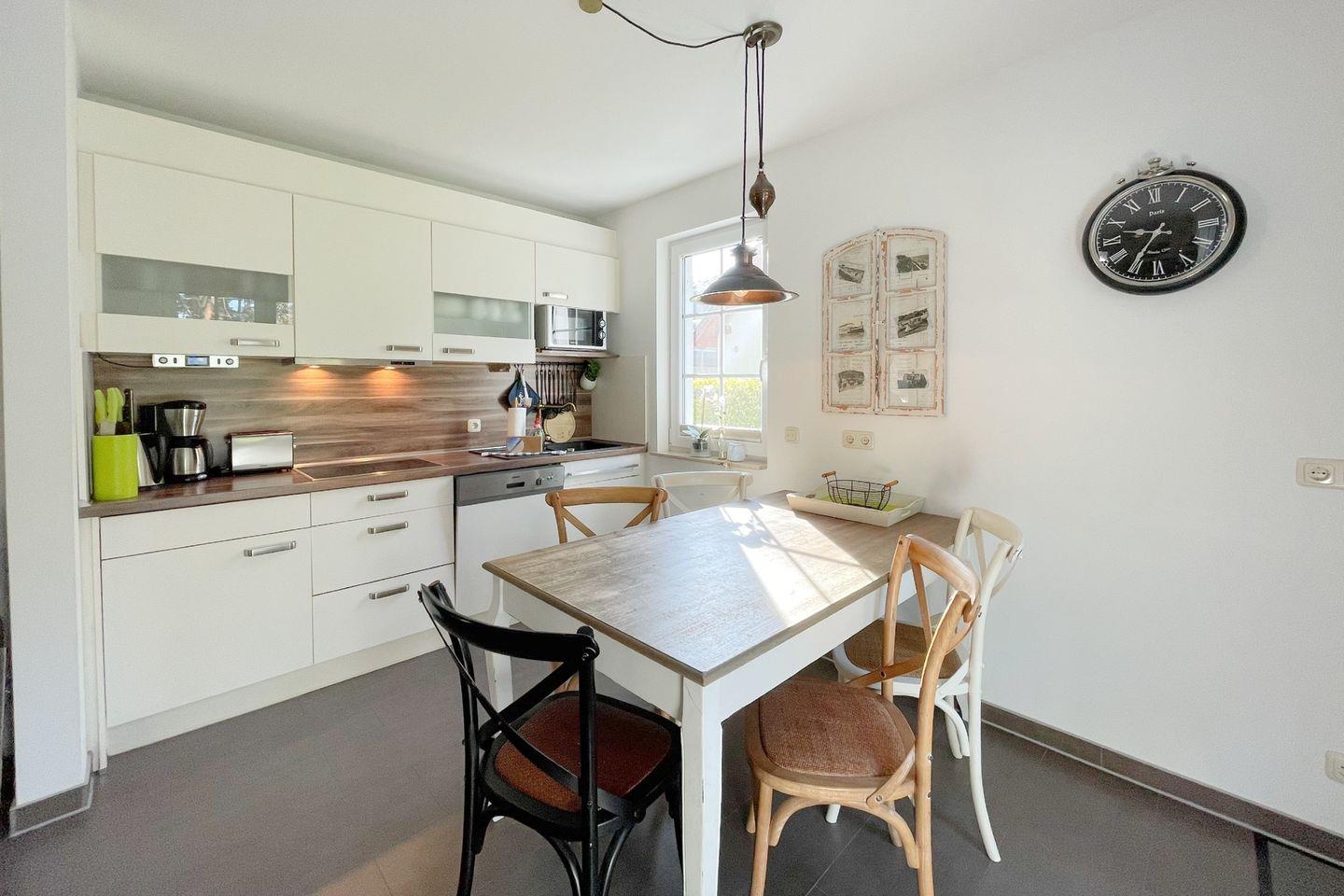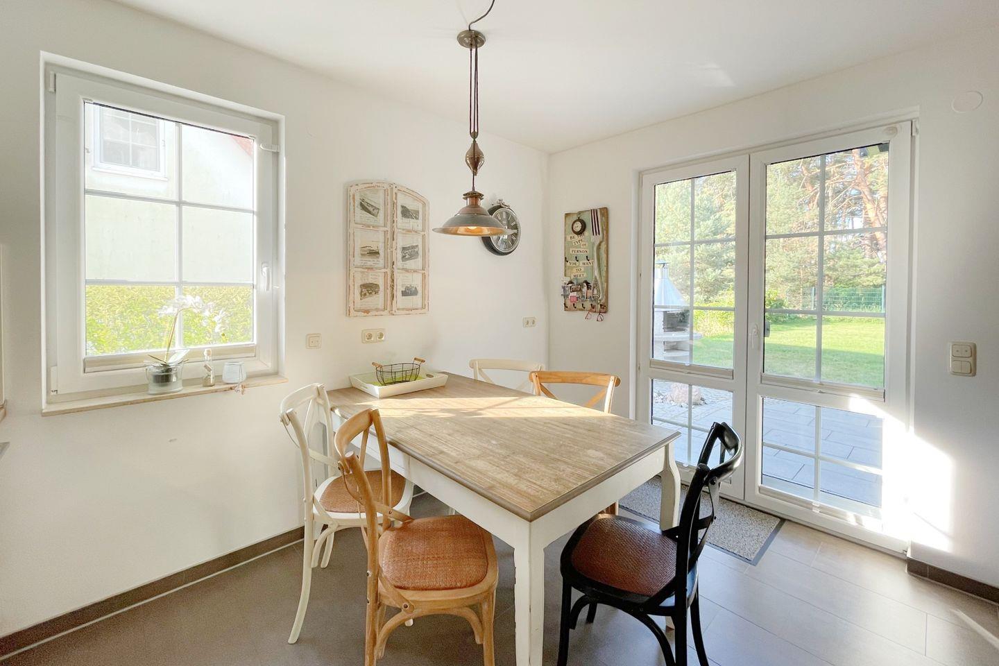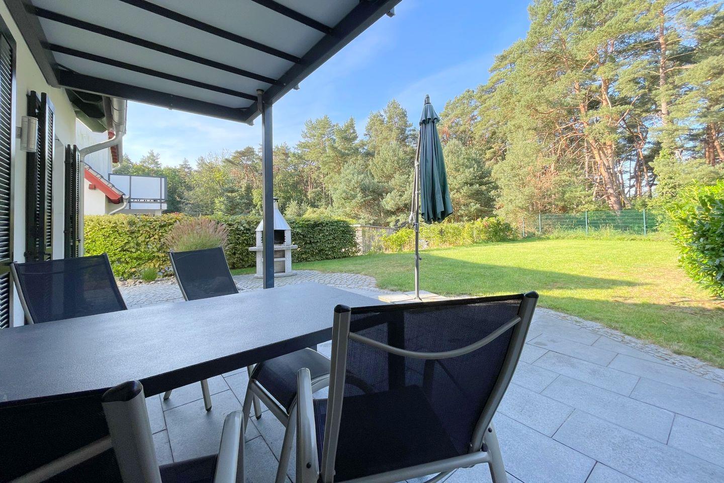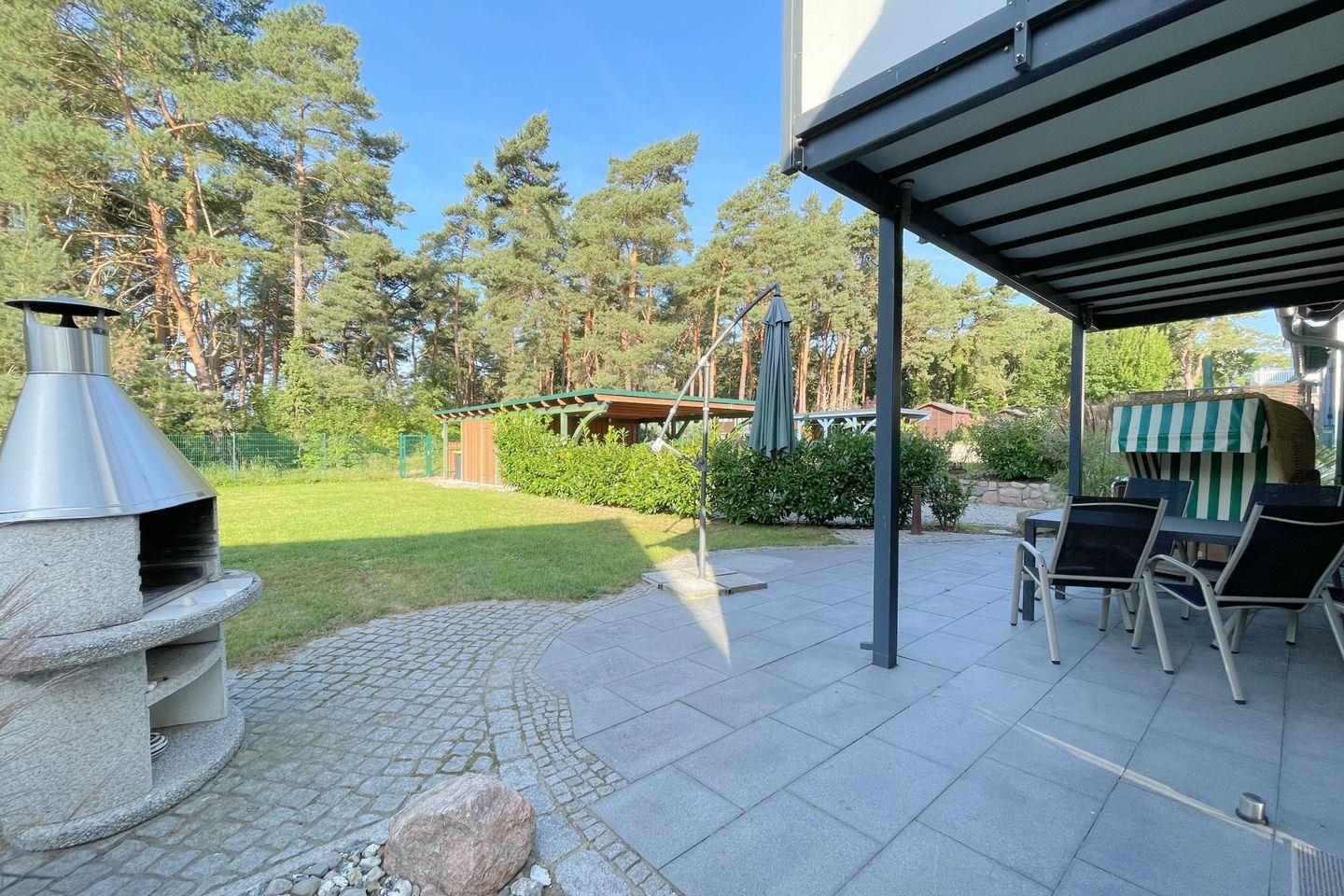 Ein weiteres Highlight der Unterkunft ist die kleine, gepflegte Gartenoase mit Gartenmöbeln und einem Grillplatz, der zum gemeinsamen Grillen und Entspannen im Freien einlädt. Genießen Sie Ihre Mahlzeiten im Freien und lassen Sie den Tag bei einem Glas Wein ausklingen, während die Natur Sie umgibt. Abgerundet wird die Ausstattung durch eine moderne, bodengleiche Dusche im gut ausgestatteten Badezimmer, wo Sie nach einem Tag an der Ostsee wohlverdiente Erholung finden.