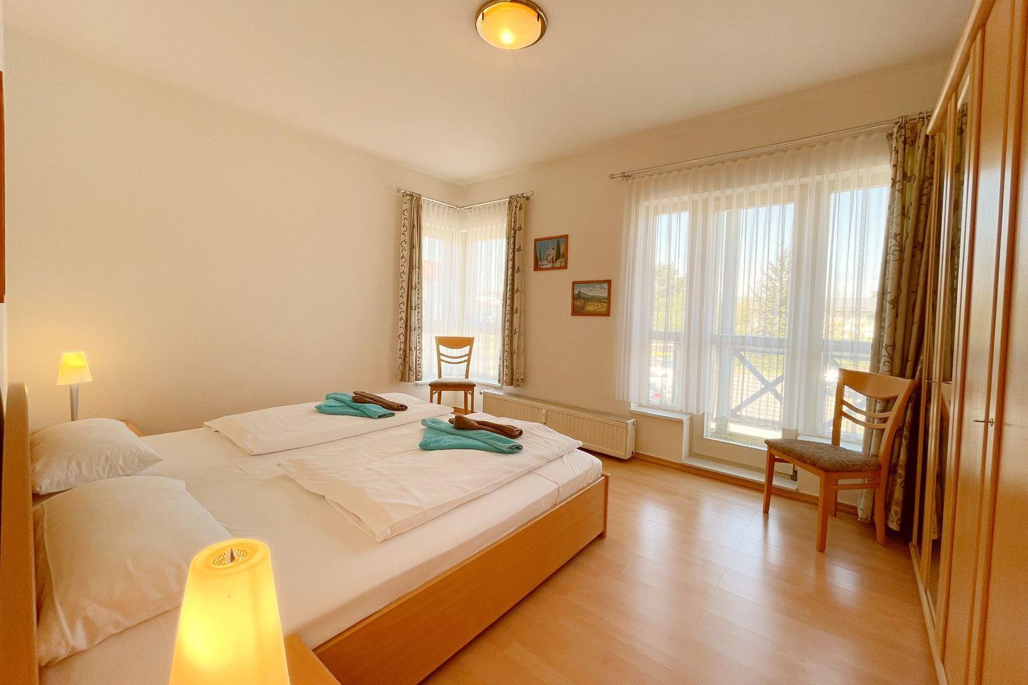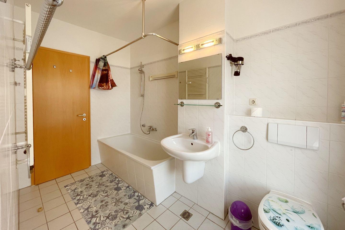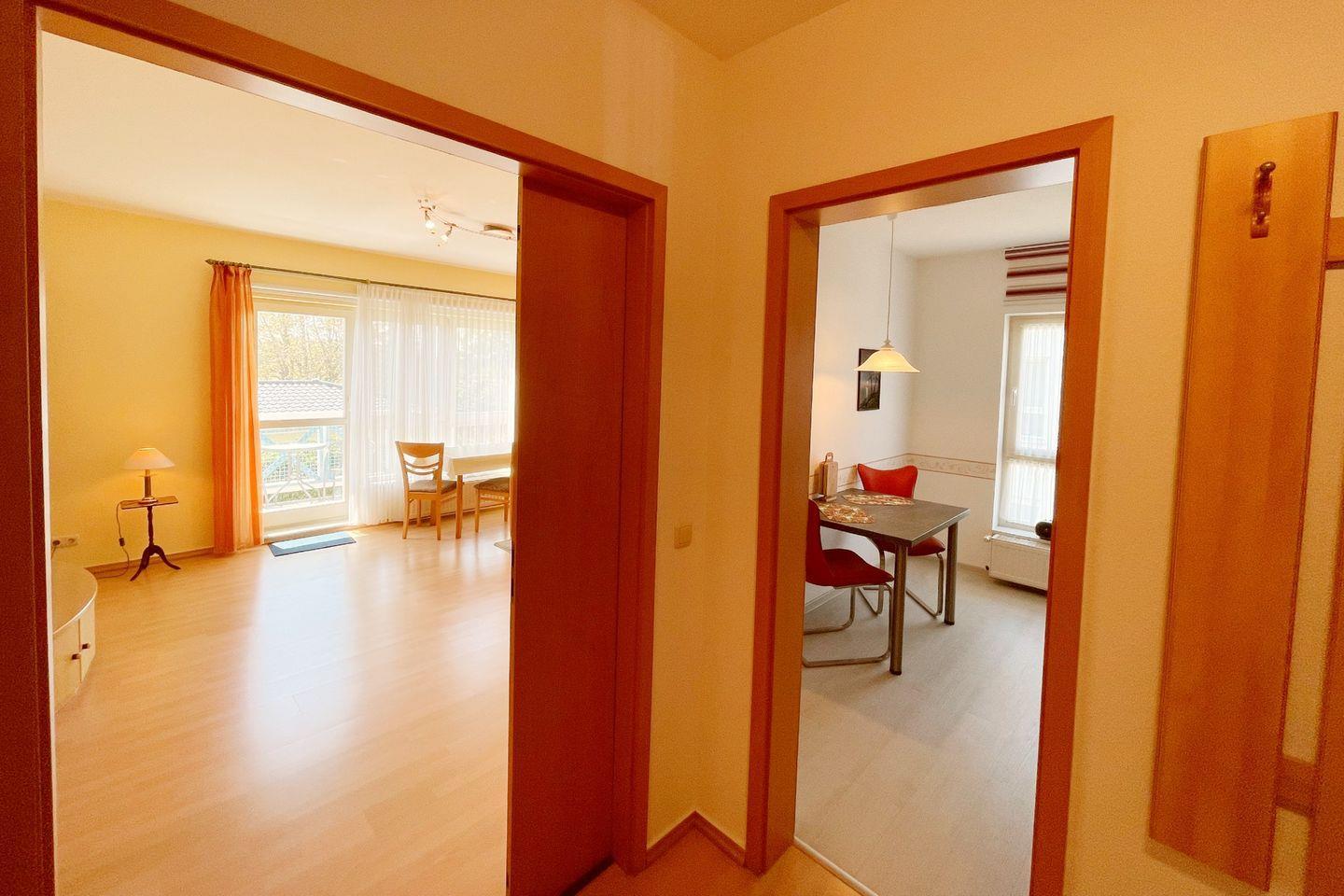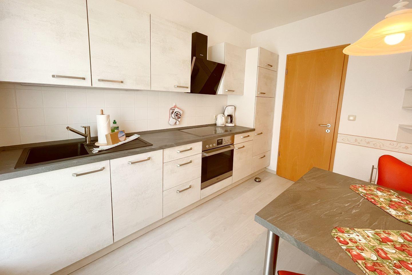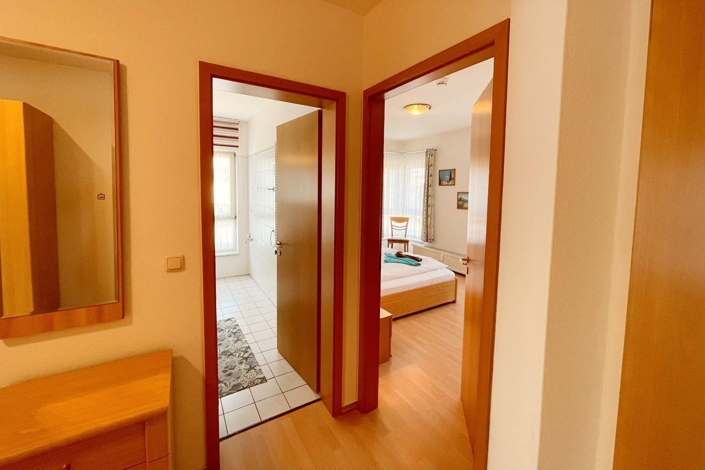 Die Wohnung verfügt über ein komfortables Schlafzimmer sowie ein helles Wohnzimmer, das mit einem gemütlichen Sofa und einem Esstisch ausgestattet ist. Hier können Sie nach einem Tag am Strand entspannen oder gemeinsam gesellige Abende verbringen. Die voll ausgestattete, abgeschlossene Küche bietet alles, was Sie benötigen, um Ihre Lieblingsgerichte zuzubereiten, darunter eine Cerankochfläche, einen Backofen und eine Spülmaschine. Die beiden Balkone laden dazu ein, die frische Ostseeluft zu genießen und den Tag bei einem guten Glas Wein ausklingen zu lassen.