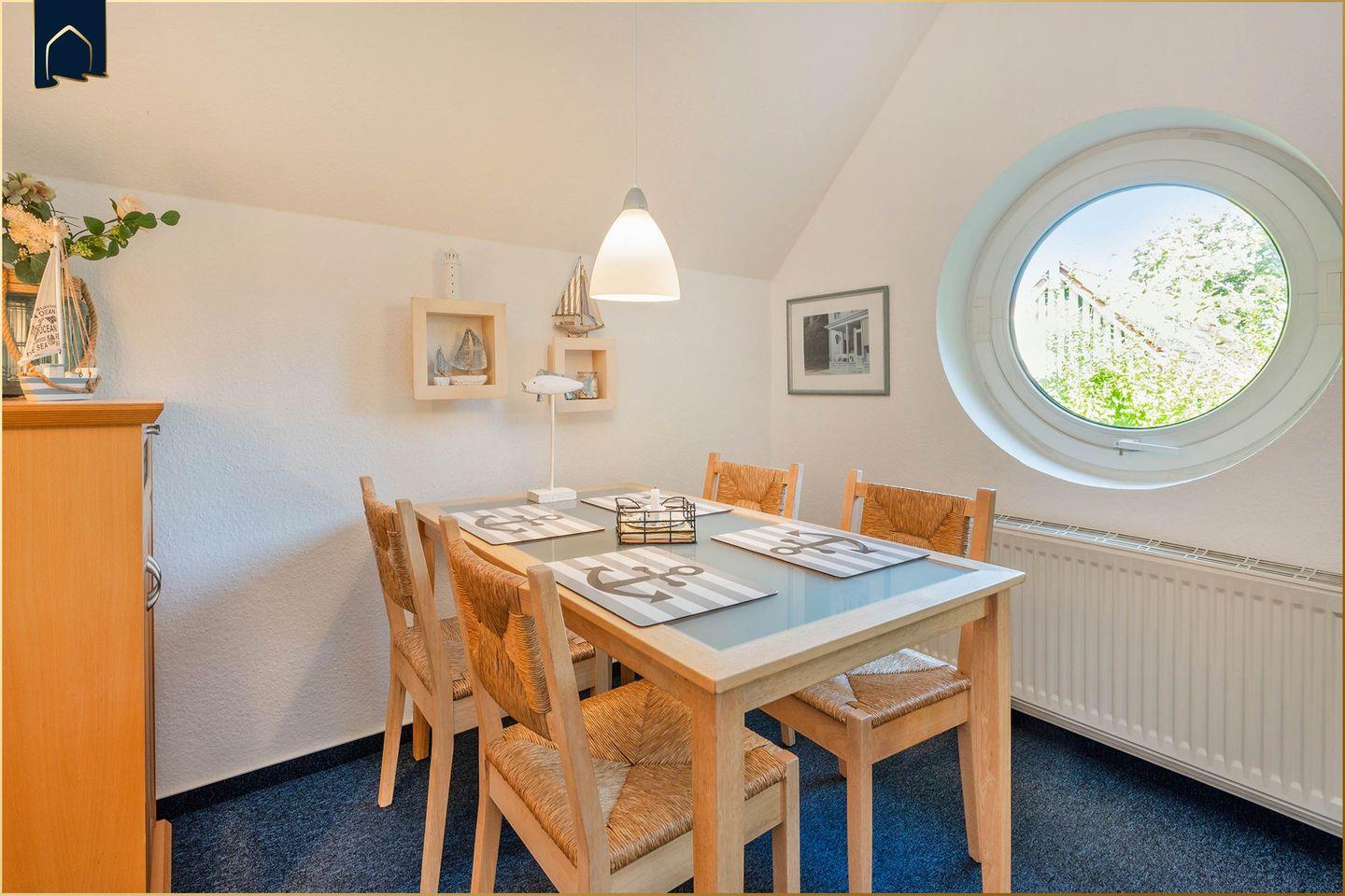 Im Essbereich mit Esstisch und bequemen Stühlen genießt du gemeinsame Mahlzeiten oder spielst mitgebrachte Gesellschaftsspiele. Für gemütliche Abende stehen außerdem Bücher und ein Radio zur Verfügung. Dank kostenfreiem WLAN bleibst du auch im Urlaub online. Die gesamte Wohnung ist eine Nichtraucherunterkunft und ideal für Paare oder kleine Familien.