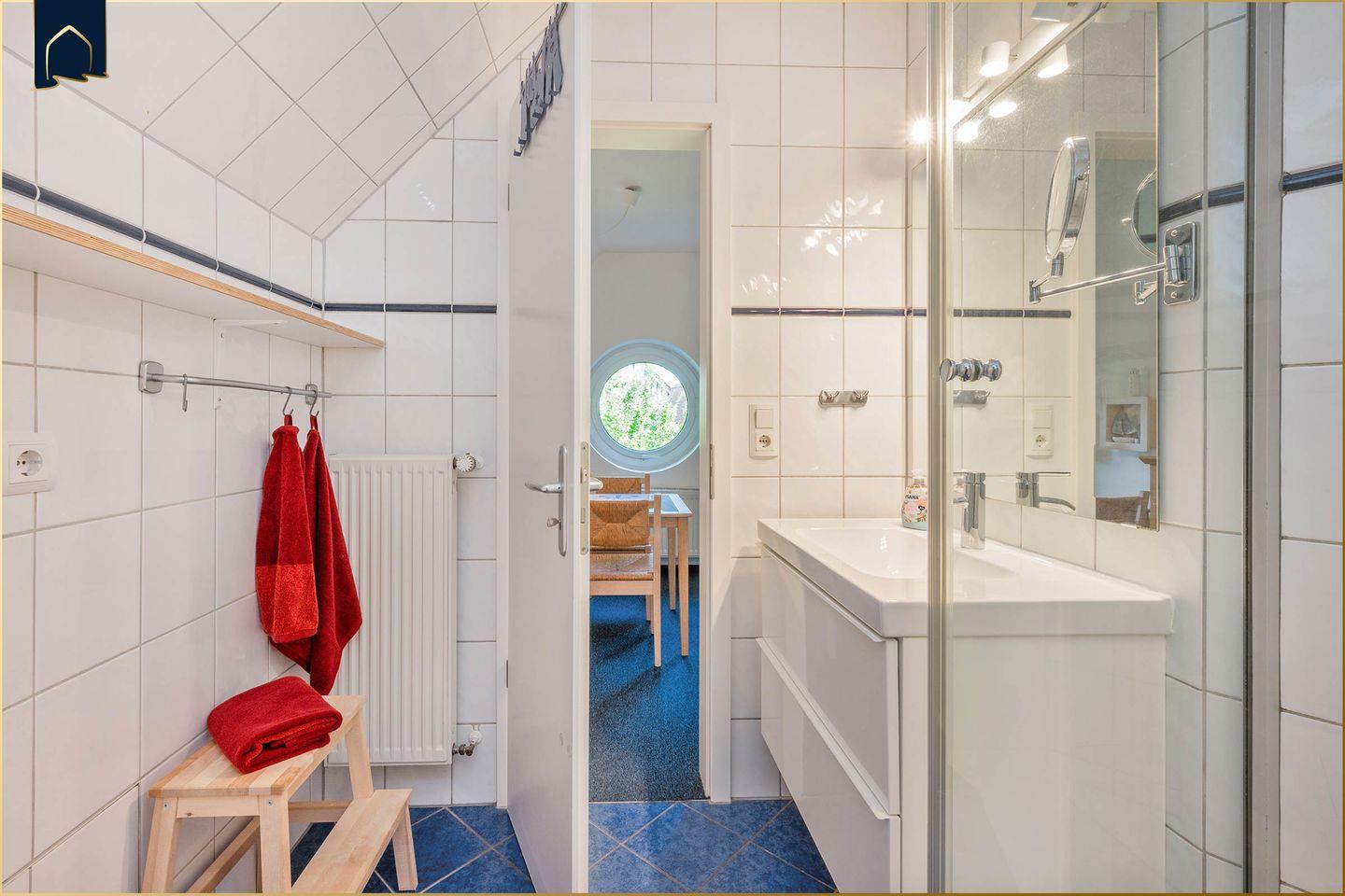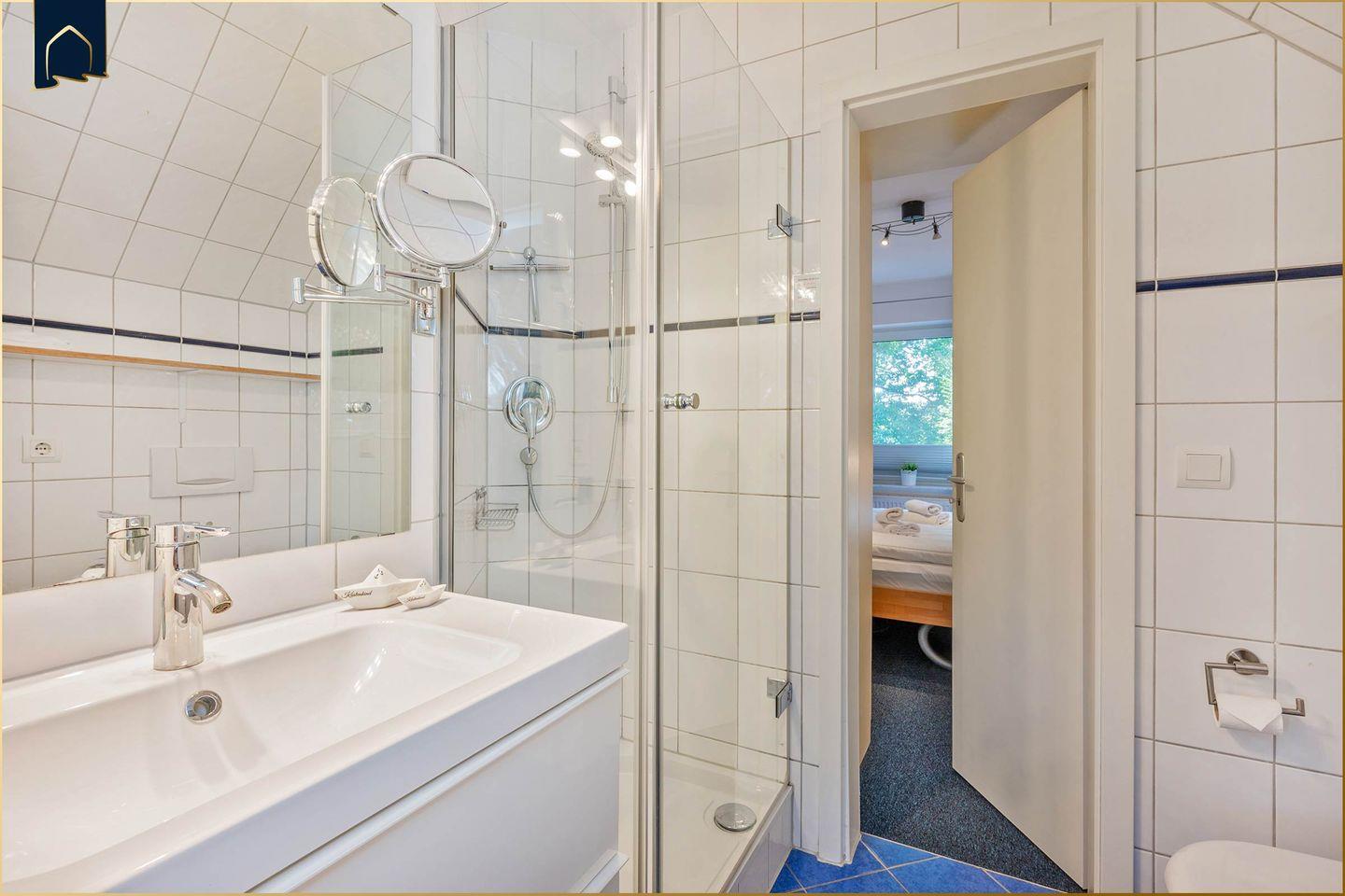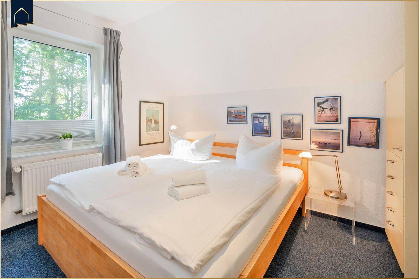 Zur Ferienwohnung gehört ein eigener Parkplatz sowie ein sicherer Fahrradabstellraum. Der Balkon mit Gartenmöbeln bietet dir einen Rückzugsort im Freien – vielleicht bei einem Frühstück mit Meeresbrise oder einem Glas Wein am Abend. Ein Feuermelder, Rauchmelder, Fliegengitter sowie moderne Ausstattung wie Ganzkörperspiegel, Staubsauger und Wäscheständer sorgen für zusätzlichen Komfort.