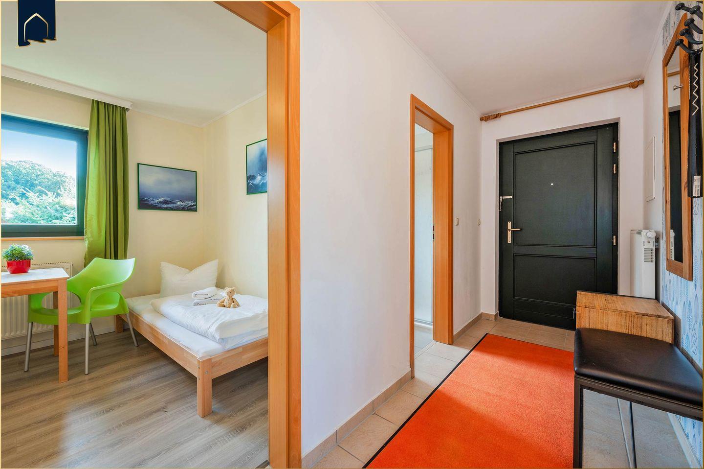 Die Ausstattung lässt keine Wünsche offen: WLAN, Flachbild-TV mit DVD-Player, Spülmaschine, Mikrowelle, Backofen, Kaffeemaschine, Waschmaschine und vieles mehr stehen zur Verfügung. Auf dem Balkon kannst du nach einem erlebnisreichen Urlaubstag entspannen – mit Blick ins Grüne oder bei einem Glas Wein den Abend genießen. Kinder sind herzlich willkommen, ein Babybett ist vorhanden, und auch Vierbeiner dürfen mitgebracht werden.