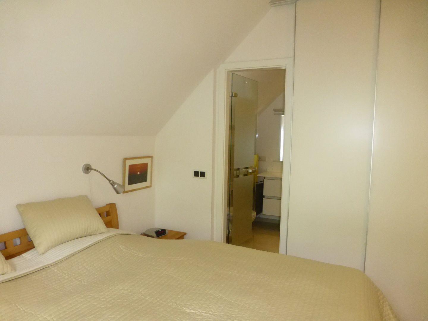 Ein Highlight der Wohnung ist der überdachte Balkon zur Seeseite, der zu jeder Tages und Jahreszeit zum Verweilen einlädt. Die hochwertige Ausstattung der Wohnung besticht durch einen Naturholzfußboden, der ein warmes und einladendes Ambiente schafft. Der großzügige Wohnbereich überzeugt mit einem Essplatz für vier Personen, ausgestattet mit stilvollen Loom-Sesseln. Ein gemütliches Ecksofa mit Recamiere vor dem charakteristischen Bullauge sowie zwei zusätzliche Sessel laden zu entspannten Stunden ein. Die freigelegten Sichtbalken, die sich bis in die Dachschrägen erstrecken, verleihen der Wohnung besonderen Charme. Die offene Küche bietet eine Vollausstattung und erfüllt alle Wünsche für anspruchsvolle Hobbyköche. Das moderne Duschbad ist ein Ort der Erholung: eine ebenerdige Dusche mit Ganzglasabtrennung, ein Einbauwaschtisch mit praktischem Stauraum und ein verschiebbarer Spiegel, der den Blick auf die Ostsee freigibt, machen den Raum besonders. Das komfortable Schlafzimmer ist mit einem gemütlichen Doppelbett und einem eigenen Fernseher ausgestattet – ideal für entspannte Nächte und morgendliches Wohlfühlen.