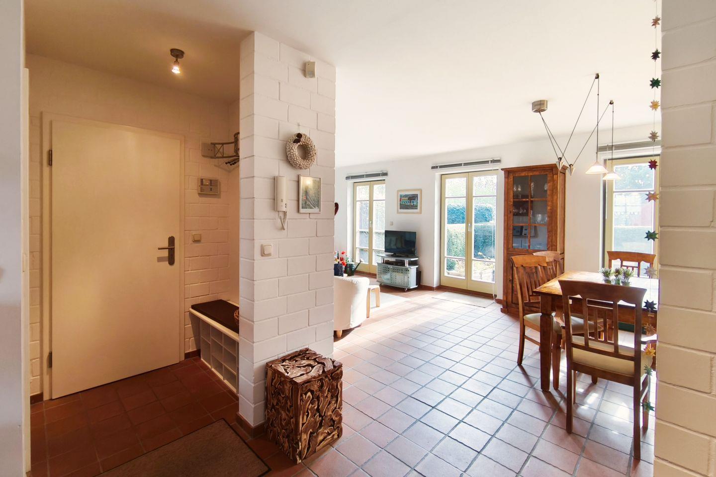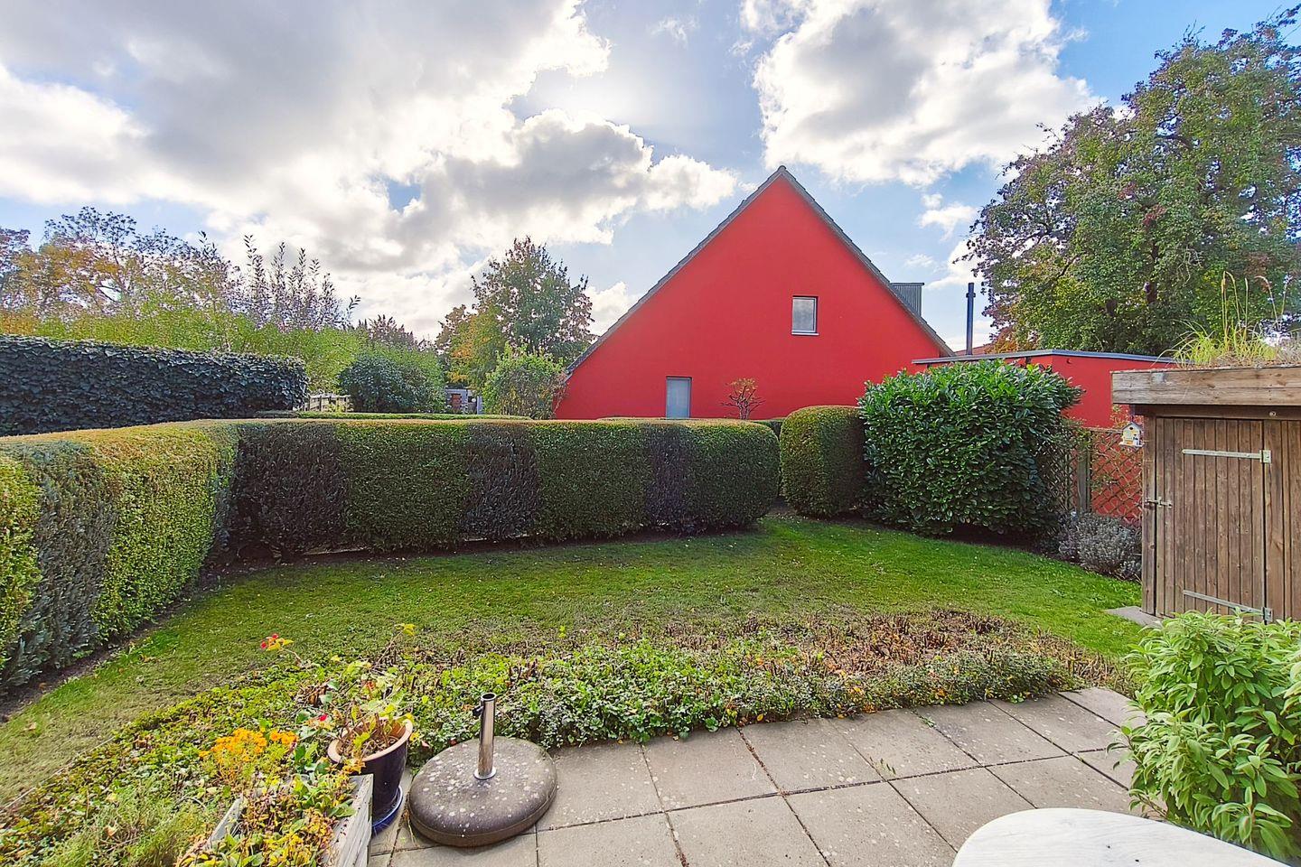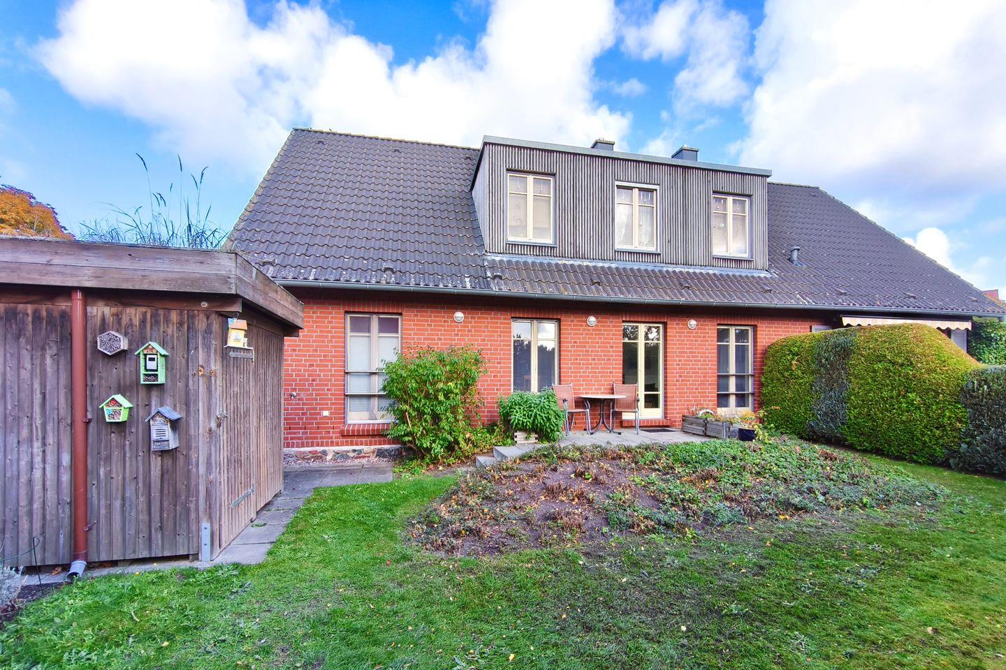 Das Wohnambiente wird durch die sonnige, möblierte Terrasse und den großzügigen Gartenbereich mit Liegewiese, Gartenlaube, Grill (Kohlegrill) und Sonnenschirm ergänzt. Die Gartenmöbel laden zum entspannen ein und bieten Platz für gemeinsame Mahlzeiten im Freien. Die naturnahe Umgebung eignet sich optimal zum Spielen für Kinder – Hochstuhl, Malbuch und Stifte sind vorhanden, sodass auch die jüngsten Gäste herzlich willkommen sind.